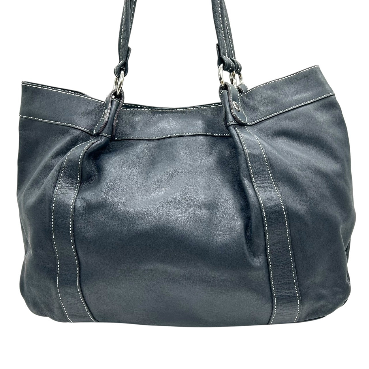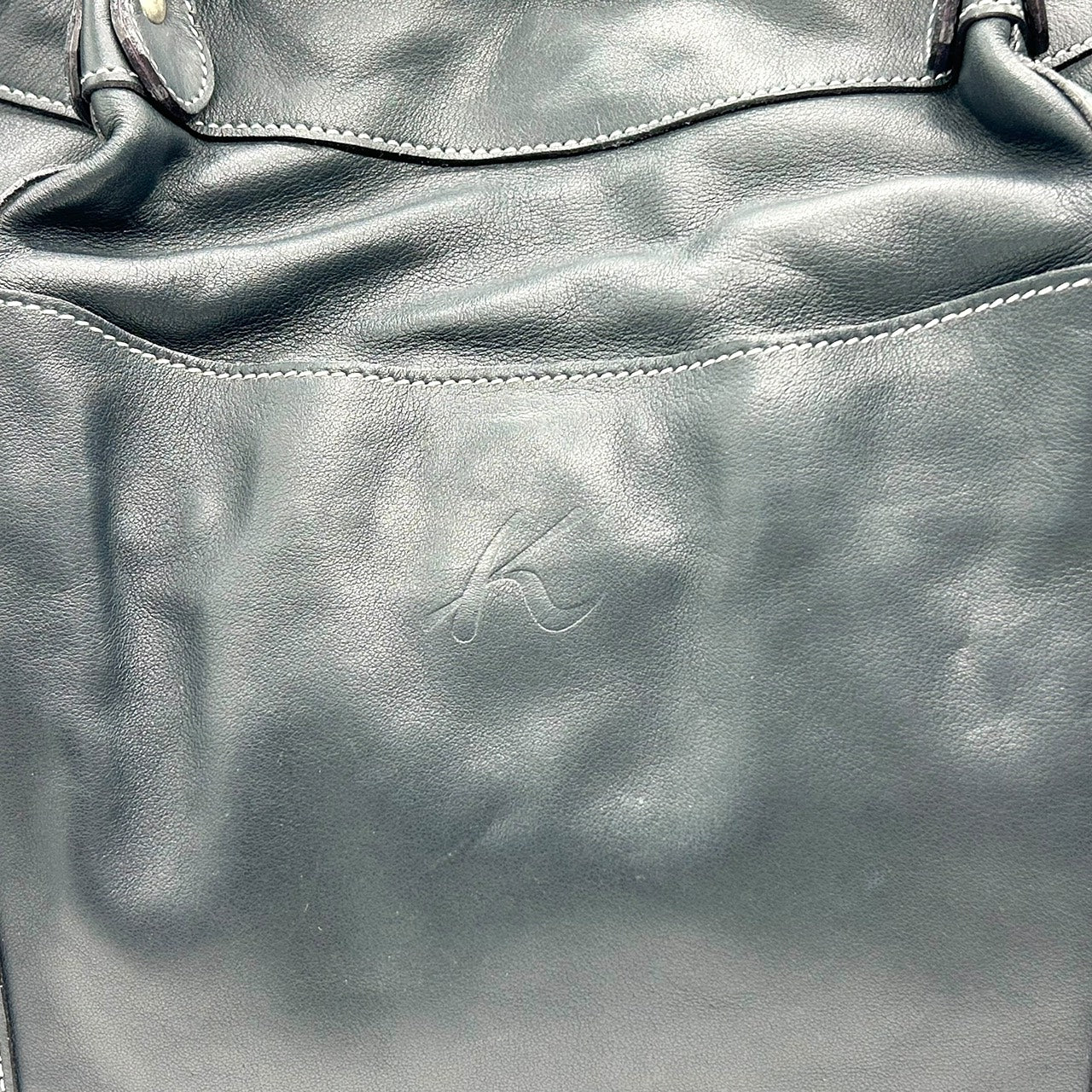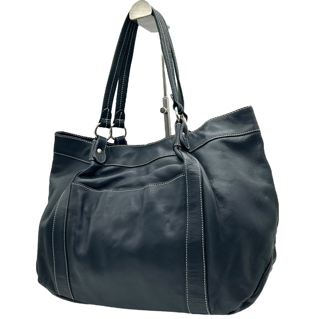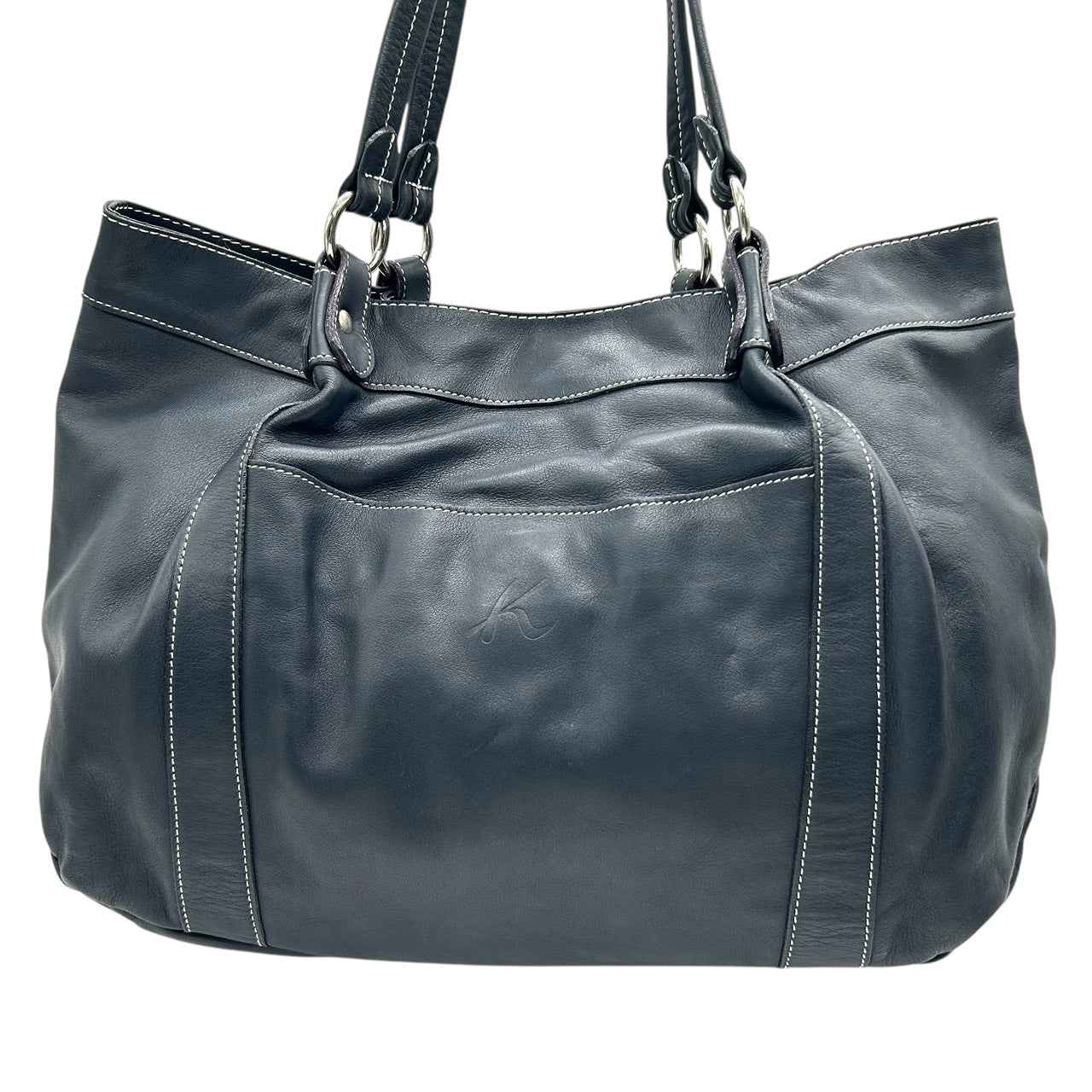 未使用級 キタムラ Kitamura レザー トートバッグ ショルダーバッグ 黒 ブラック ホワイトステッチ Kロゴ 型押し S65