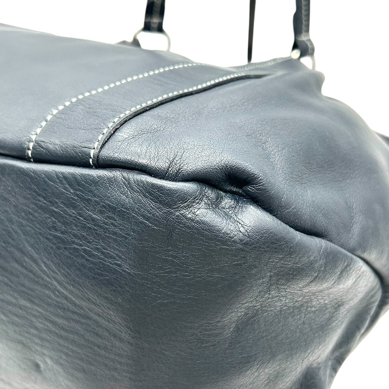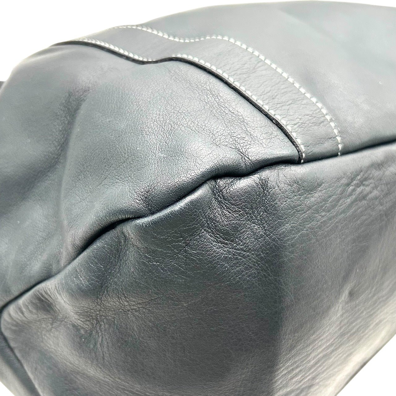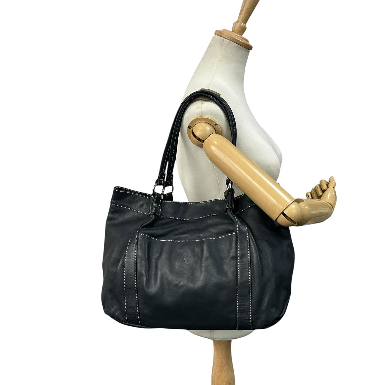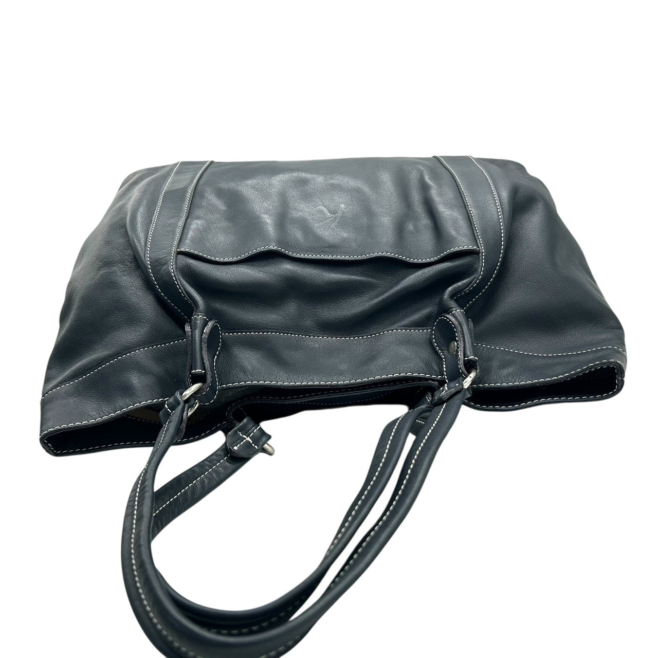 未使用級 キタムラ Kitamura レザー トートバッグ ショルダーバッグ 黒 ブラック ホワイトステッチ Kロゴ 型押し S65