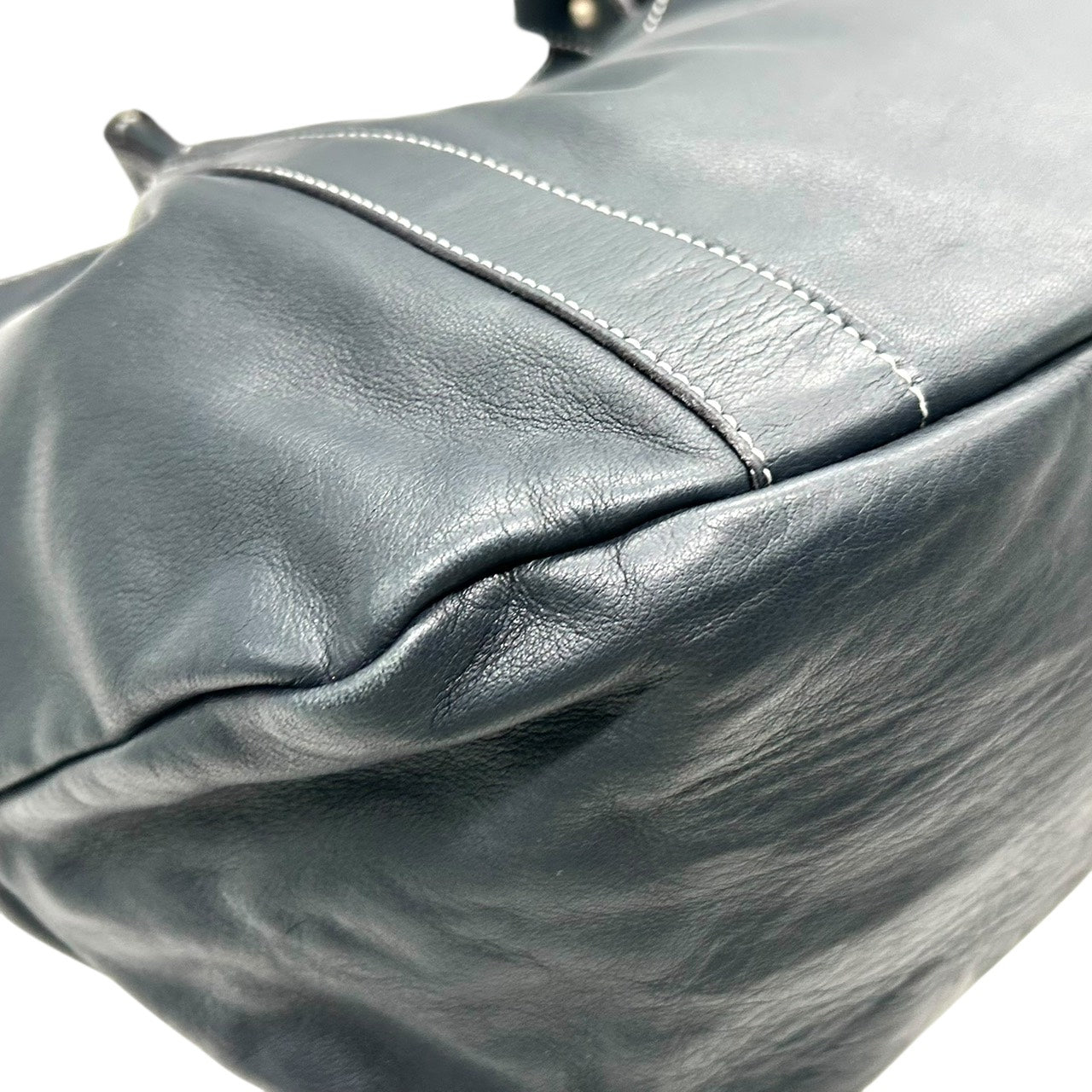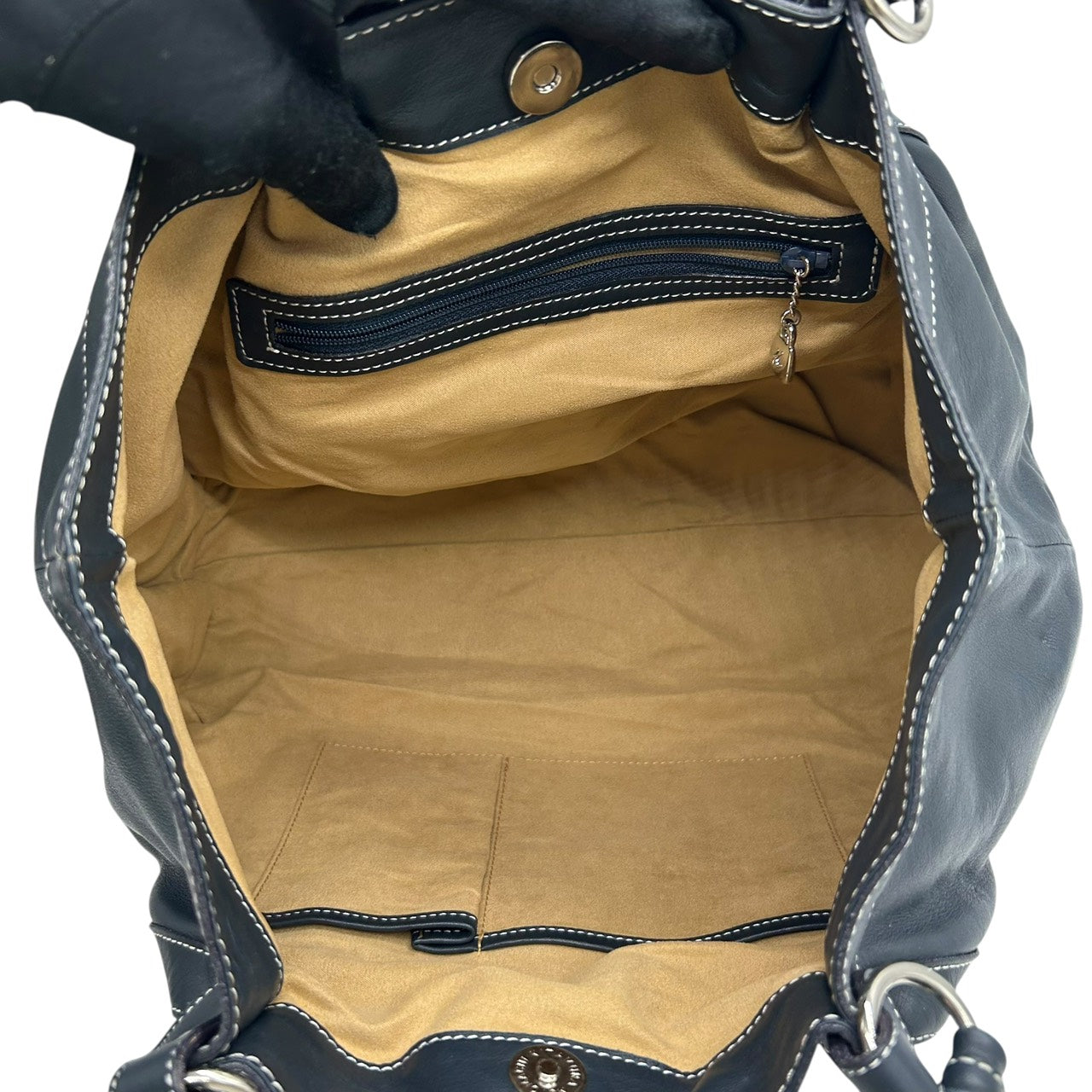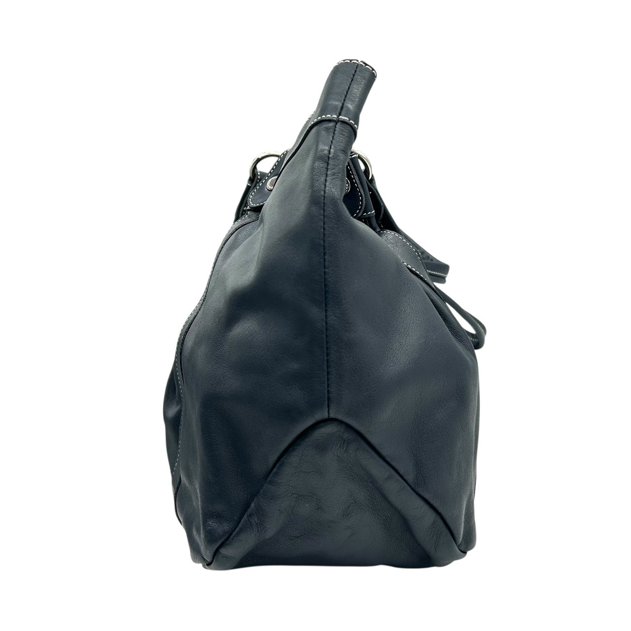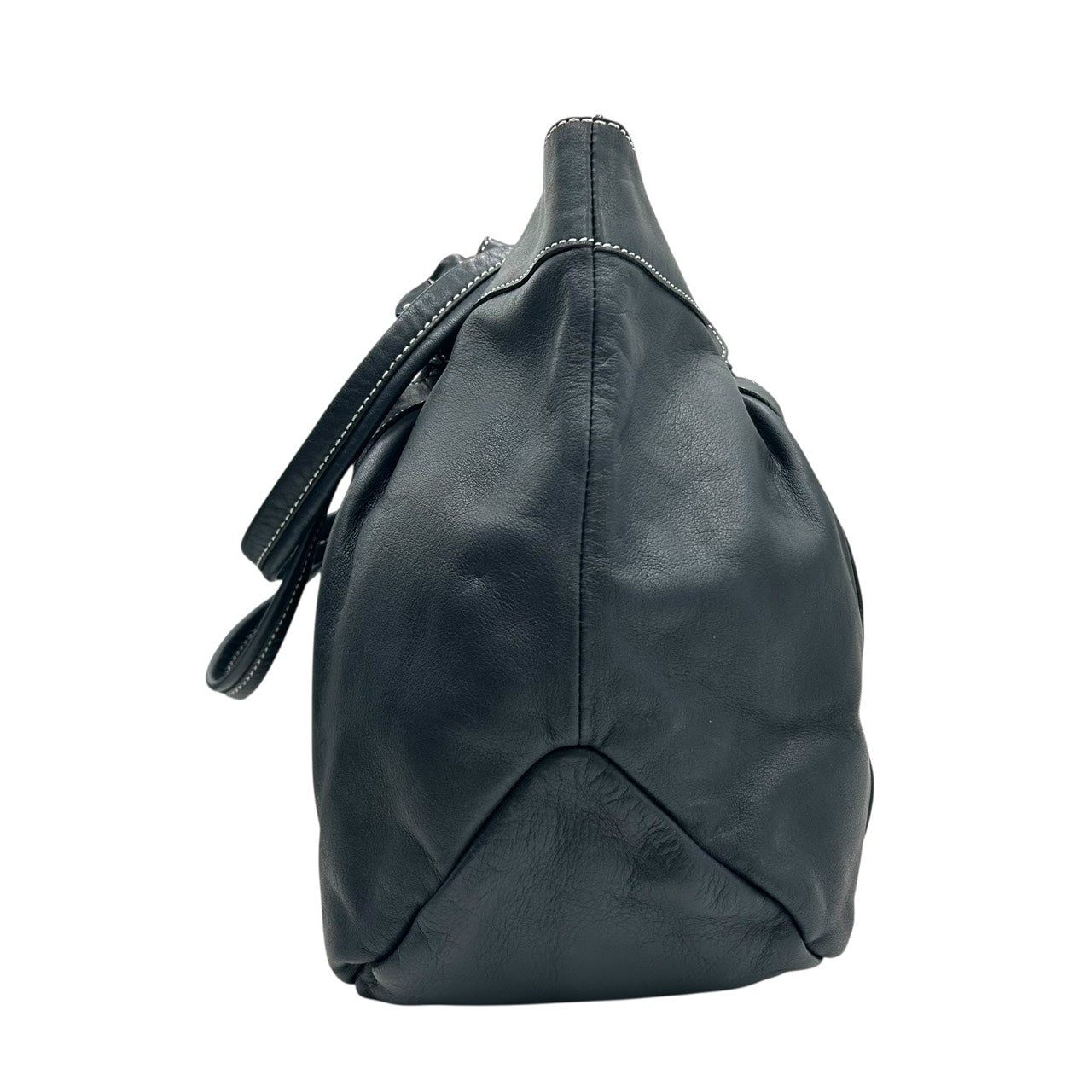 未使用級 キタムラ Kitamura レザー トートバッグ ショルダーバッグ 黒 ブラック ホワイトステッチ Kロゴ 型押し S65