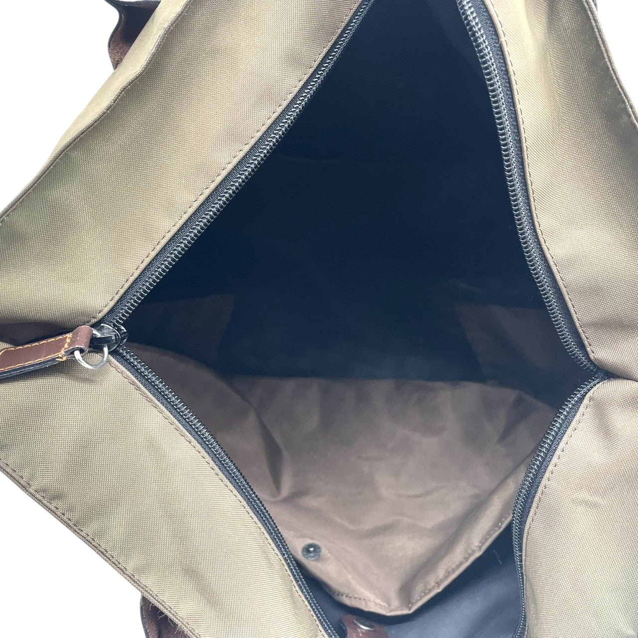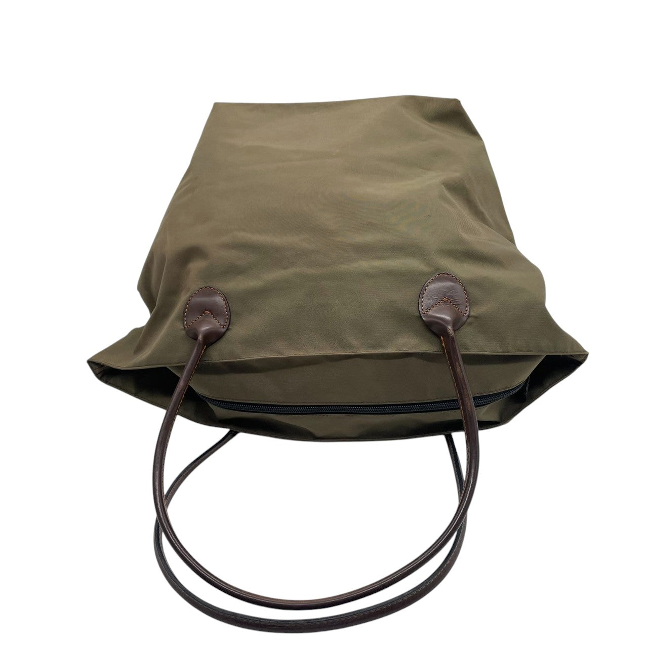 Herve Chapelier エルベシャプリエ 舟形 トートバッグ Lサイズ ワンショルダー A4収納可 大容量 ナイロン レザーハンドル カーキ ブラウン レディース メンズ ユニセックス 定番人気モデル フランス製 クリーニング済み s1