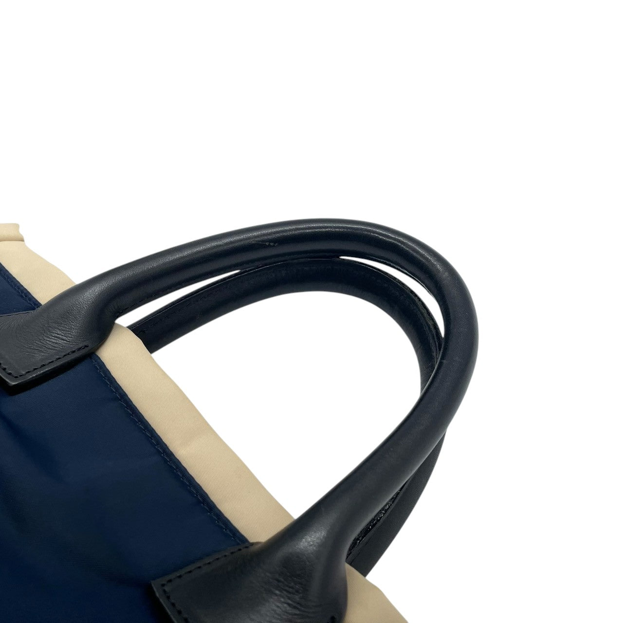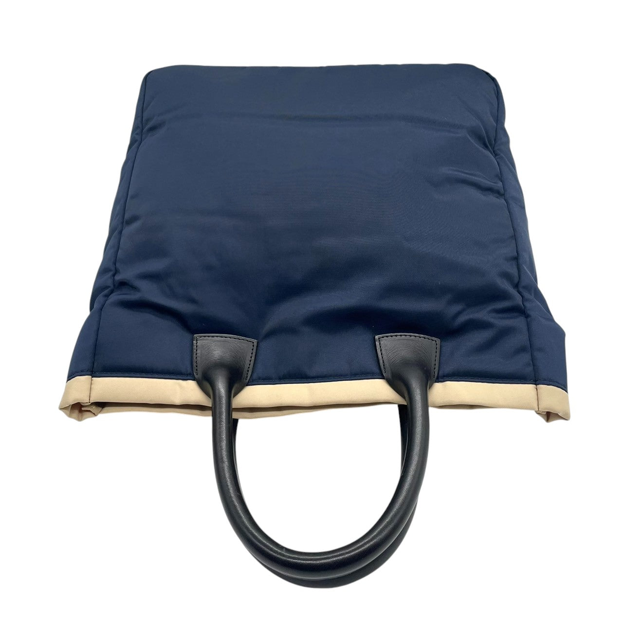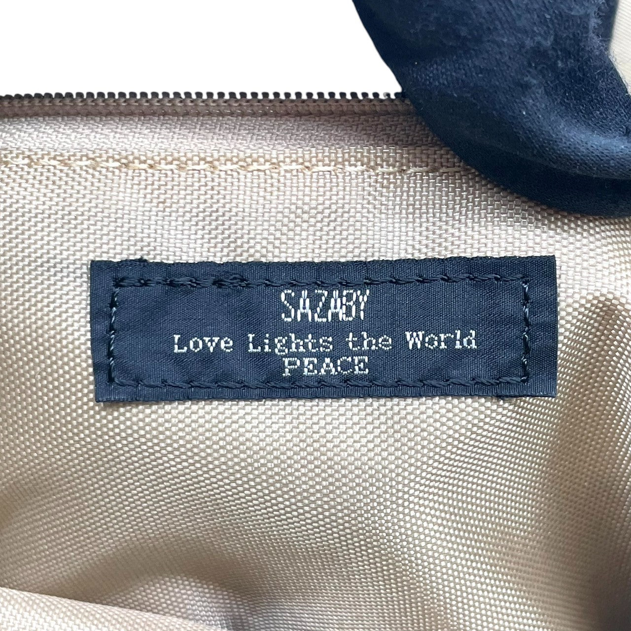 SAZABY サザビー トートバッグ ハンドバッグ A4収納可 大容量 軽量 ナイロン レザーハンドル バイカラー ネイビー ベージュ レディース メンズ ユニセックス ビジネス 通勤通学 人気モデル クリーニング済み s1