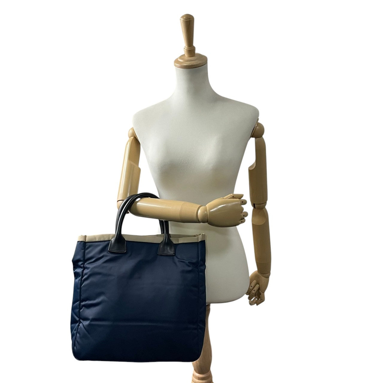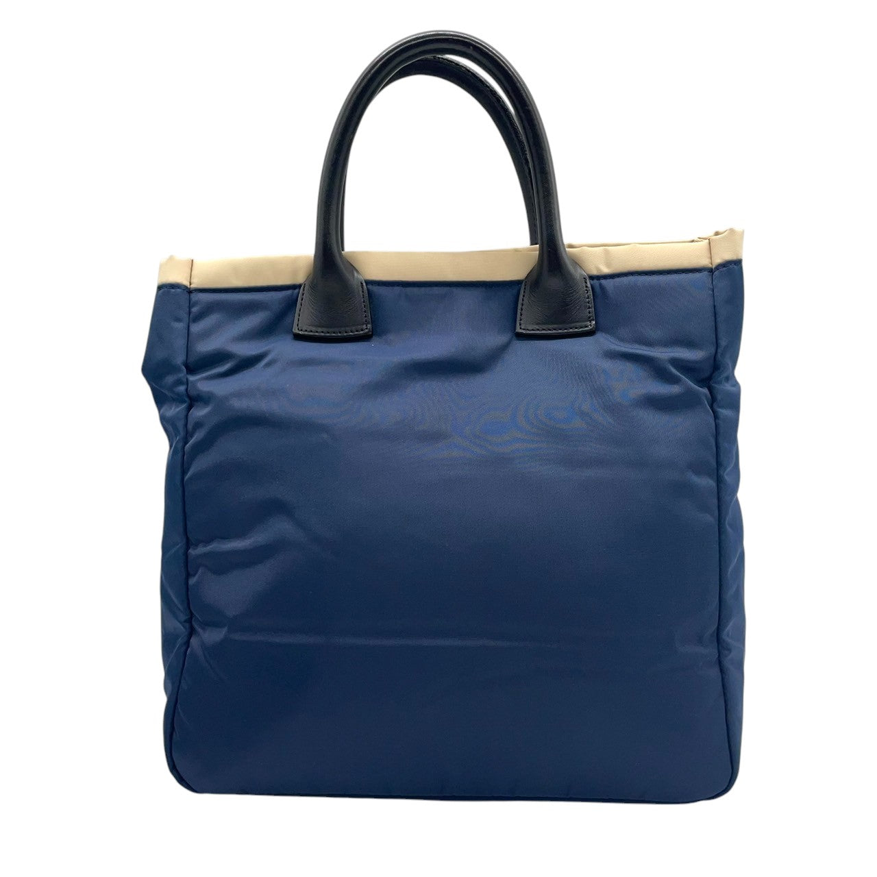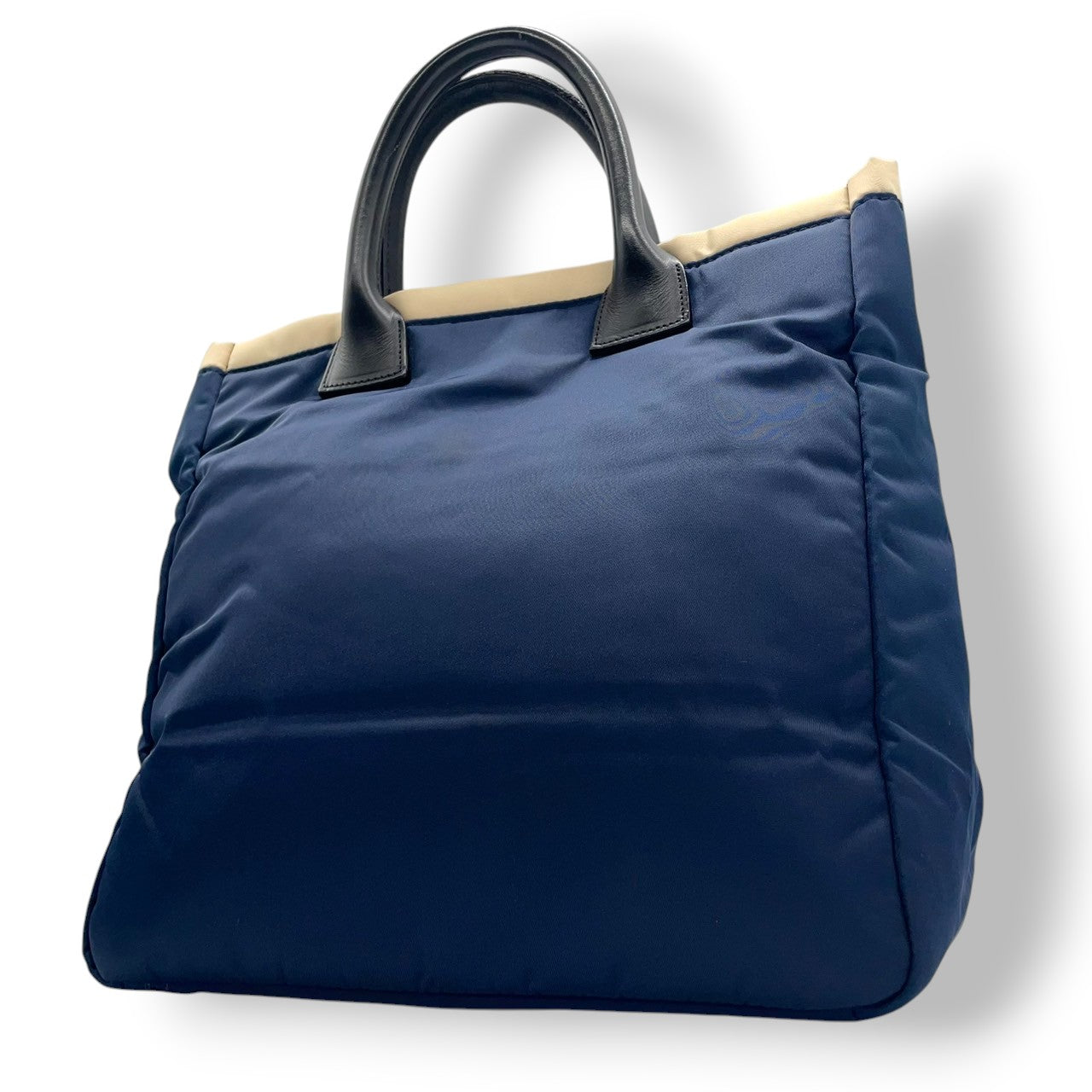 SAZABY サザビー トートバッグ ハンドバッグ A4収納可 大容量 軽量 ナイロン レザーハンドル バイカラー ネイビー ベージュ レディース メンズ ユニセックス ビジネス 通勤通学 人気モデル クリーニング済み s1