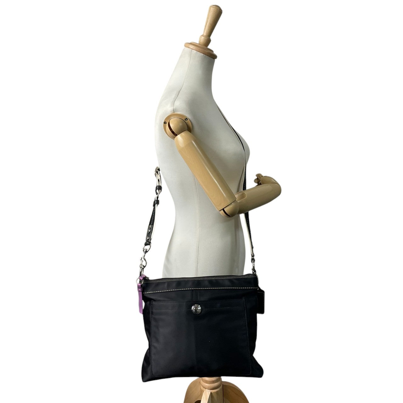 【COACH】コーチ ショルダーバッグ F13329 クロスボディ 斜め掛け可 A4収納可 ナイロン レザー ブラック 黒 軽量 カジュアル レディース メンズ ユニセックス 通勤通学 デイリーユース 旅行 サブバッグ 定番人気モデル クリーニング済み s1