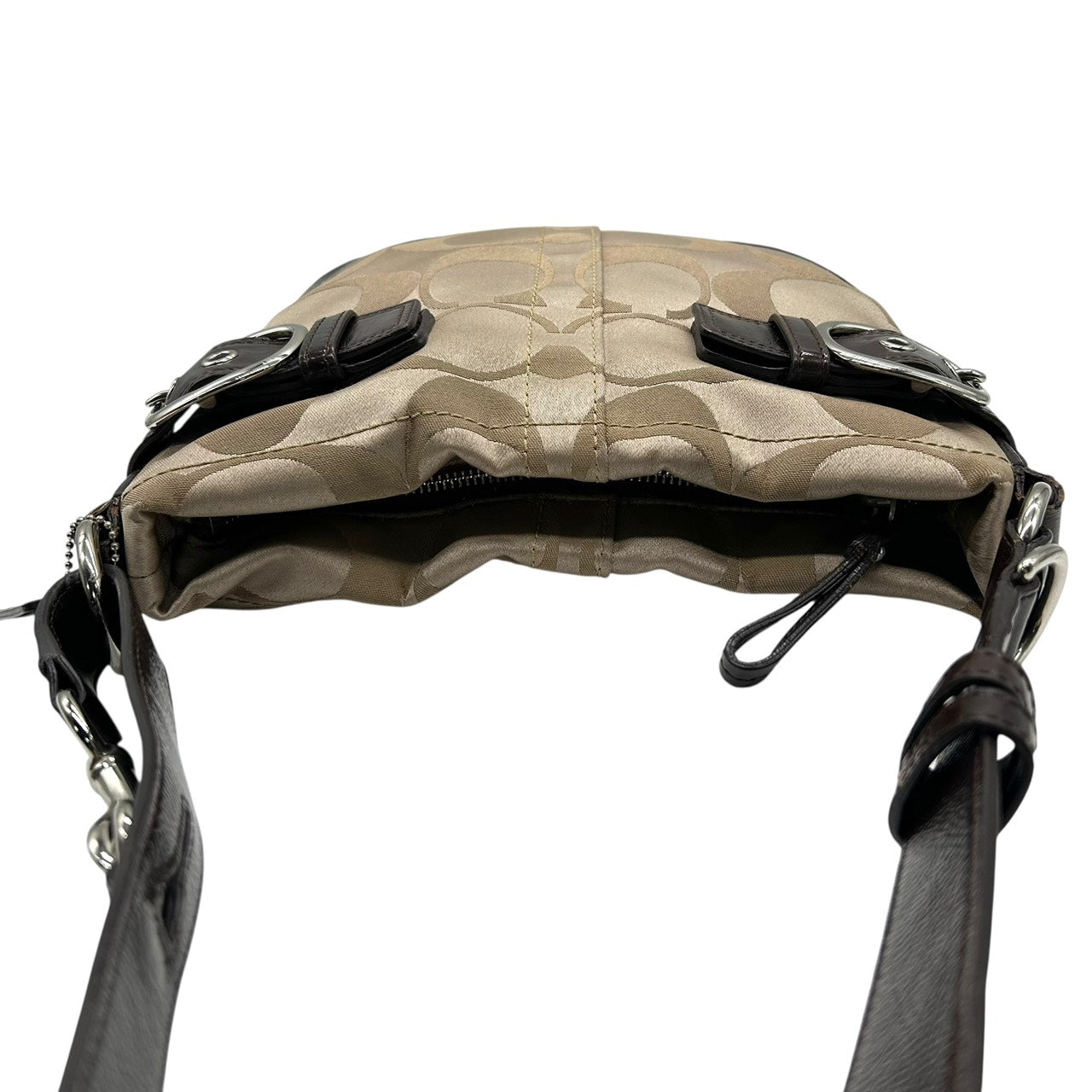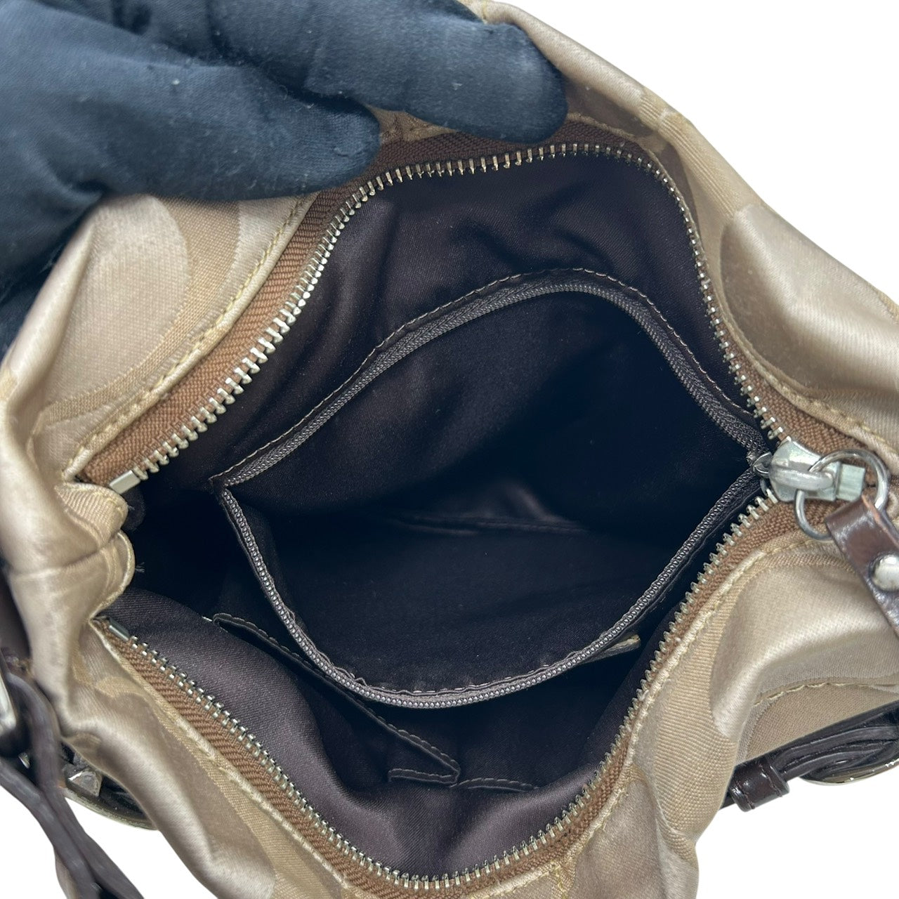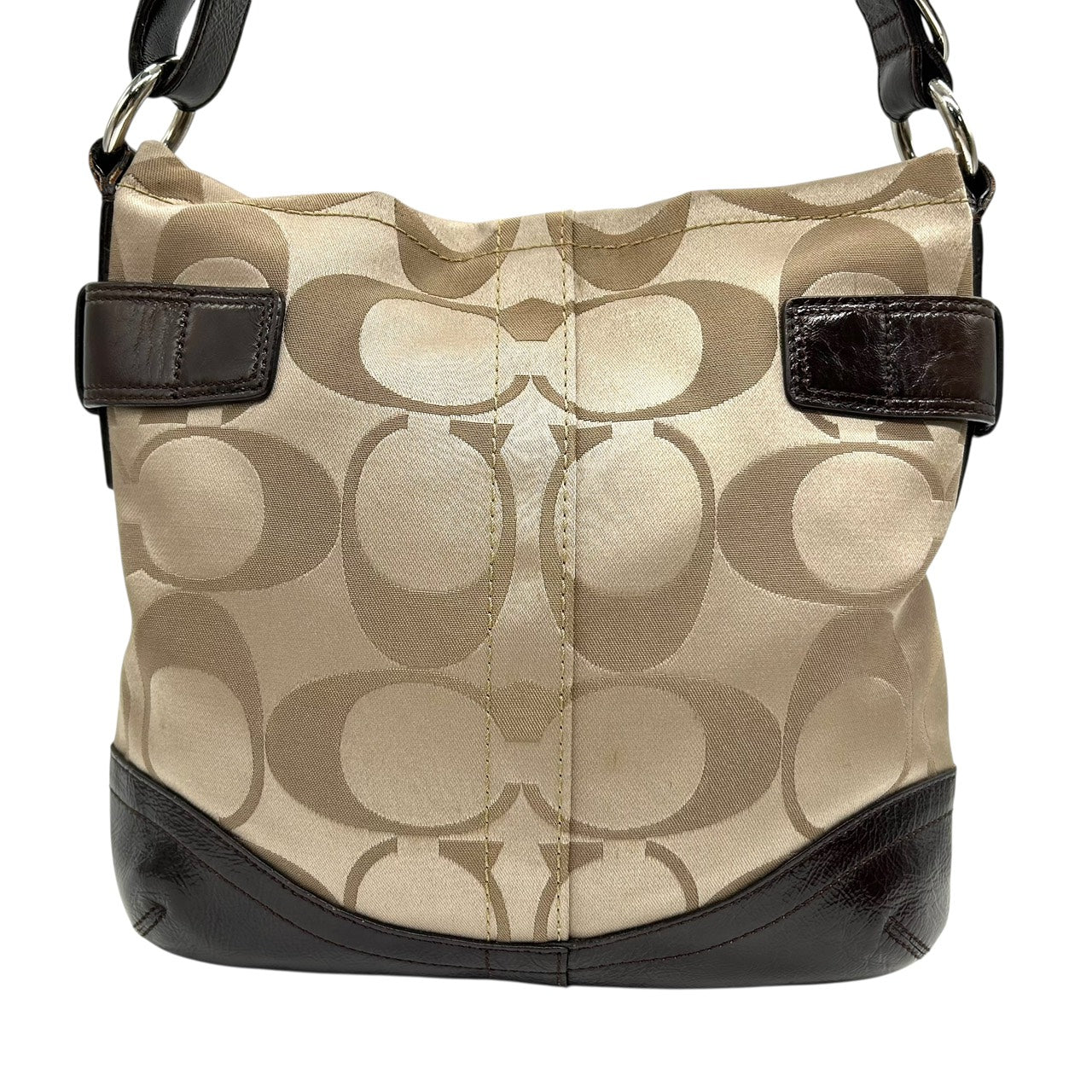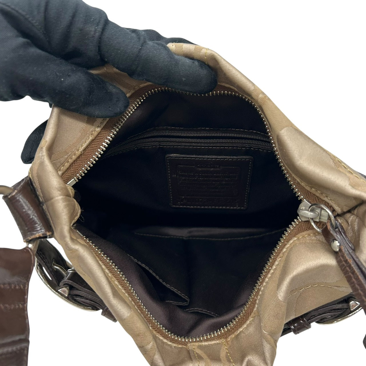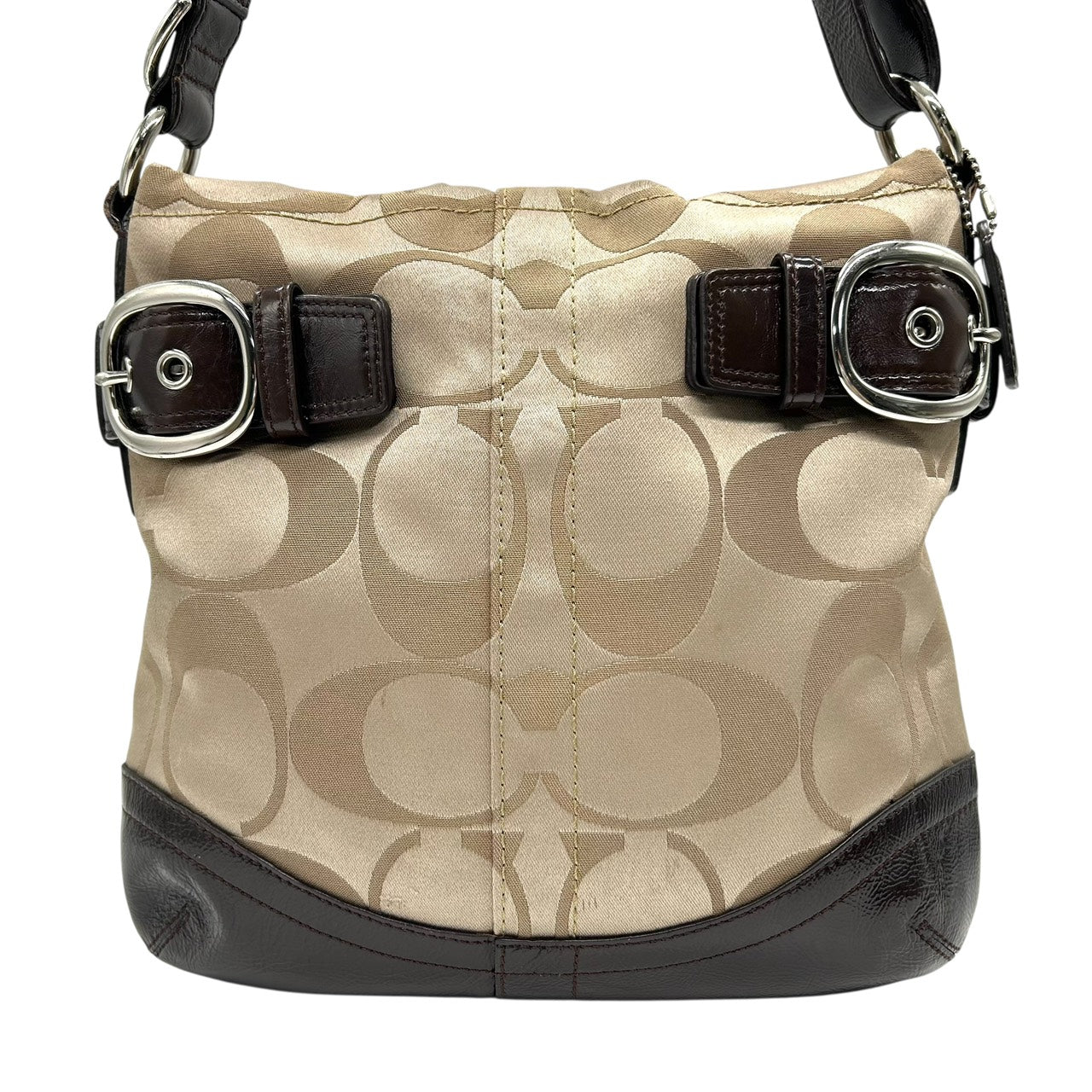 コーチ COACH ショルダーバッグ シグネチャー ジャガード×レザー ベルトデザイン ベージュ 茶色 ブラウン S92