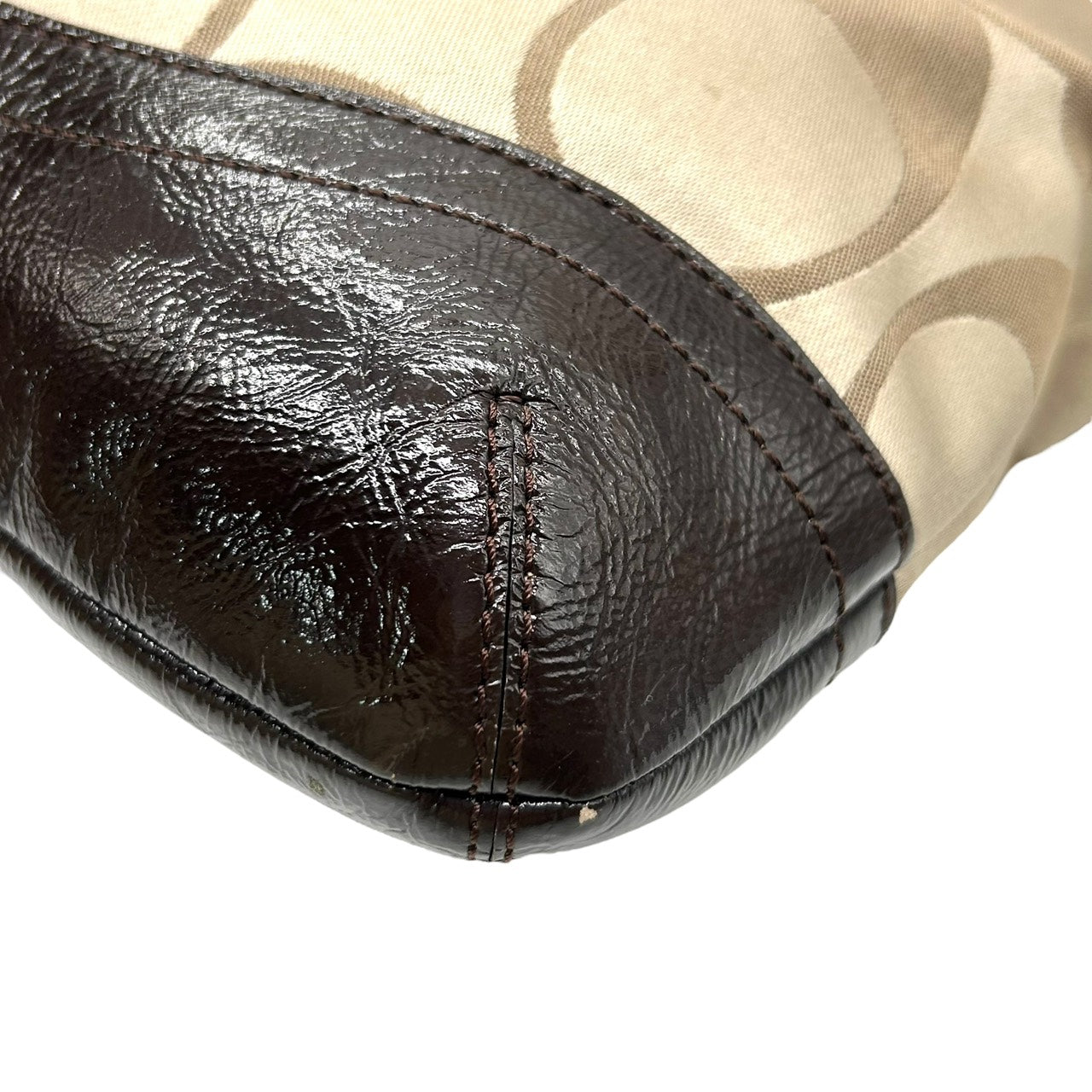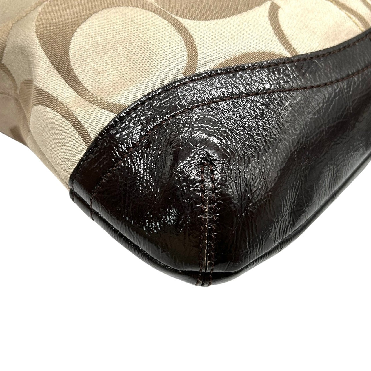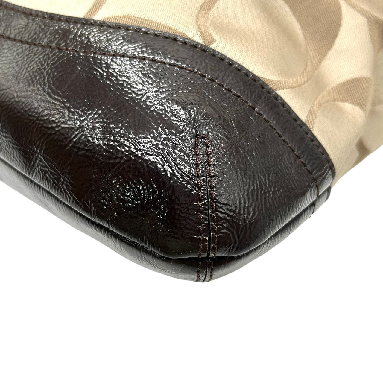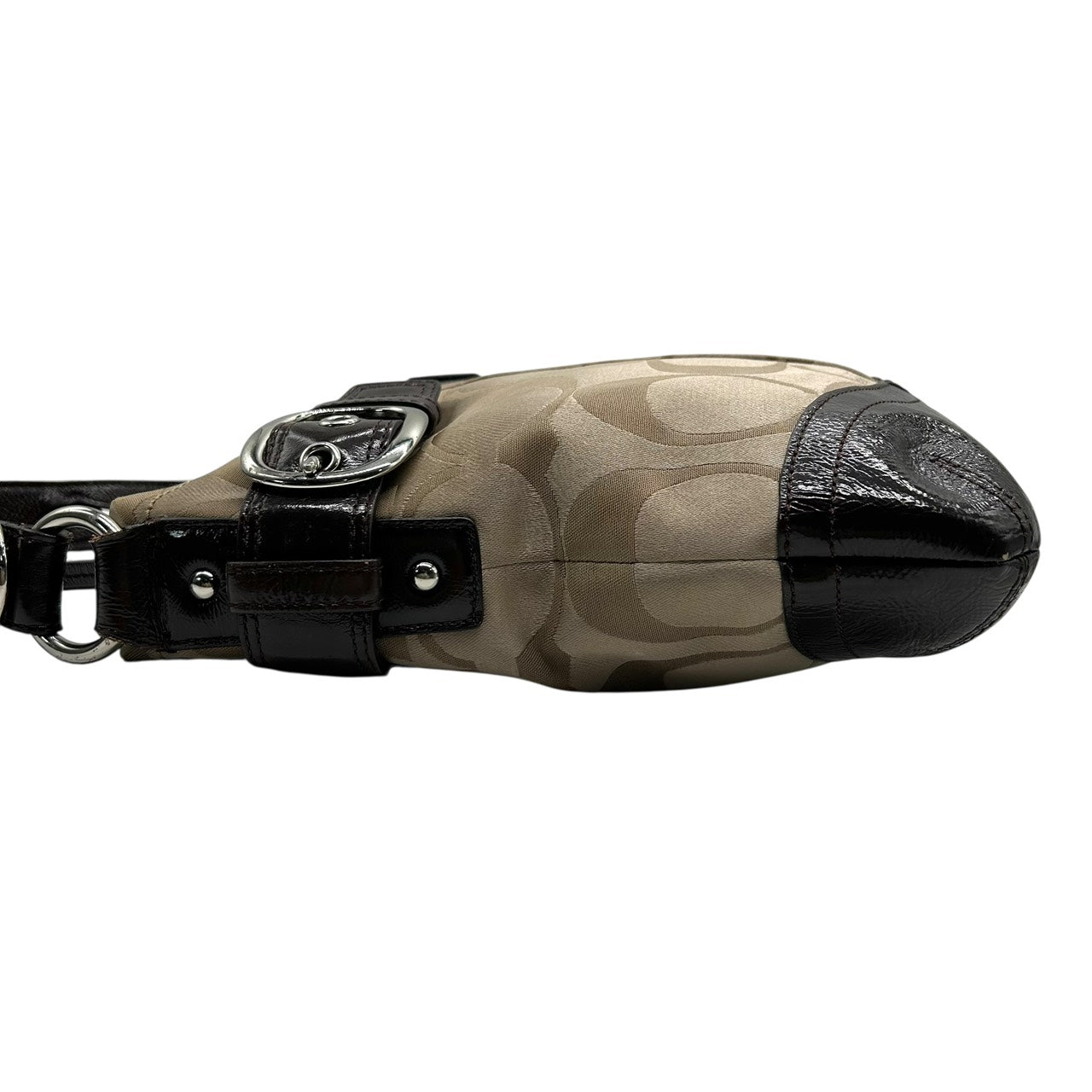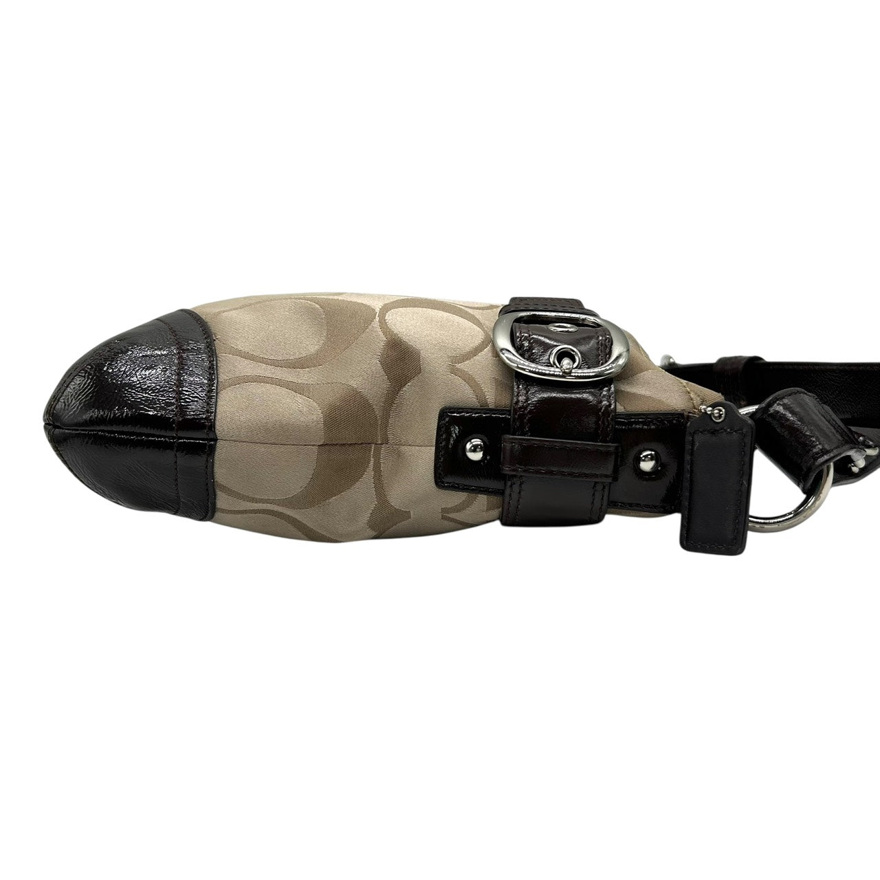 コーチ COACH ショルダーバッグ シグネチャー ジャガード×レザー ベルトデザイン ベージュ 茶色 ブラウン S92