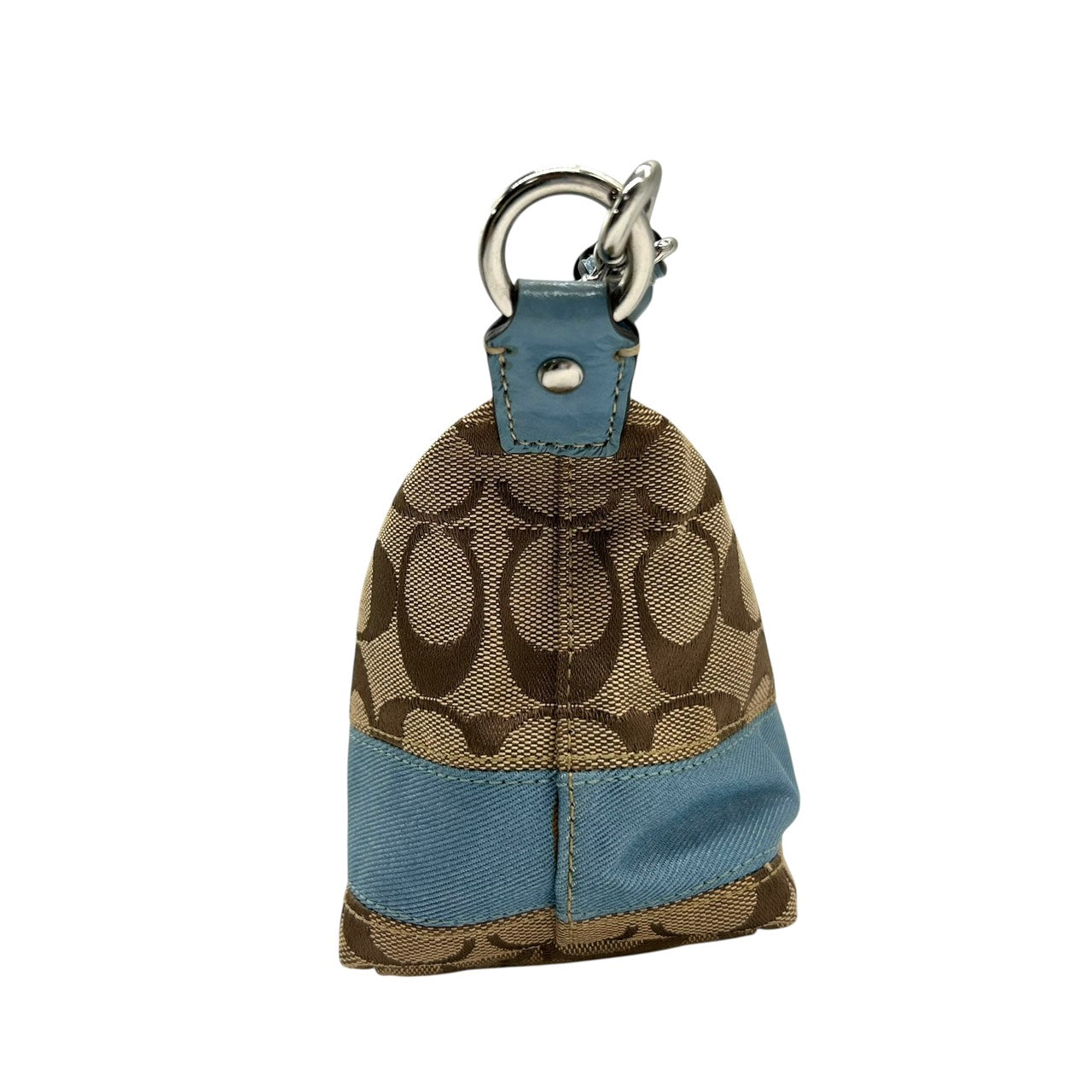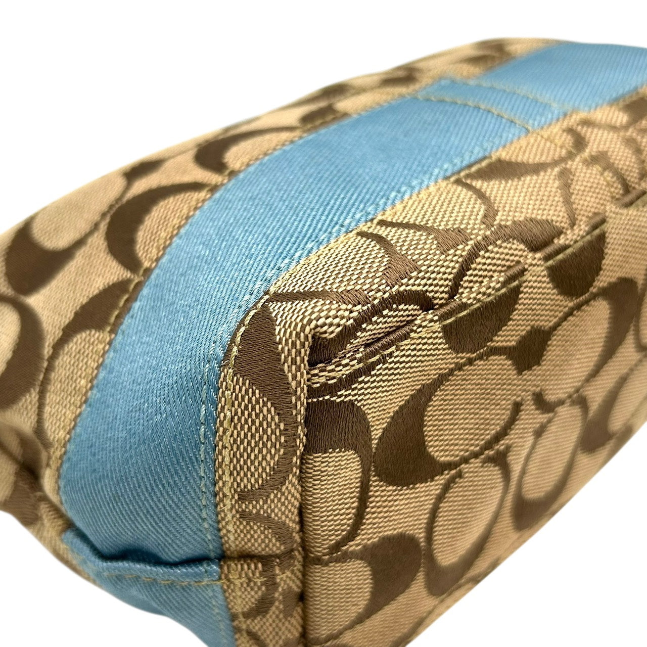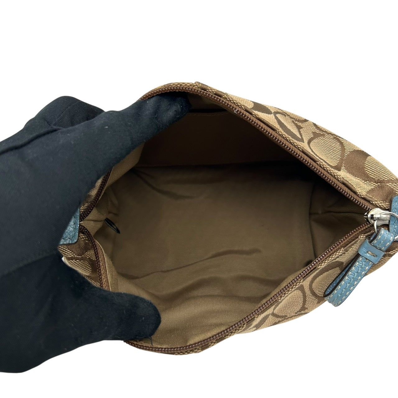 美品 コーチ COACH アクセサリーポーチ ハンドバッグ シグネチャー ジャガード コンビ ベージュ 水色 ブルー キャンバス S92