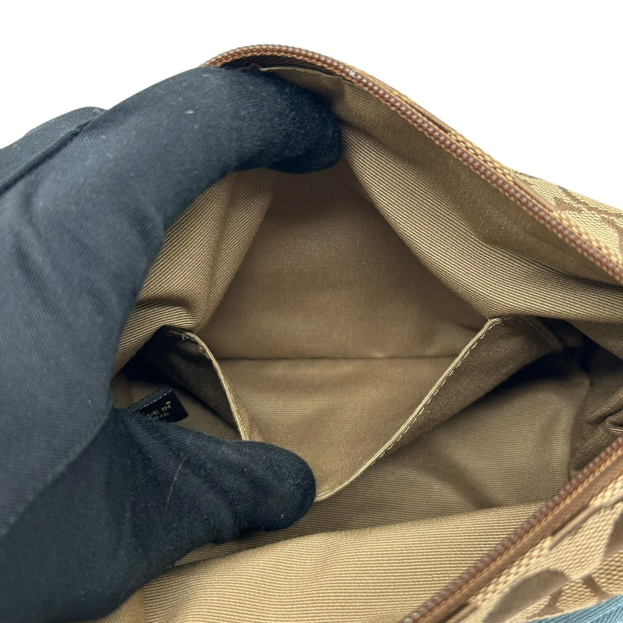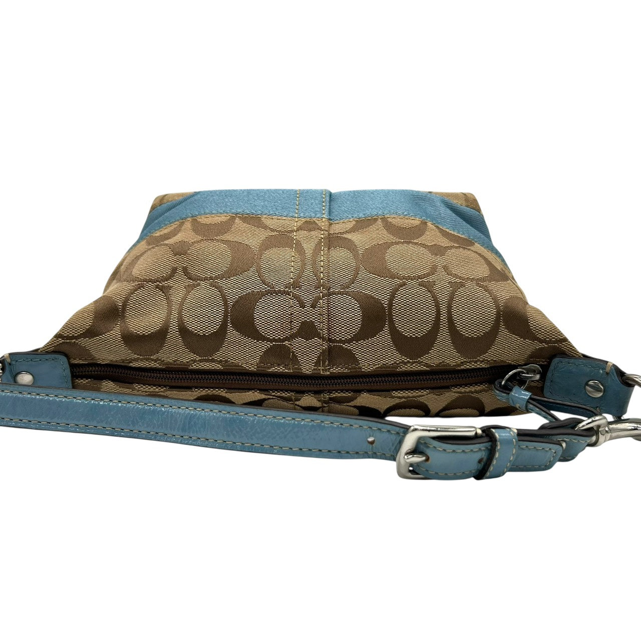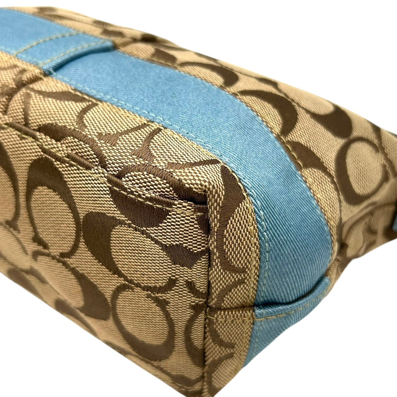 美品 コーチ COACH アクセサリーポーチ ハンドバッグ シグネチャー ジャガード コンビ ベージュ 水色 ブルー キャンバス S92