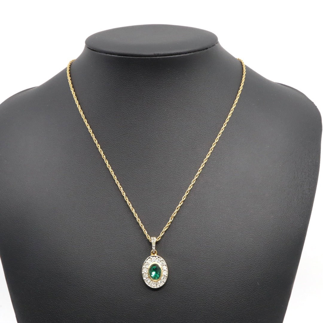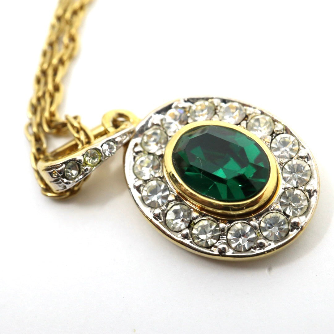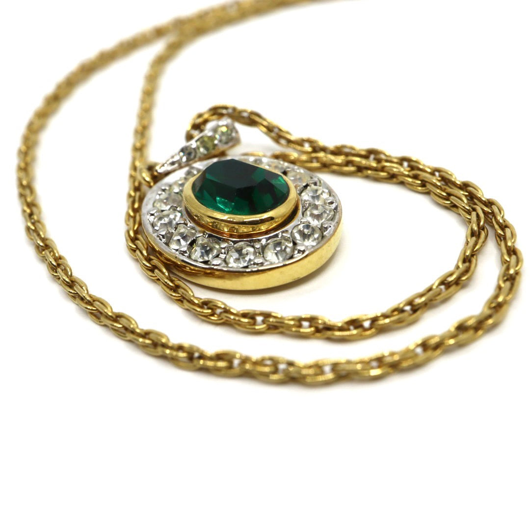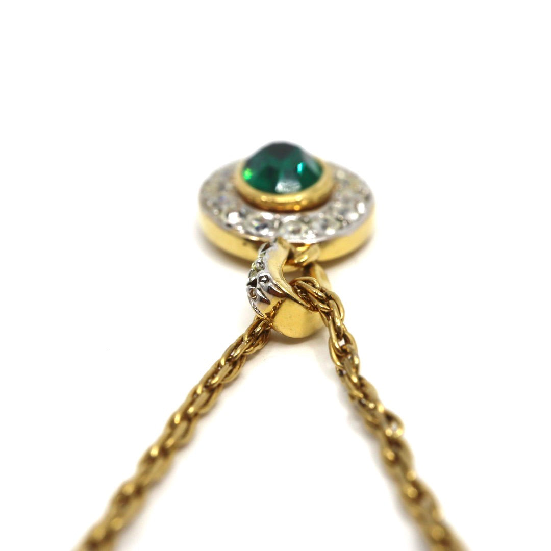 MARIO VALENTINO マリオヴァレンティノ グリーンストーン ネックレス ヴィンテージ ゴールドカラー ラインストーン イタリア ブランド アクセサリー ジュエリー 上品 I10
