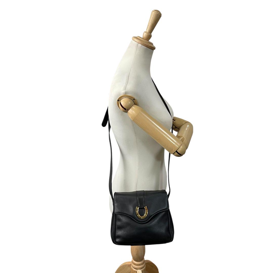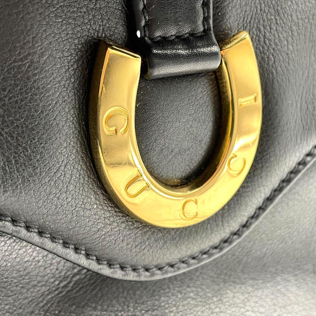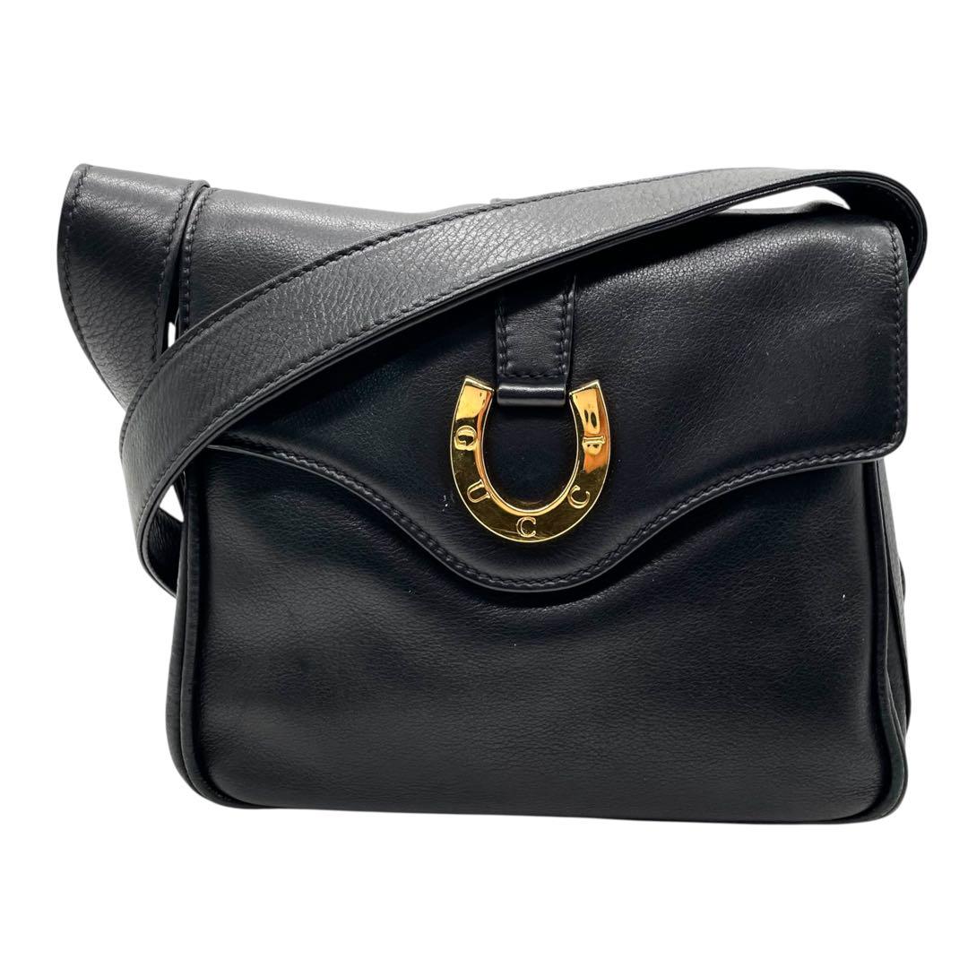 グッチ ショルダーバッグ ブラック ホースシュー ヴィンテージ 斜め掛け クロスボディー D2 フラップ ゴールド金具 刻印 コンパクト オールドグッチ GUCCI レザー レディース バッグ