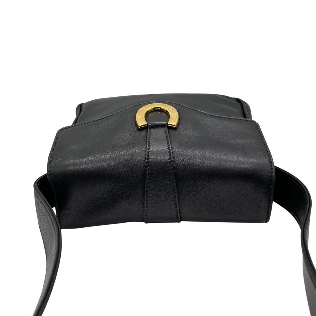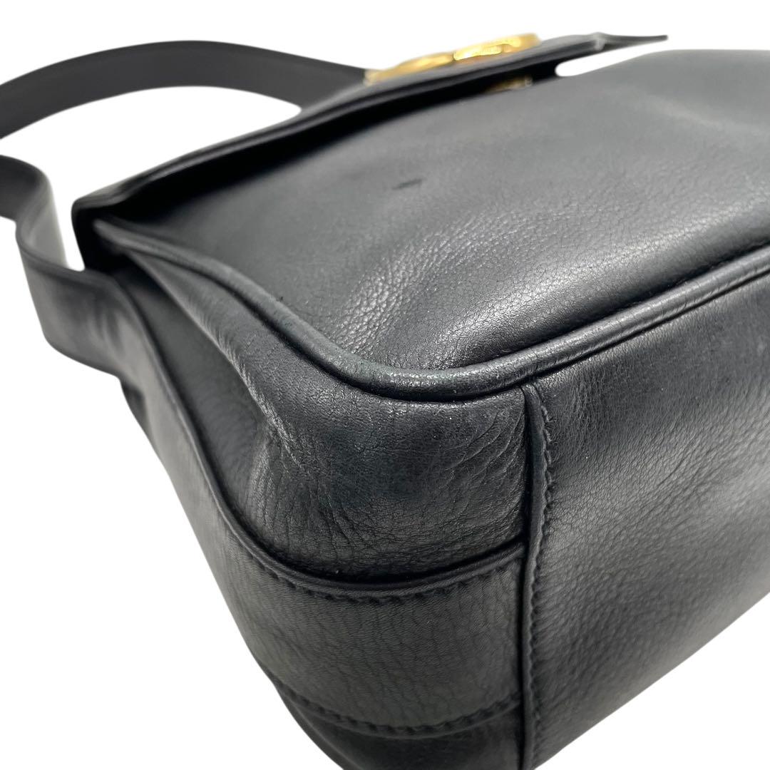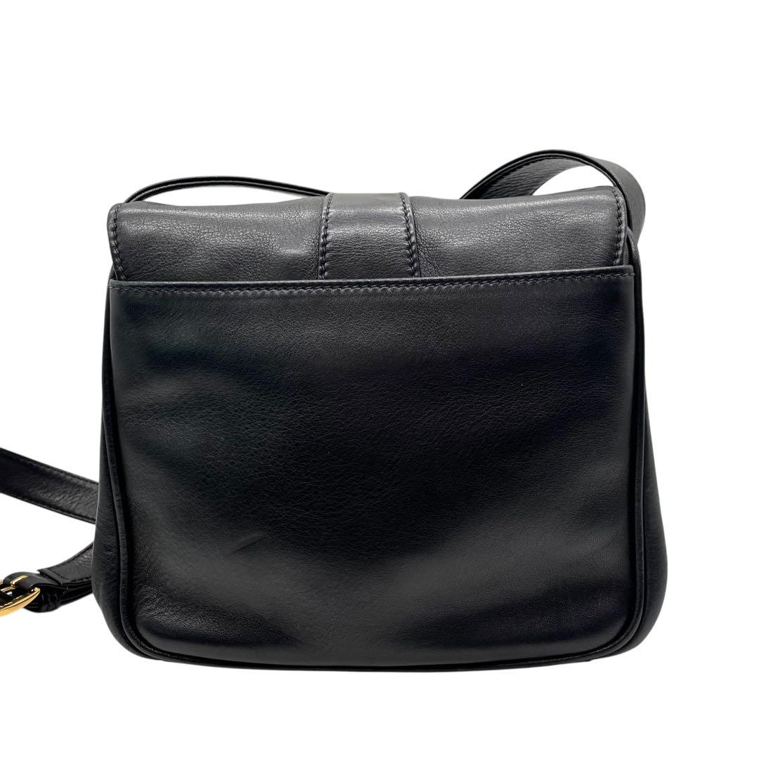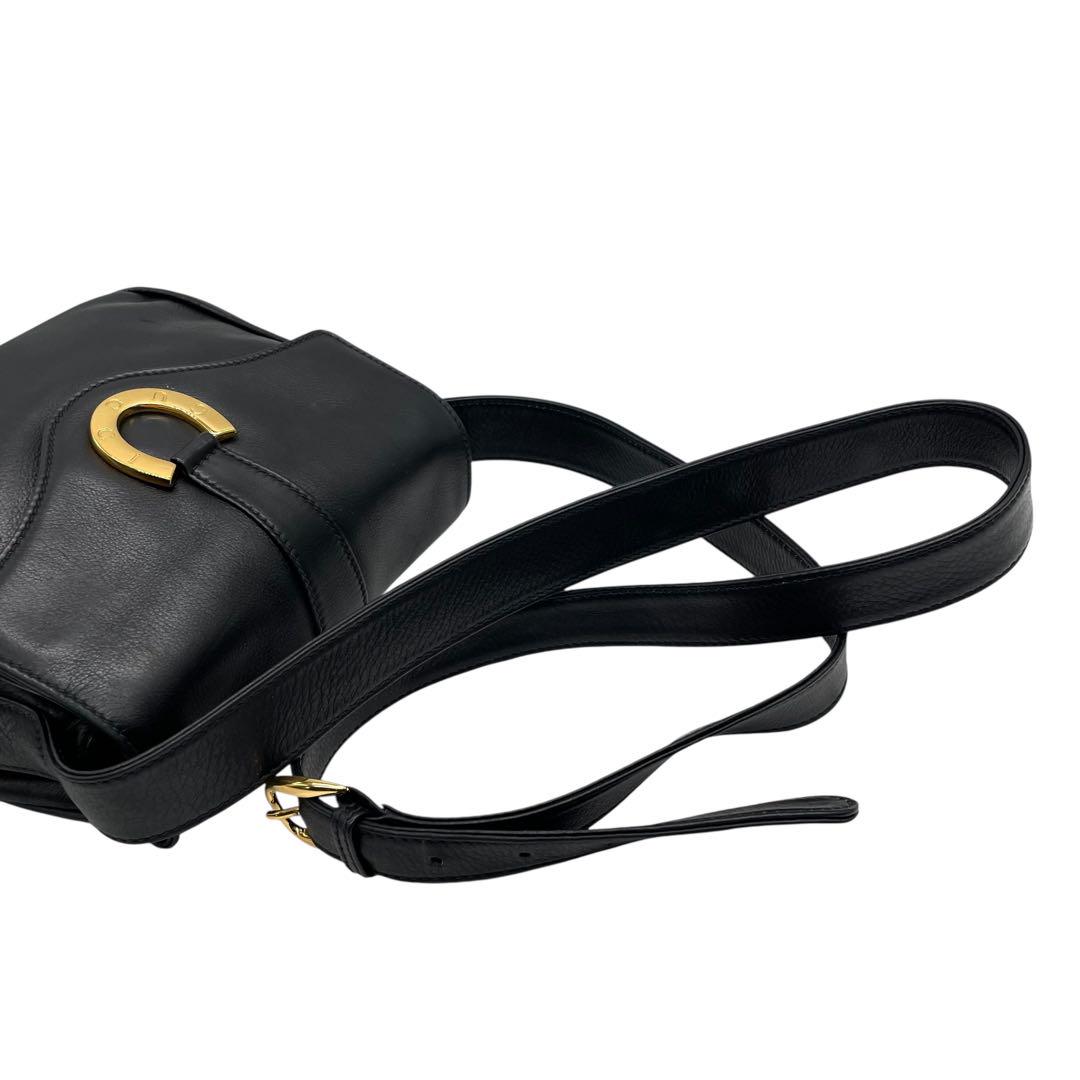 グッチ ショルダーバッグ ブラック ホースシュー ヴィンテージ 斜め掛け クロスボディー D2 フラップ ゴールド金具 刻印 コンパクト オールドグッチ GUCCI レザー レディース バッグ