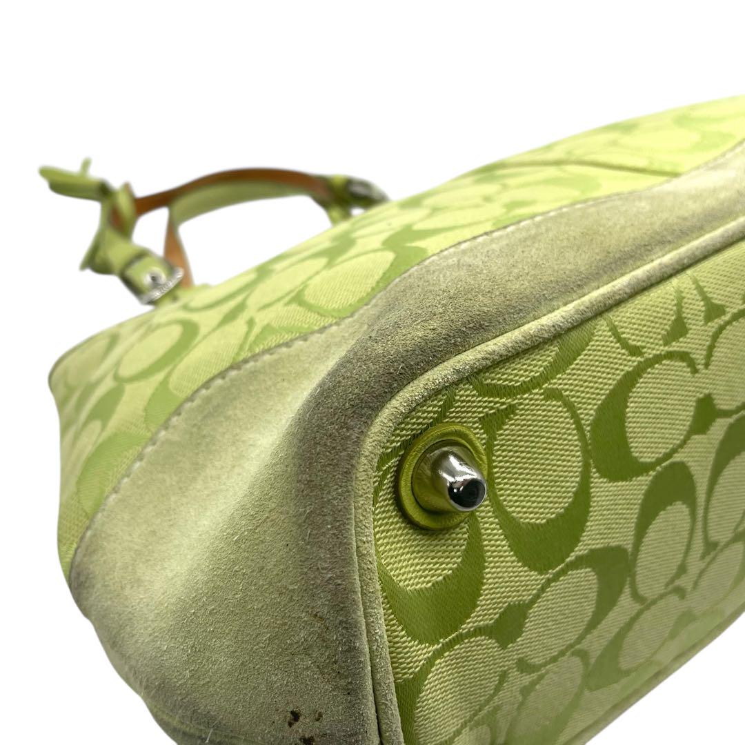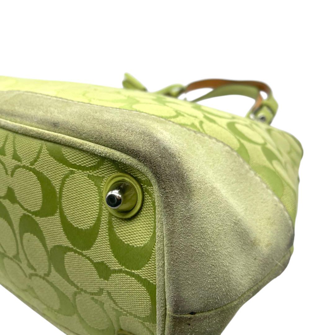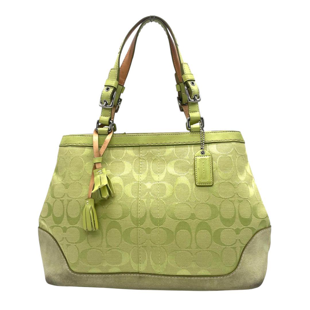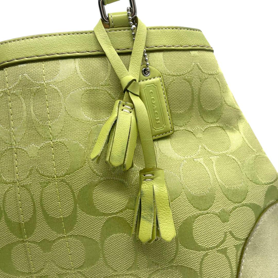 コーチ ハンドバッグ 黄緑 シグネチャー タッセル チャーム キャンバス スエード レザー トートバッグ グリーン レディース 6830