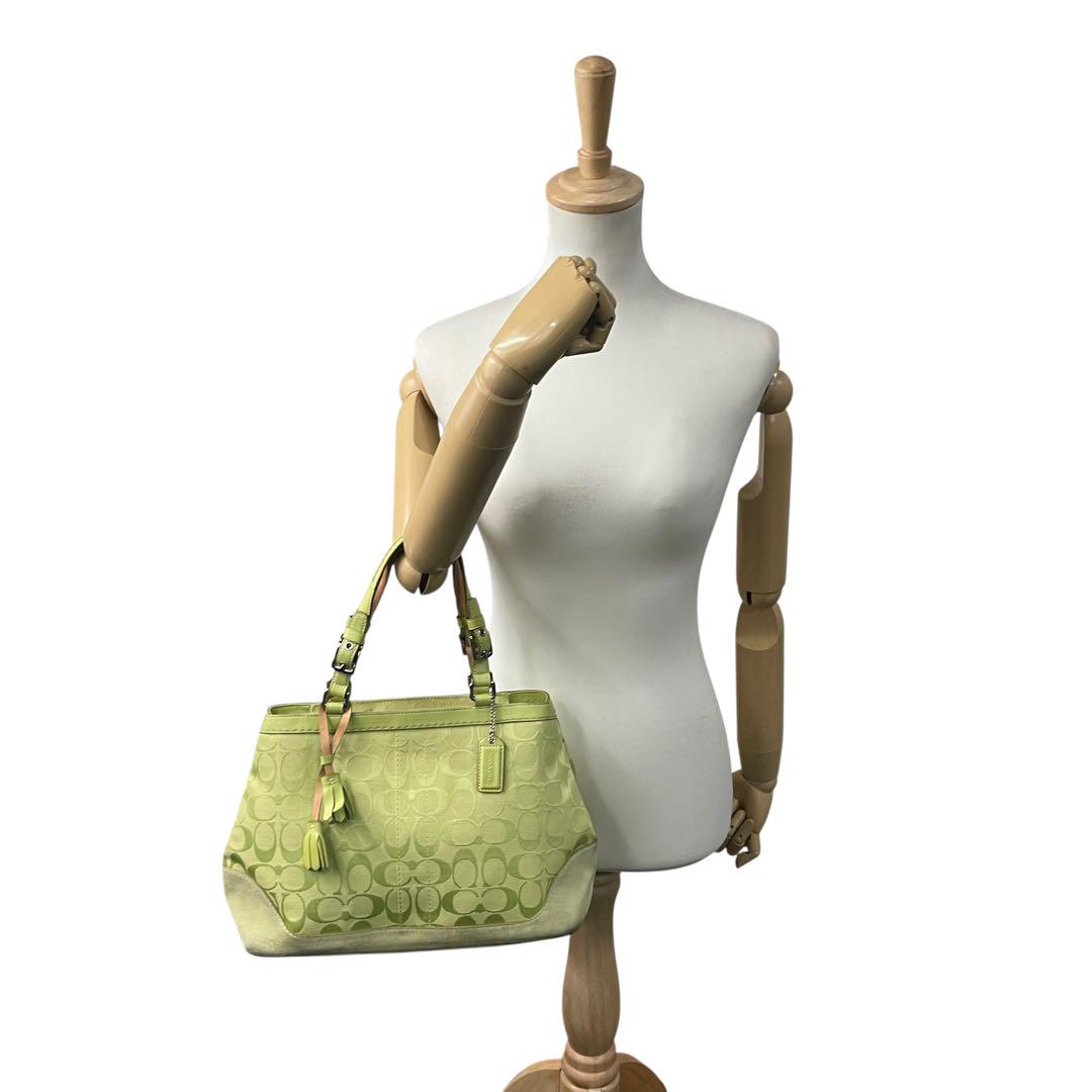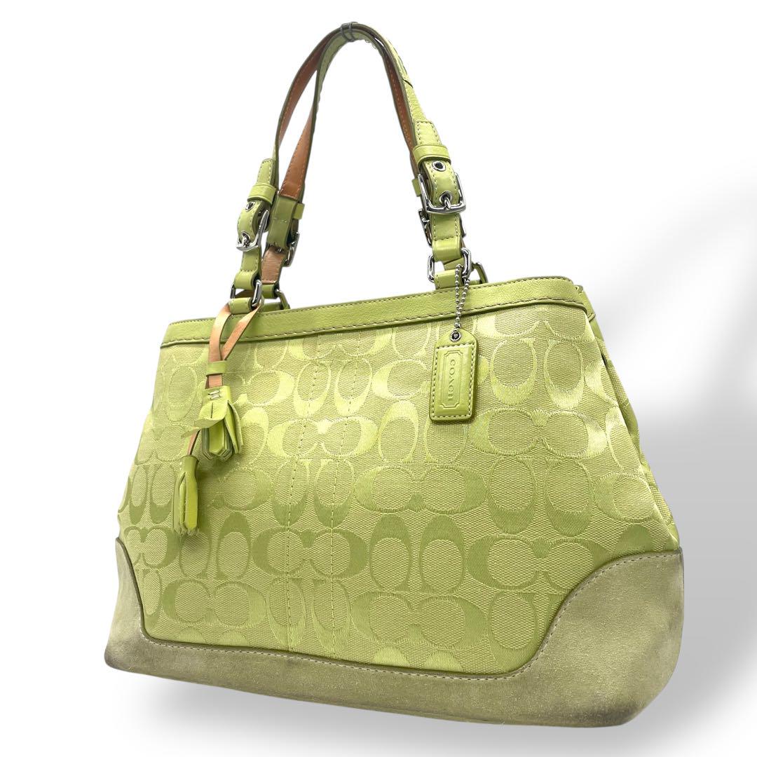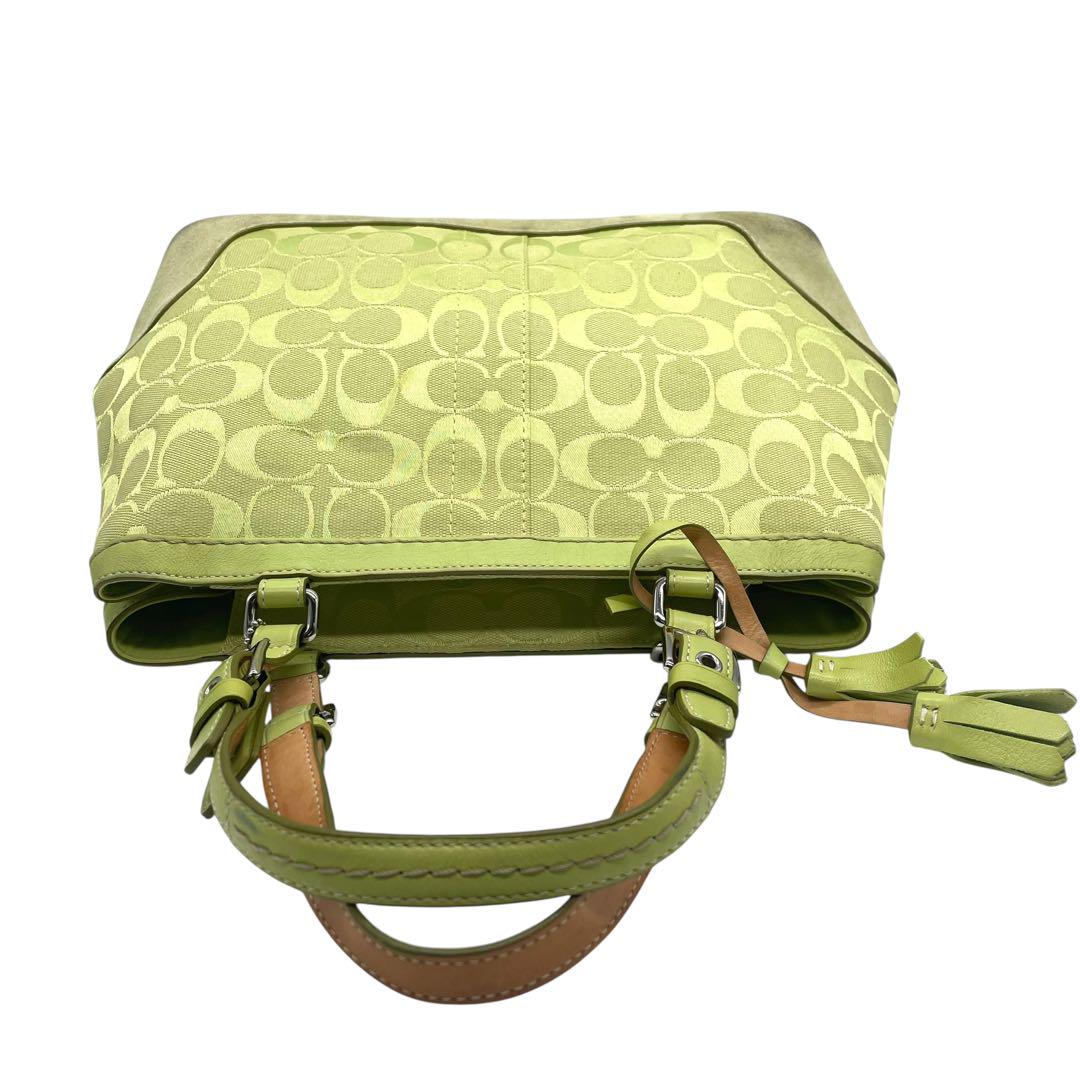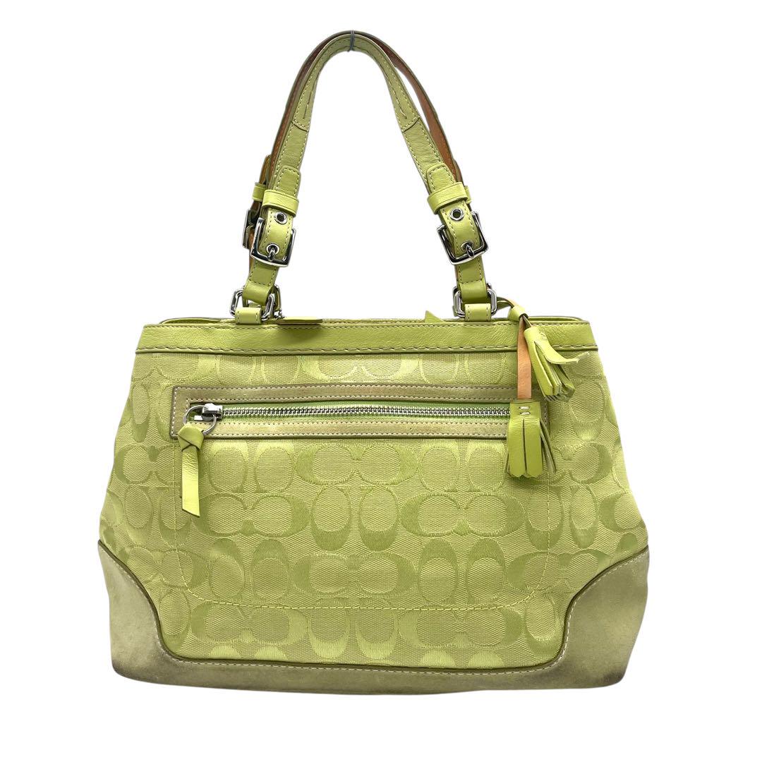コーチ ハンドバッグ 黄緑 シグネチャー タッセル チャーム キャンバス スエード レザー トートバッグ グリーン レディース 6830