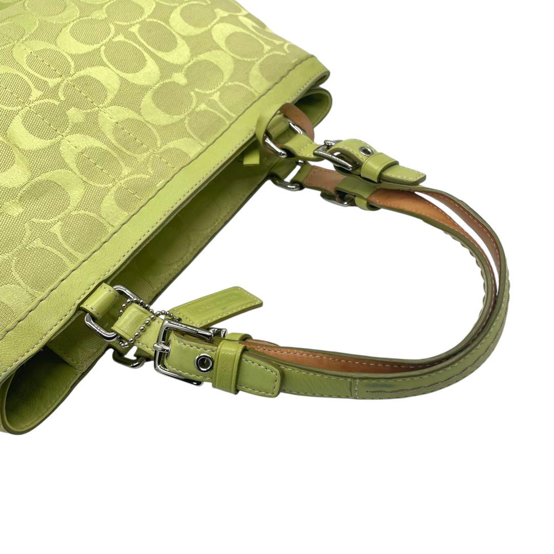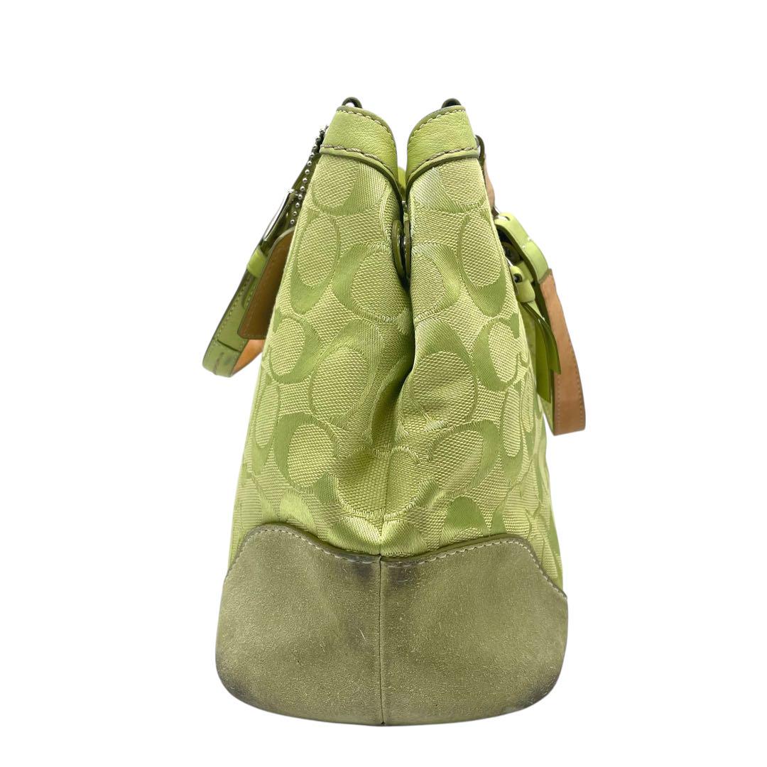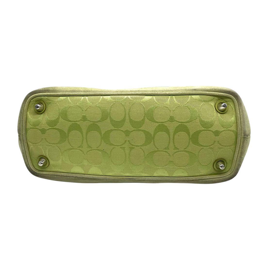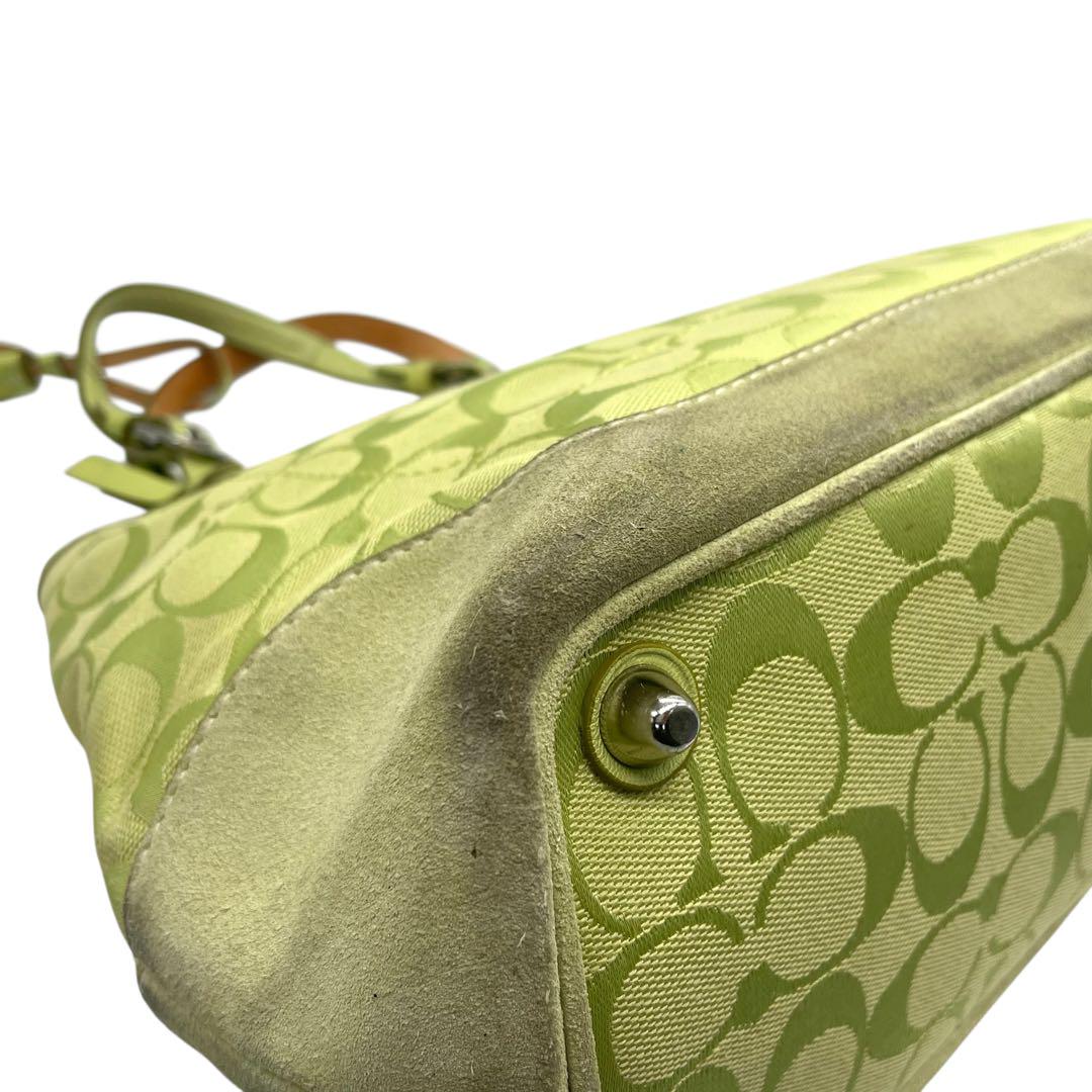 コーチ ハンドバッグ 黄緑 シグネチャー タッセル チャーム キャンバス スエード レザー トートバッグ グリーン レディース 6830
