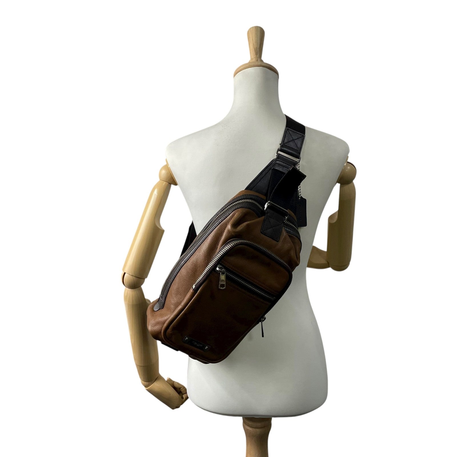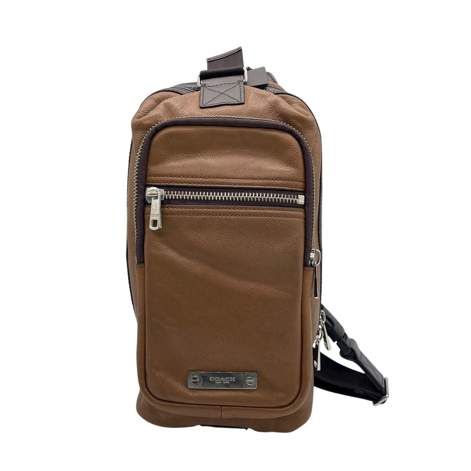 コーチ COACH レザー ボディバッグ ワンショルダー 斜め掛け 茶色 ブラウン シルバー金具 メンズ レディース U2