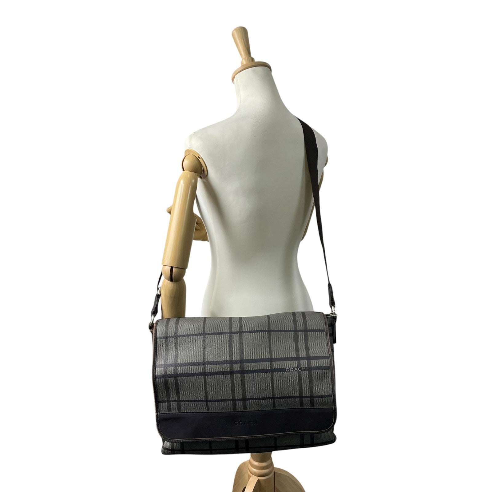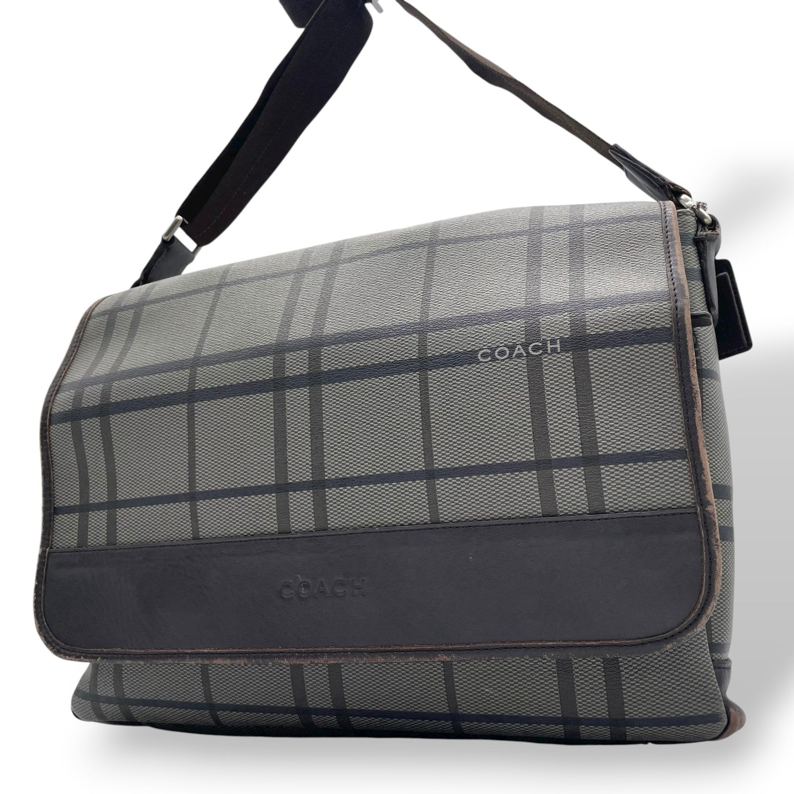 コーチ COACH メッセンジャーバッグ ショルダーバッグ チェック柄 グレー 黒 ブラック A4収納可 ヴィンテージ U2