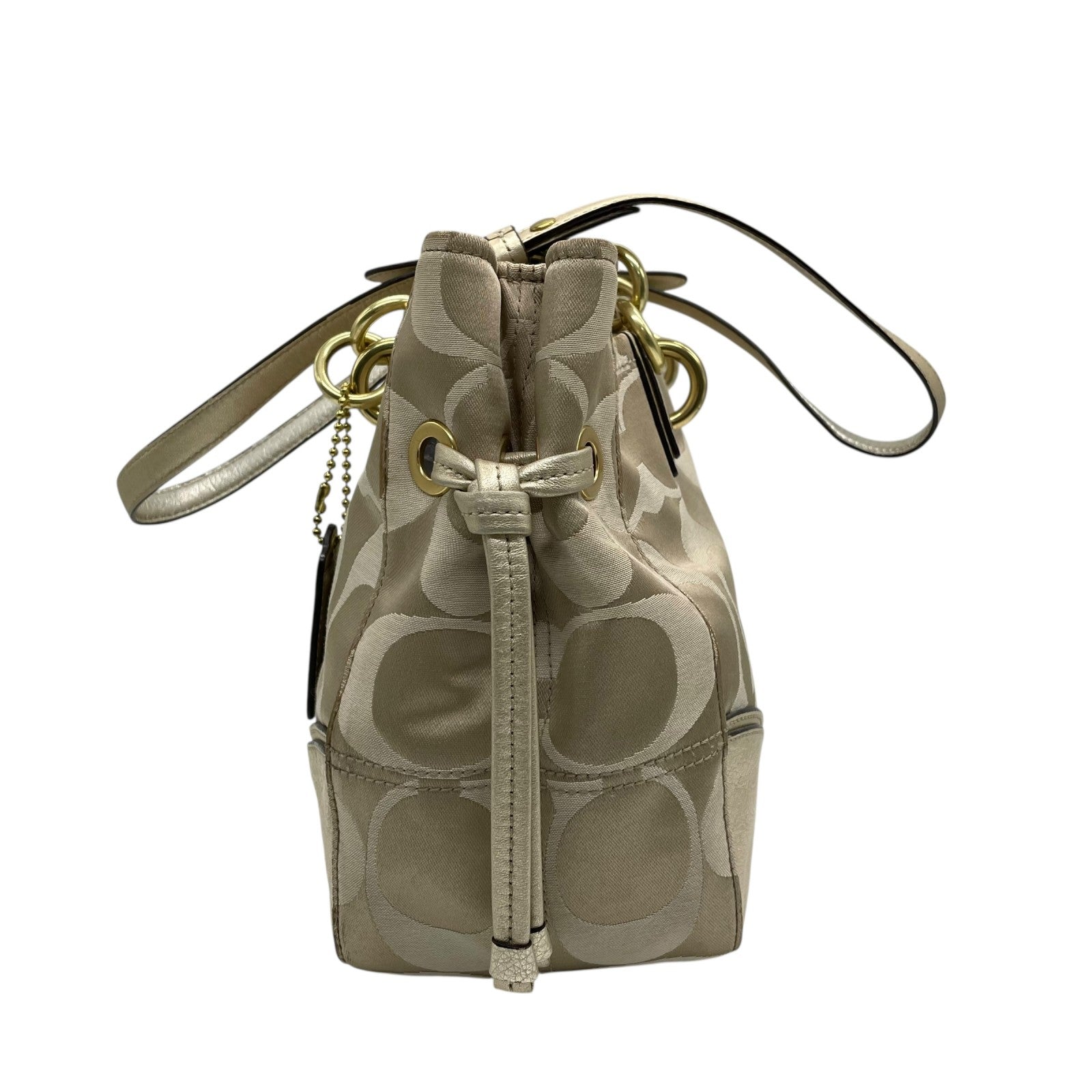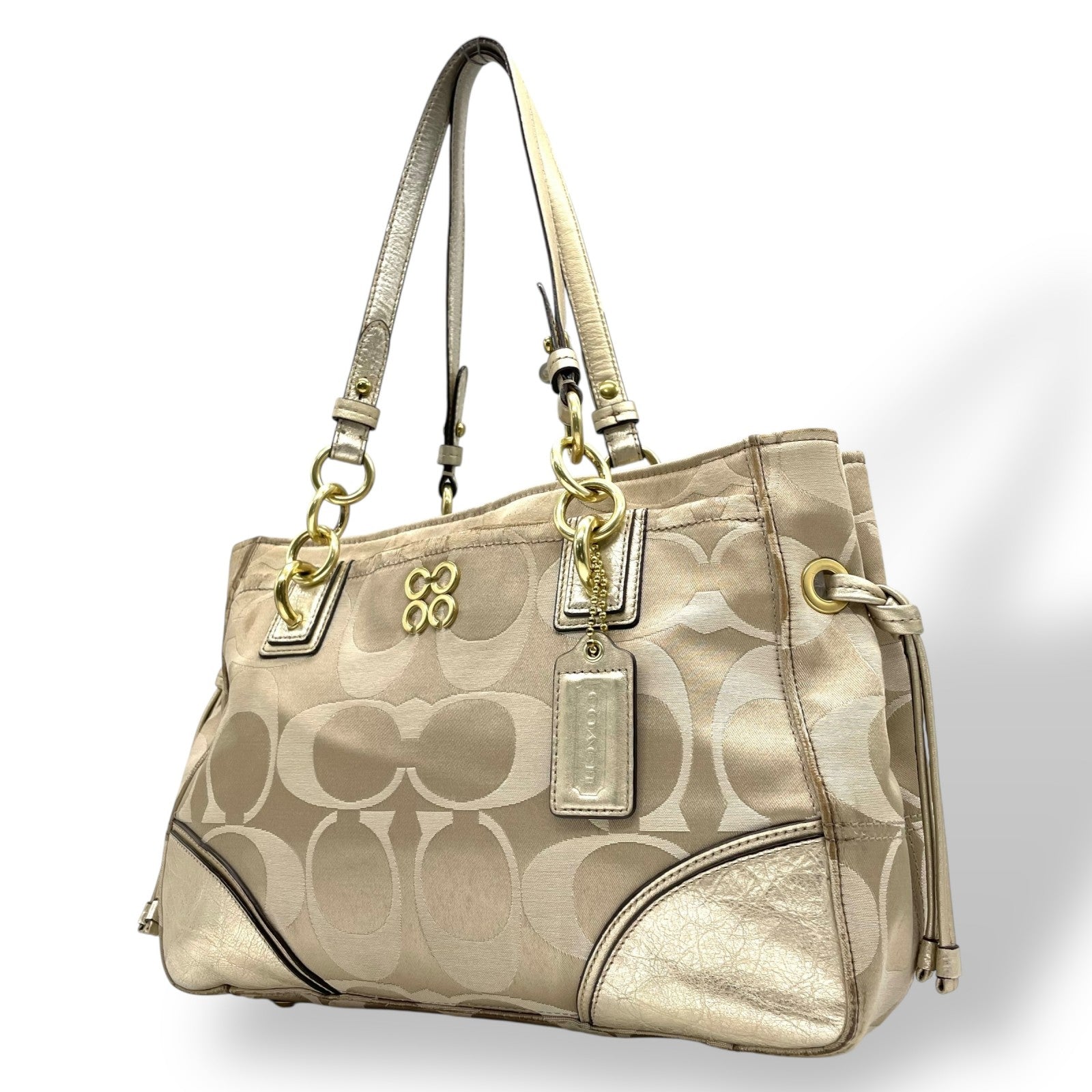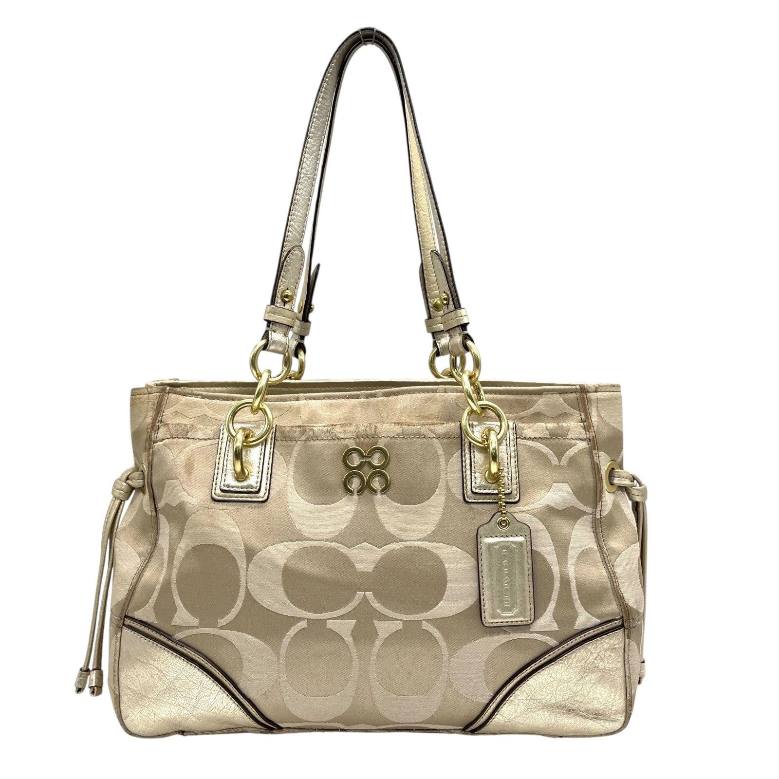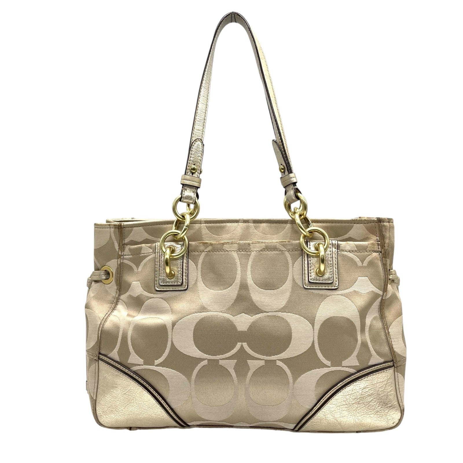 COACH コーチ トートバッグ ショルダーバッグ F16475 コレット シグネチャー キャリーオール サテン キャンバス レザー ベージュ ゴールド 肩掛け可 レディース E10