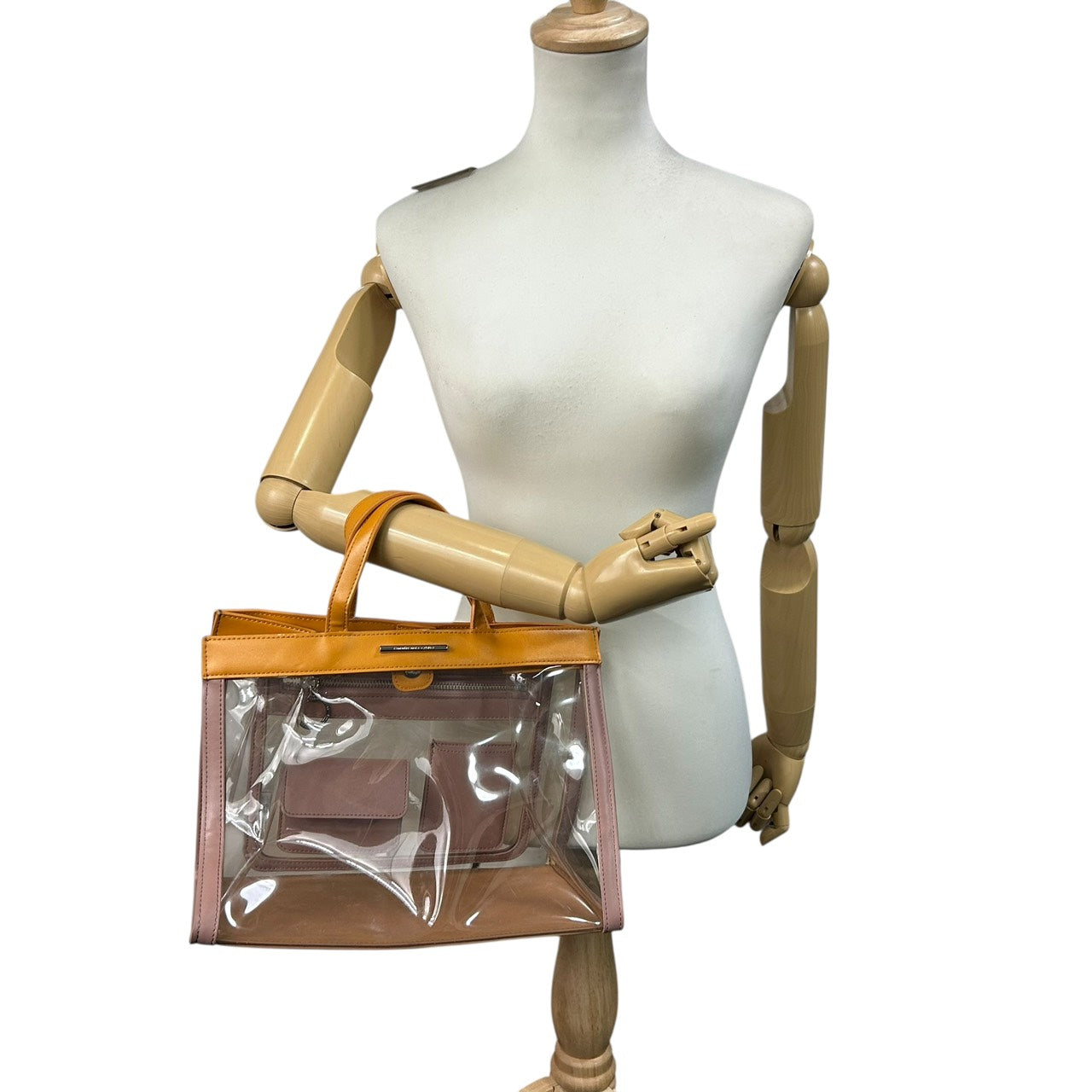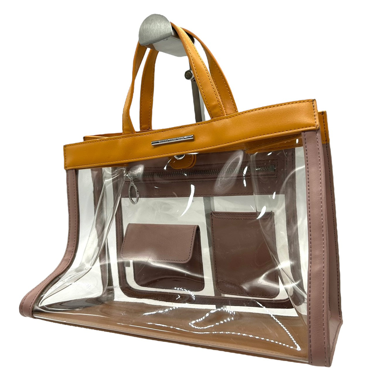 サマンサタバサ Samantha Thavasa トートバッグ クリア PVC レザー イエロー ベージュ×マスタード インナーポーチ付き S60
