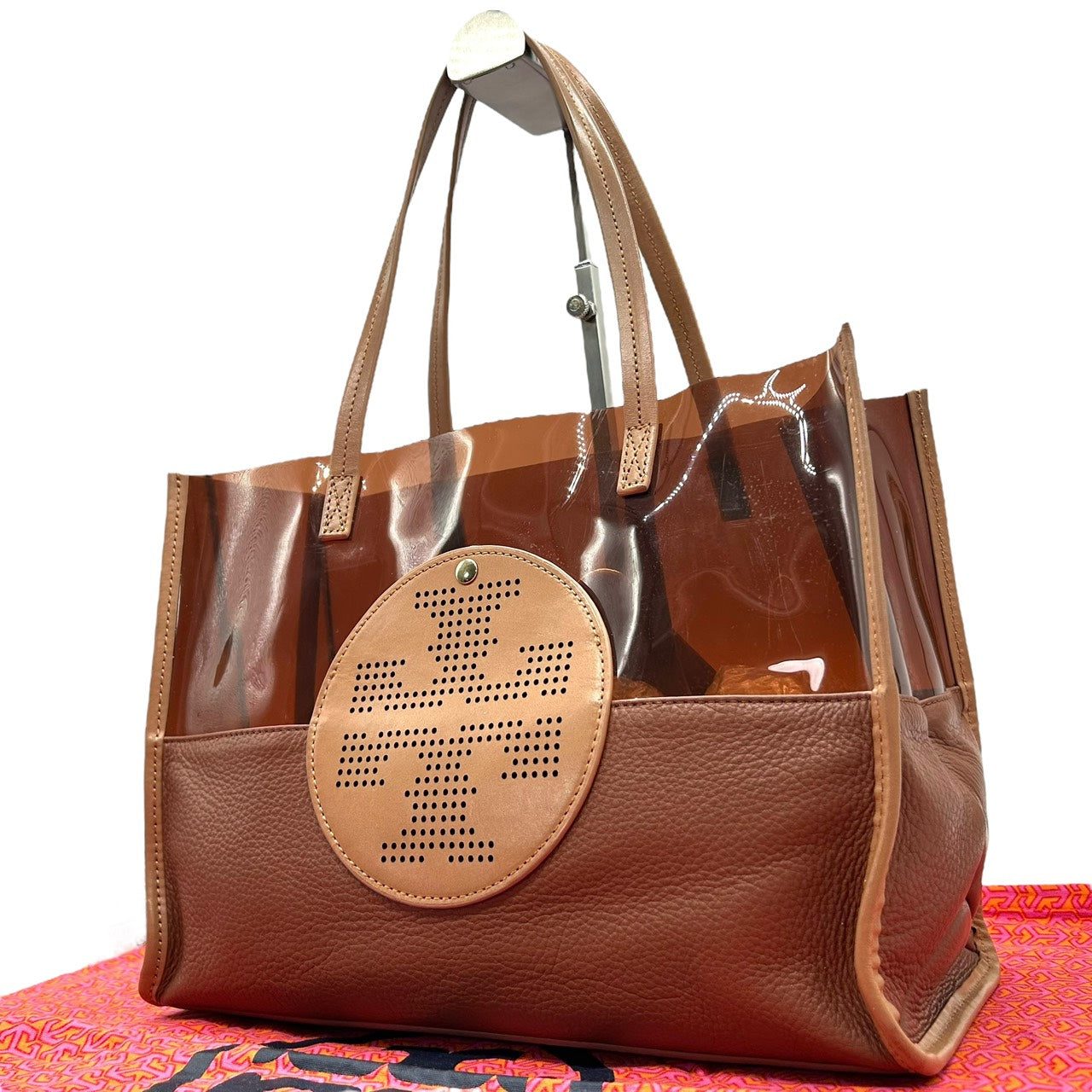 トリーバーチ TORY BURCH トートバッグ PVC クリア レザー 茶色 ブラウン系 パンチングロゴ ダブルT 上品 おしゃれ S66