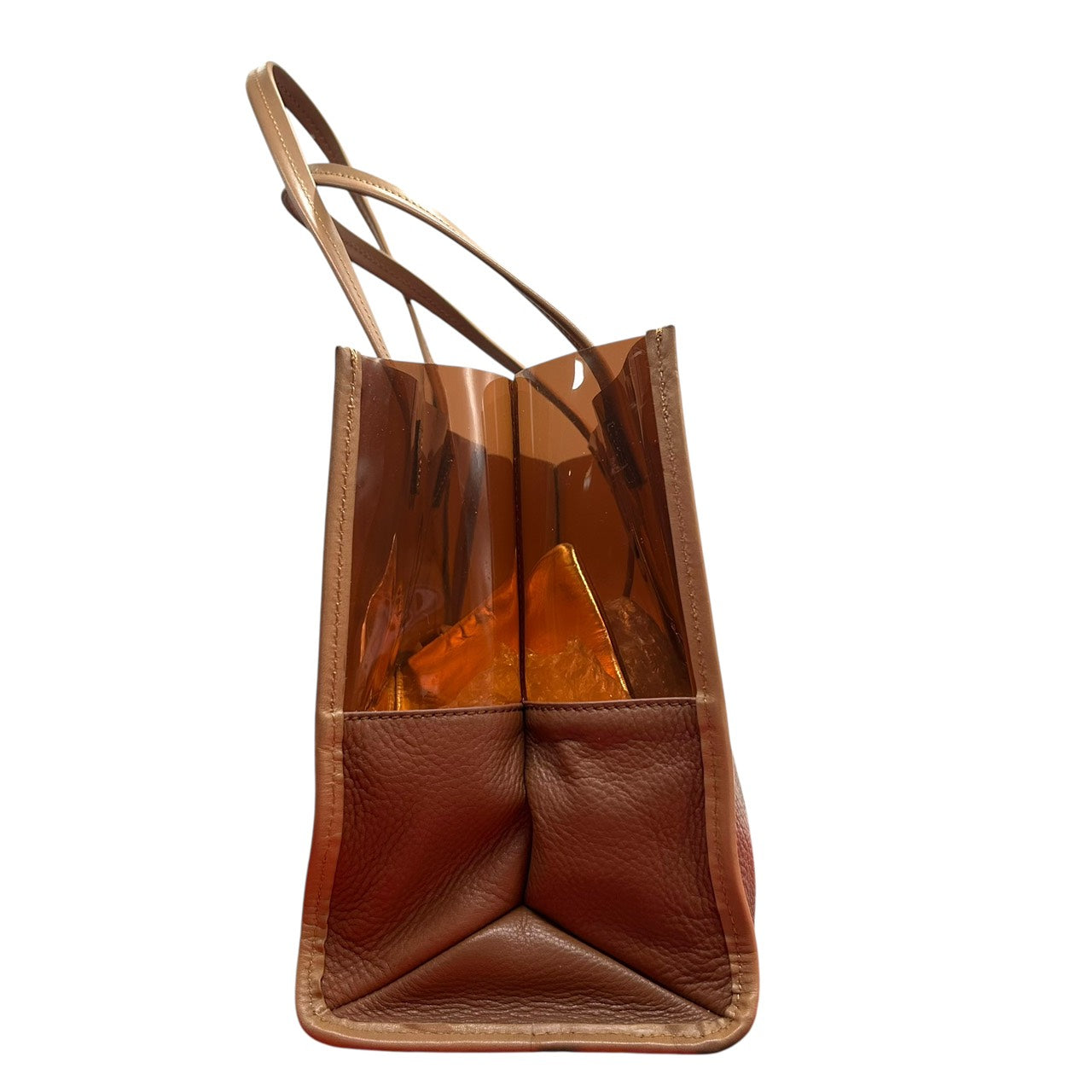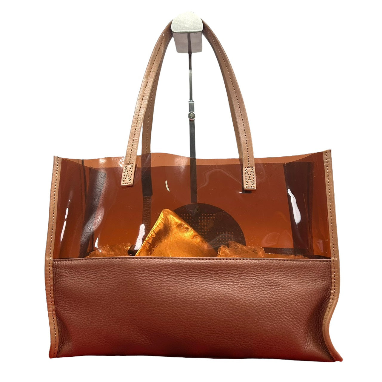 | 商品説明 | TORY BURCH(トリーバーチ)のPVC×レザートートバッグです。 透け感のあるクリアブラウンPVCと柔らかなライトブラウンレザーの組み合わせが上品で、軽やかな印象を与えます。 フロントのロゴ部分はパンチングデザインで仕上げられ、ブランドらしい洗練されたアクセントに。 マチがしっかりあり、収納力も抜群。 デイリー使いはもちろん、ビーチや旅行などにもぴったりのスタイリッシュなアイテムです。 |