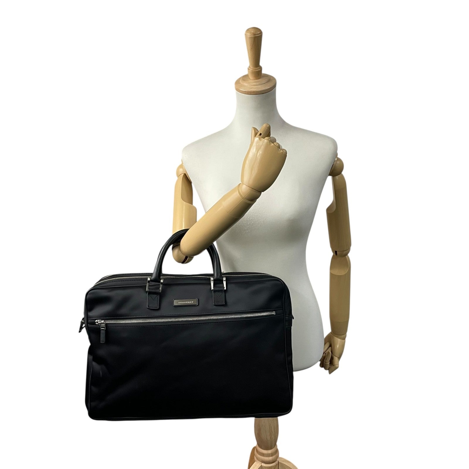 バーバリー BURBERRY ビジネスバッグ ブリーフケース ナイロン×レザー 黒 ブラック シルバー金具 2WAY メンズ E