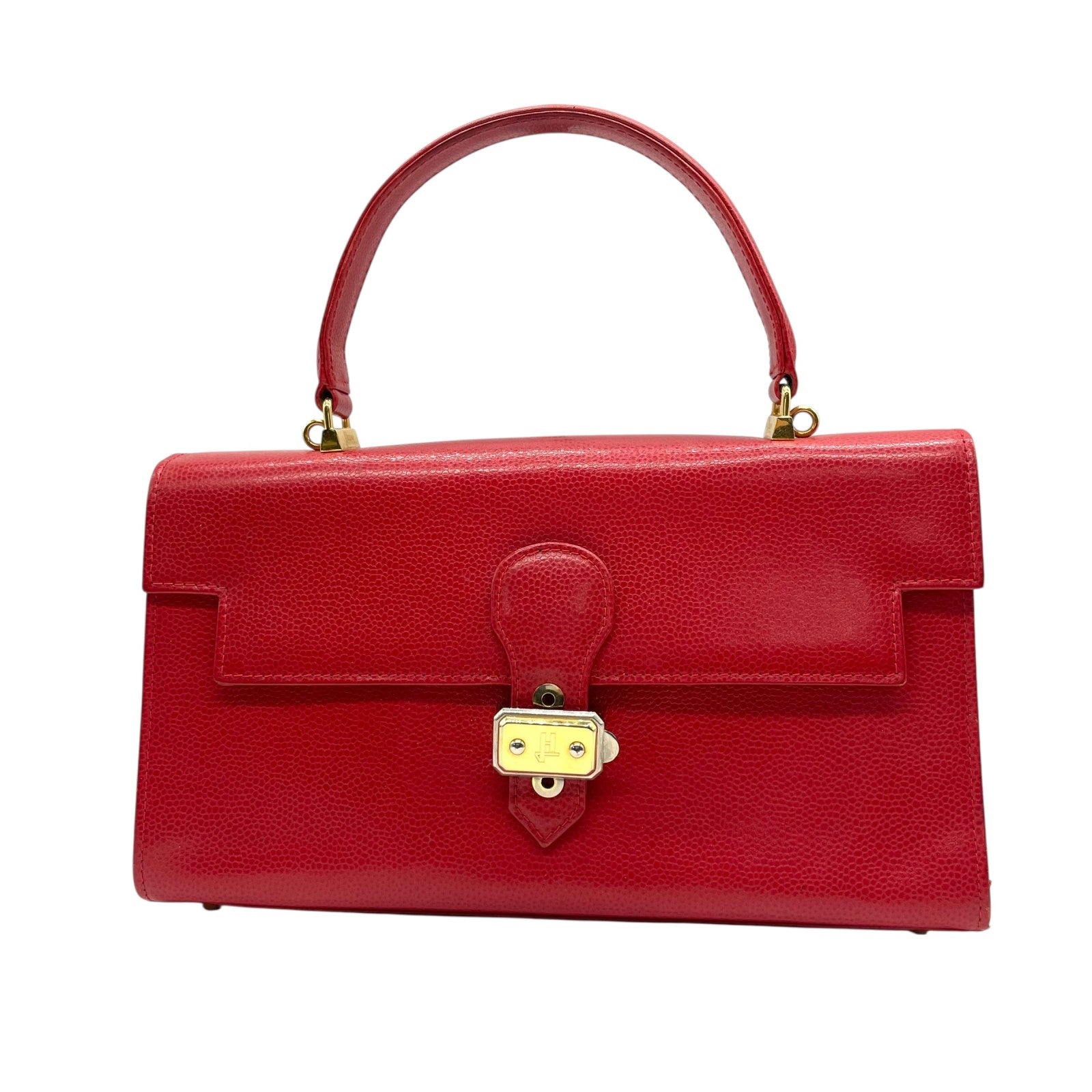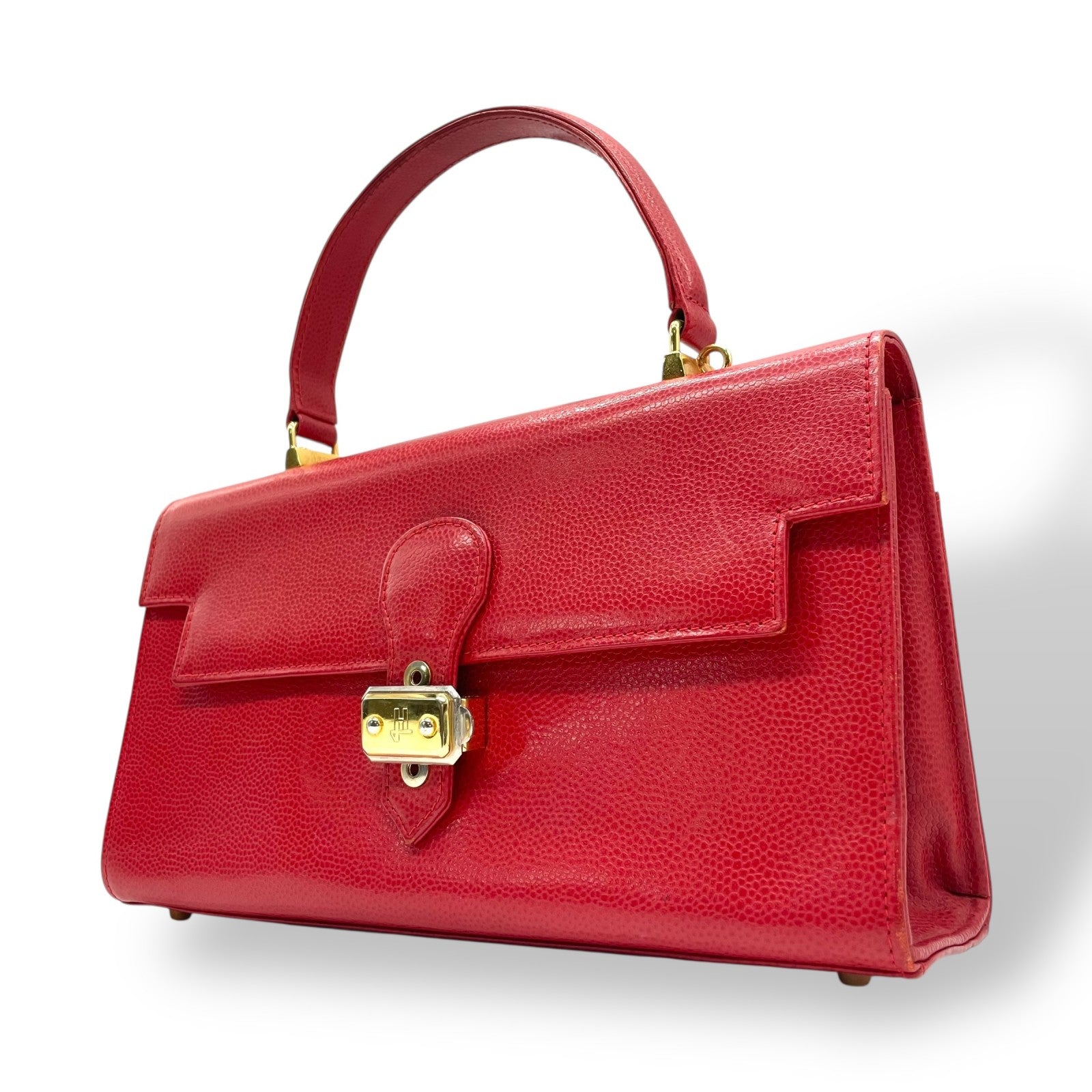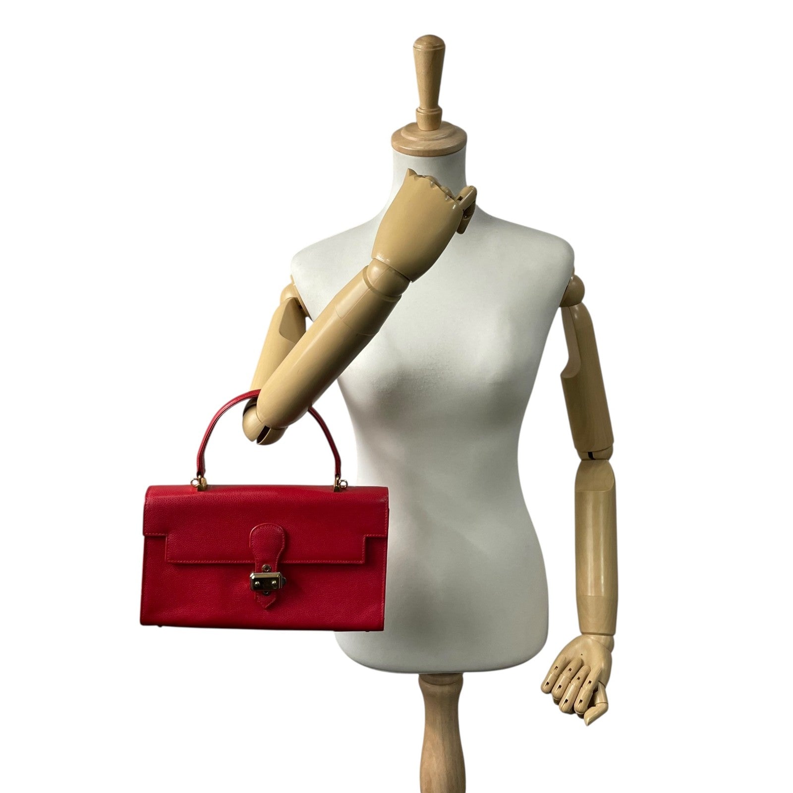 HERNO ヘルノ ハンドバッグ レザー レッド 赤 金金具 ゴールド金具 ヴィンテージ U8