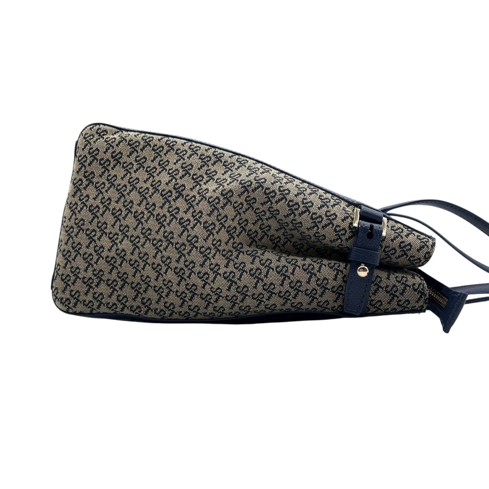 サマンサタバサ Samantha Thavasa トートバッグ ロゴジャガード 紺 ネイビー 肩掛け A4収納可 上品 T2