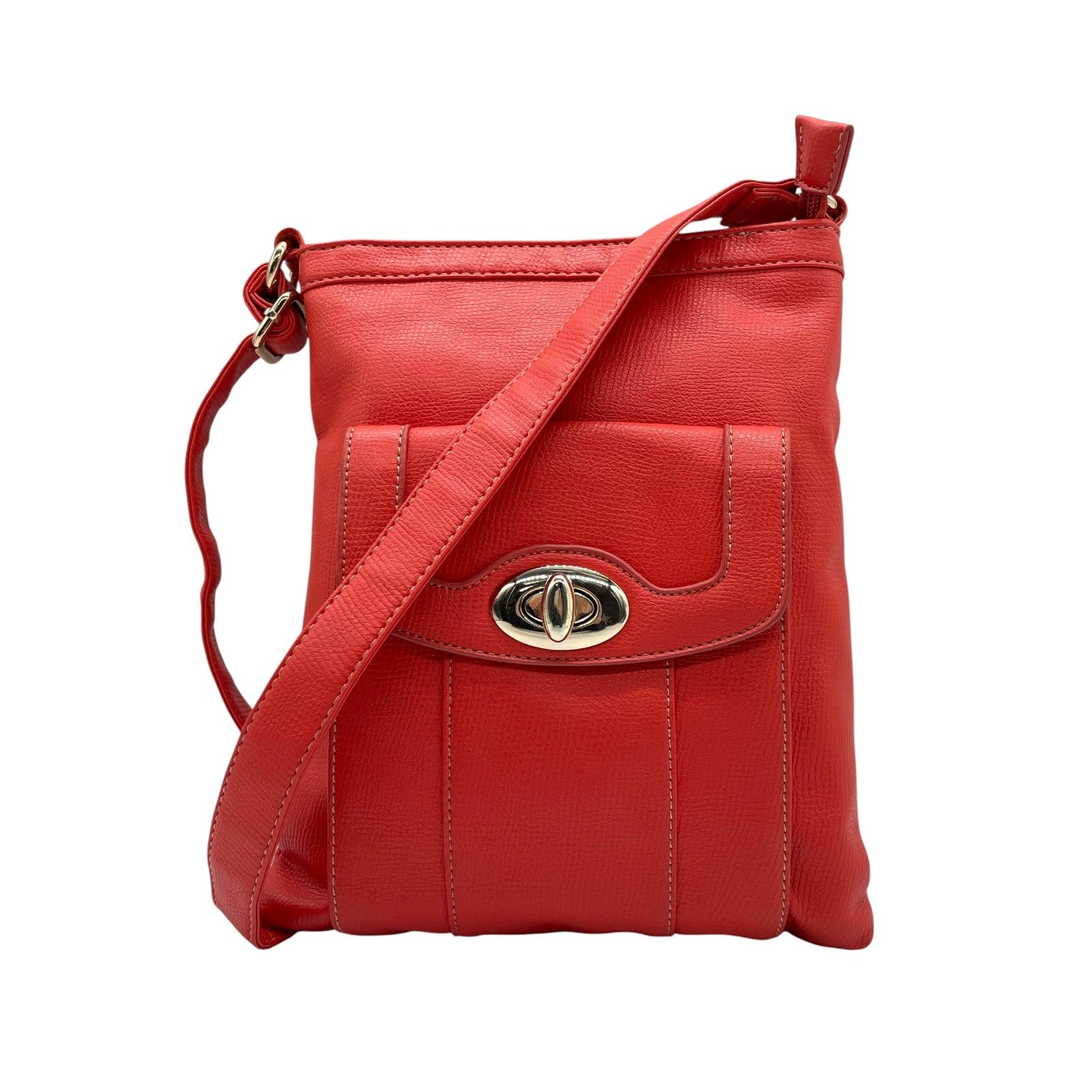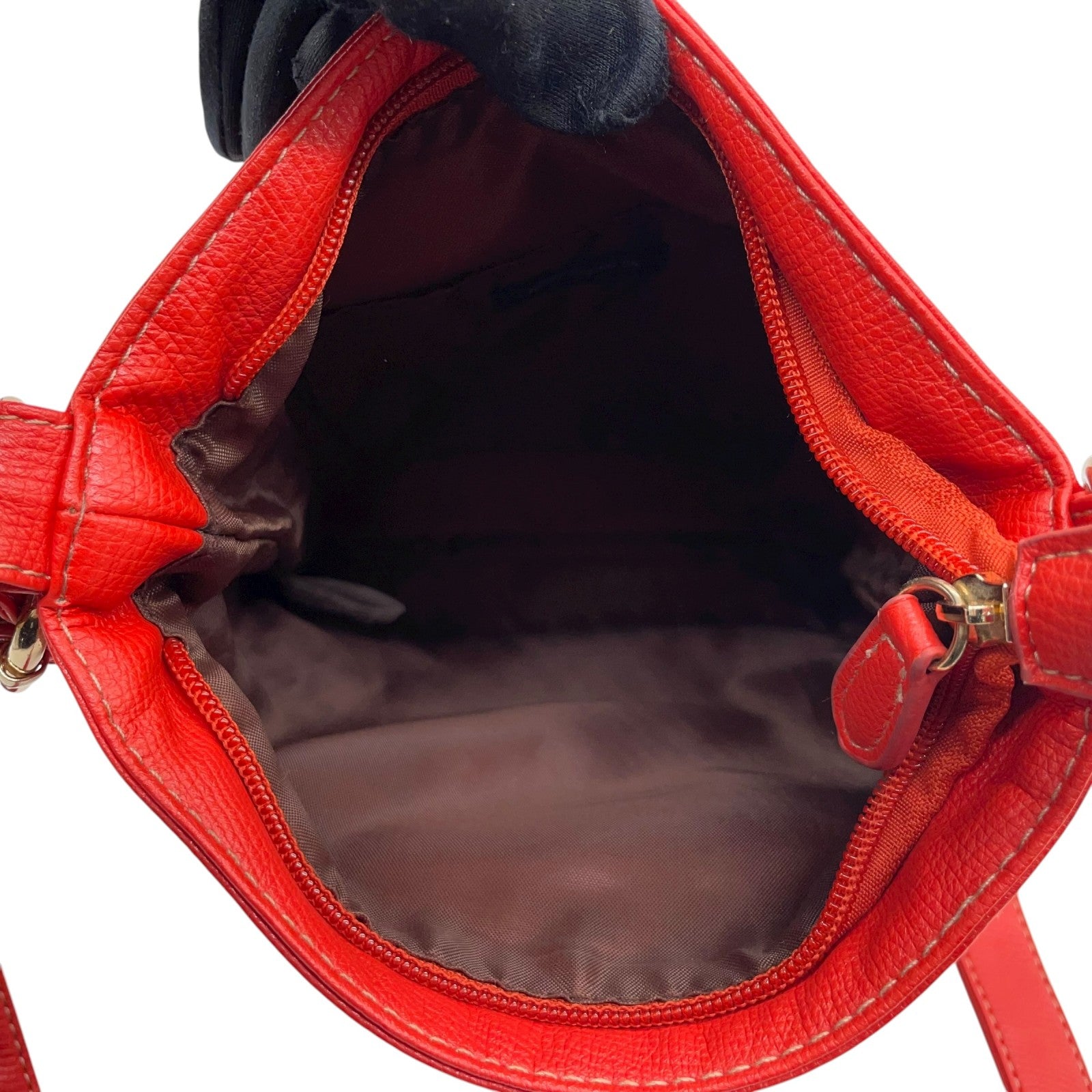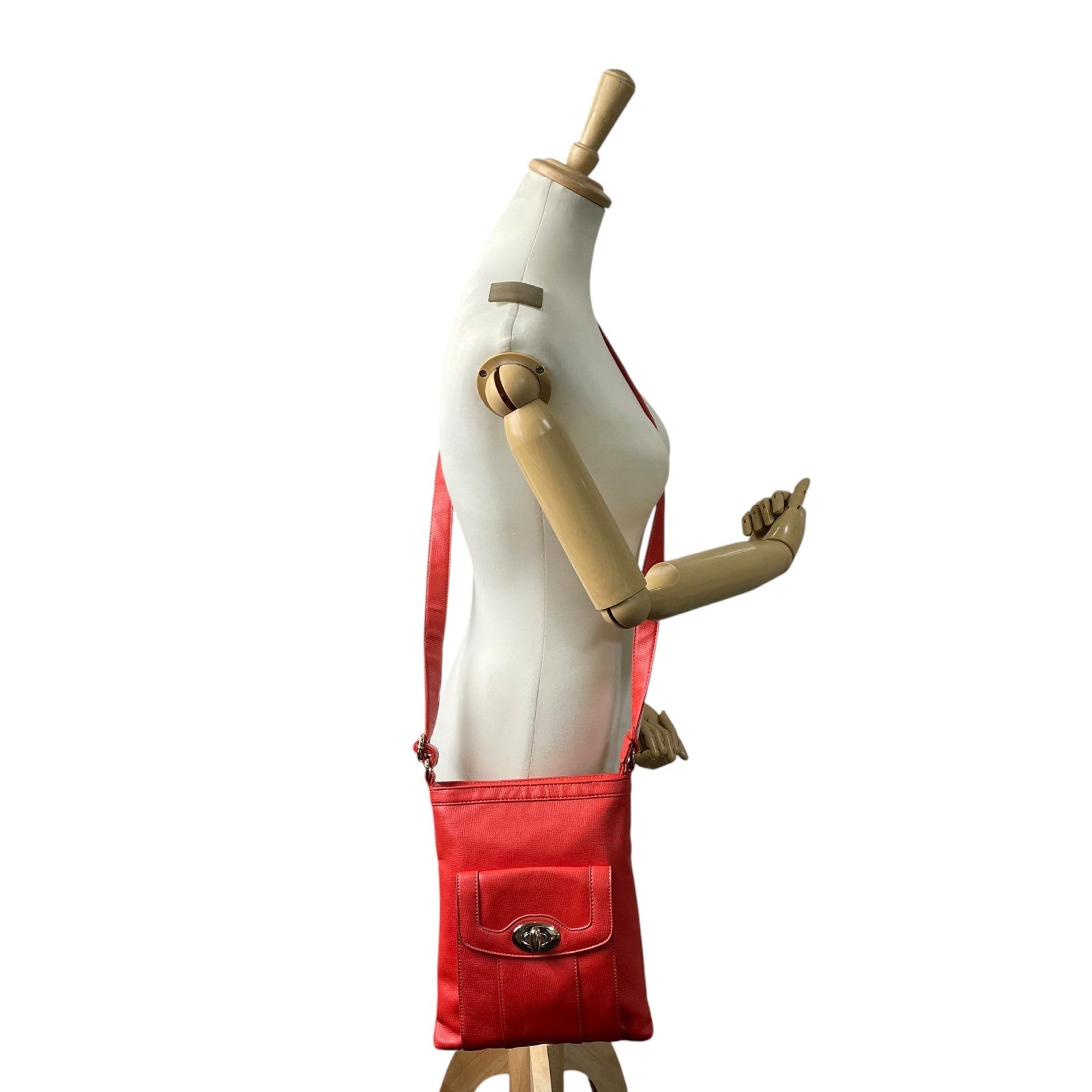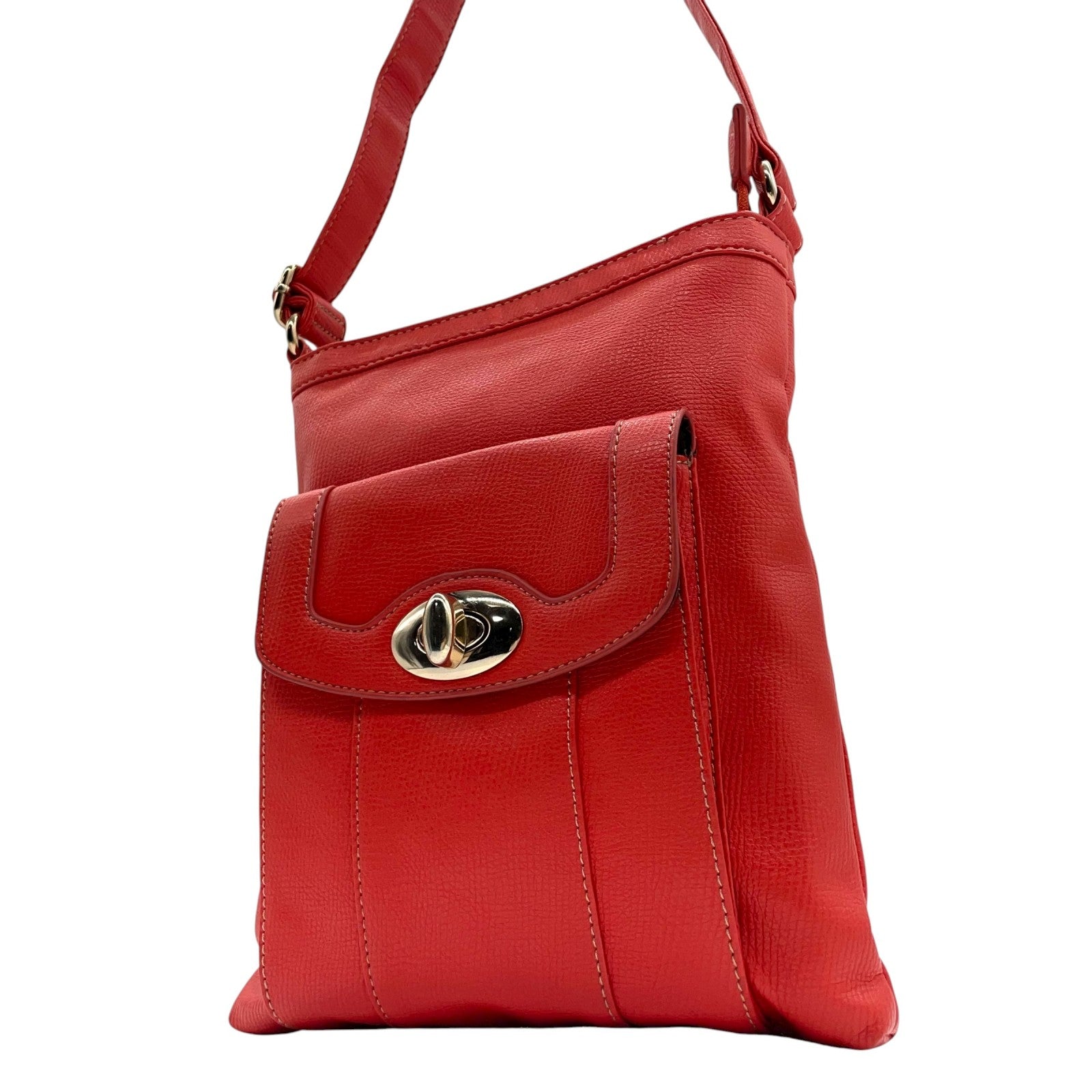 モノコムサ MONO COMME CA ショルダーバッグ レッド レザー フラップポケット付き スタイリッシュ T2