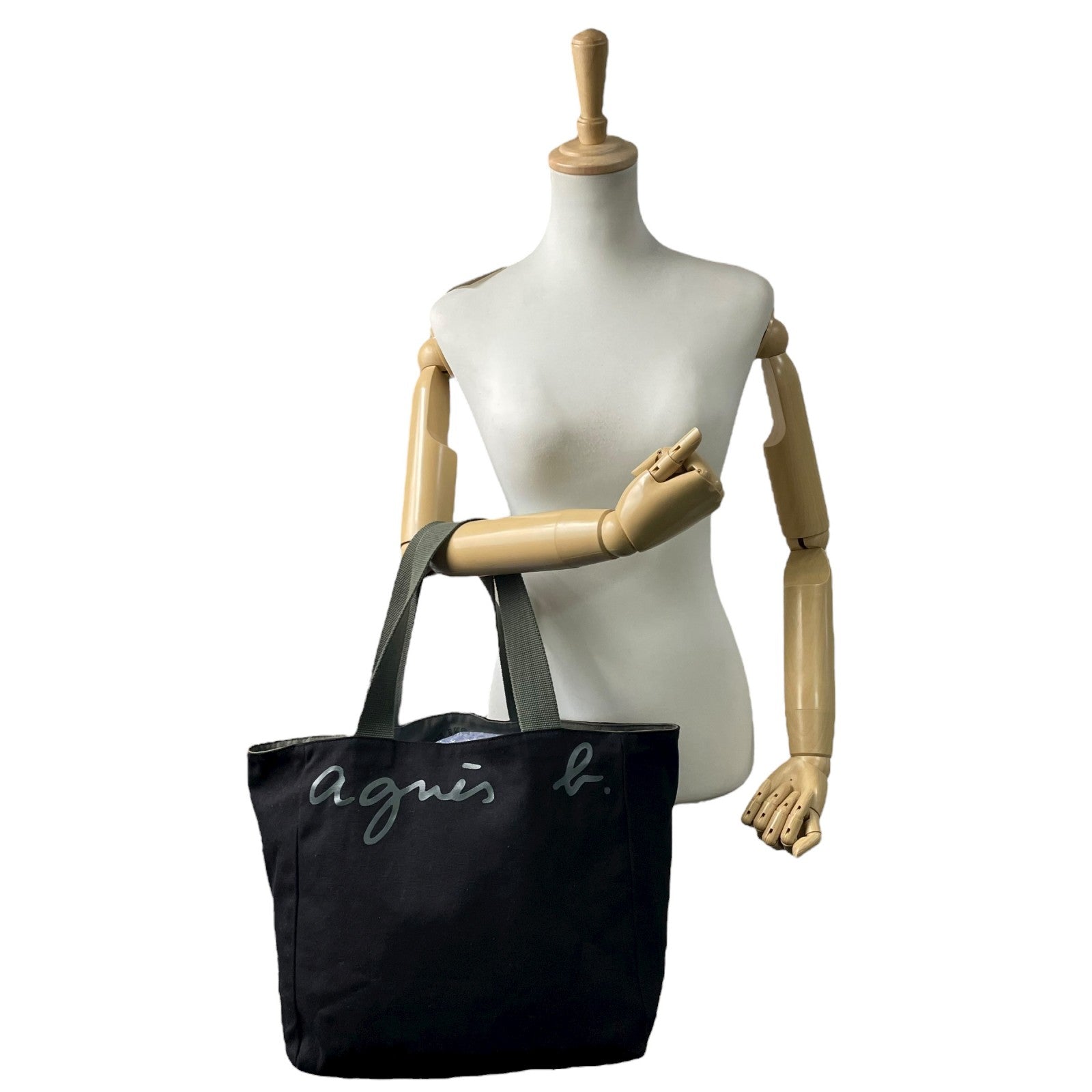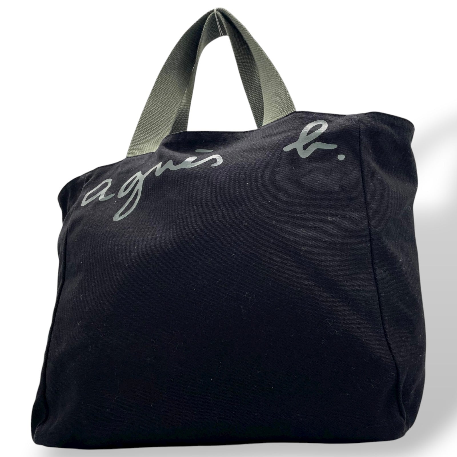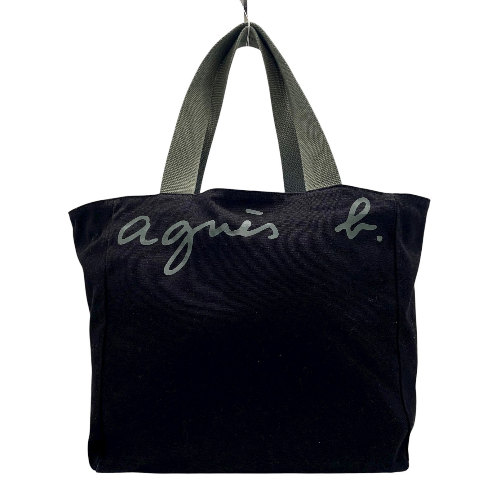 アニエスベー agns b. トートバッグ キャンバス 黒 ブラック ロゴプリント 大容量 ショルダー T3