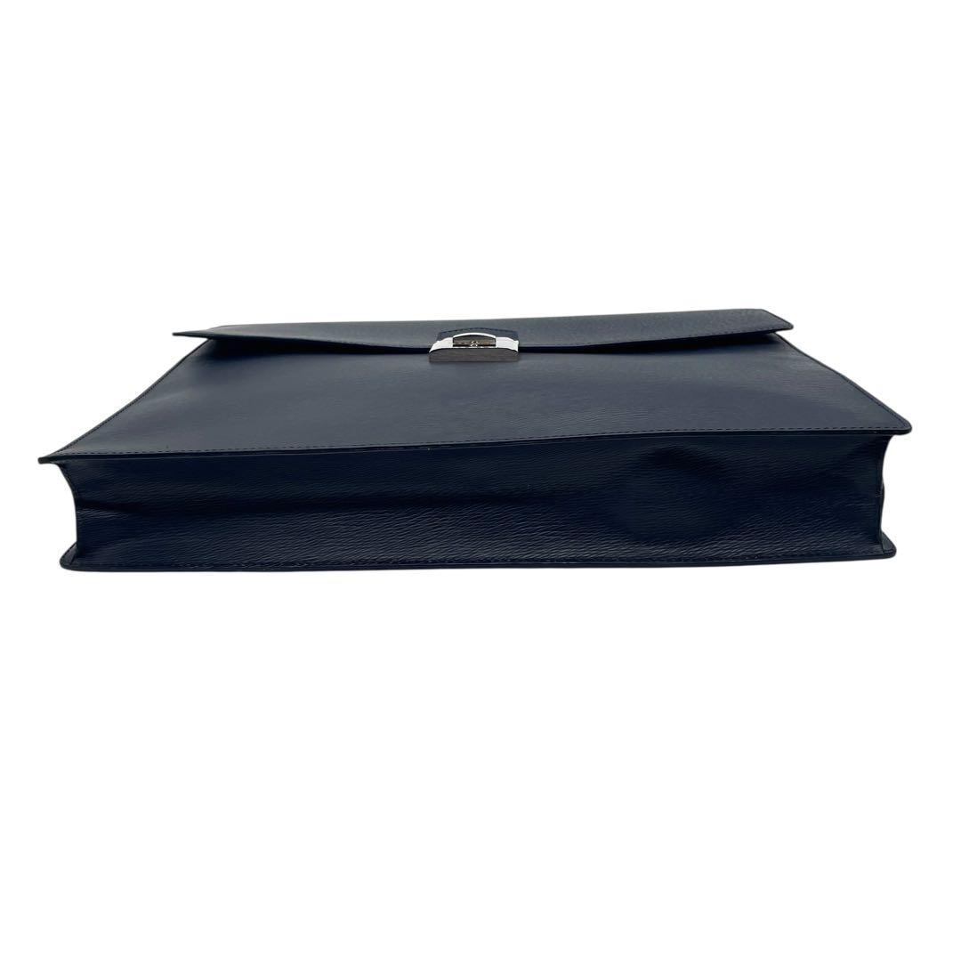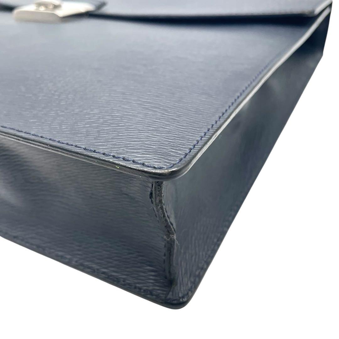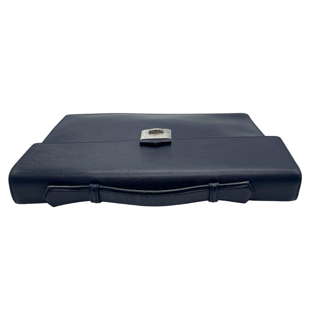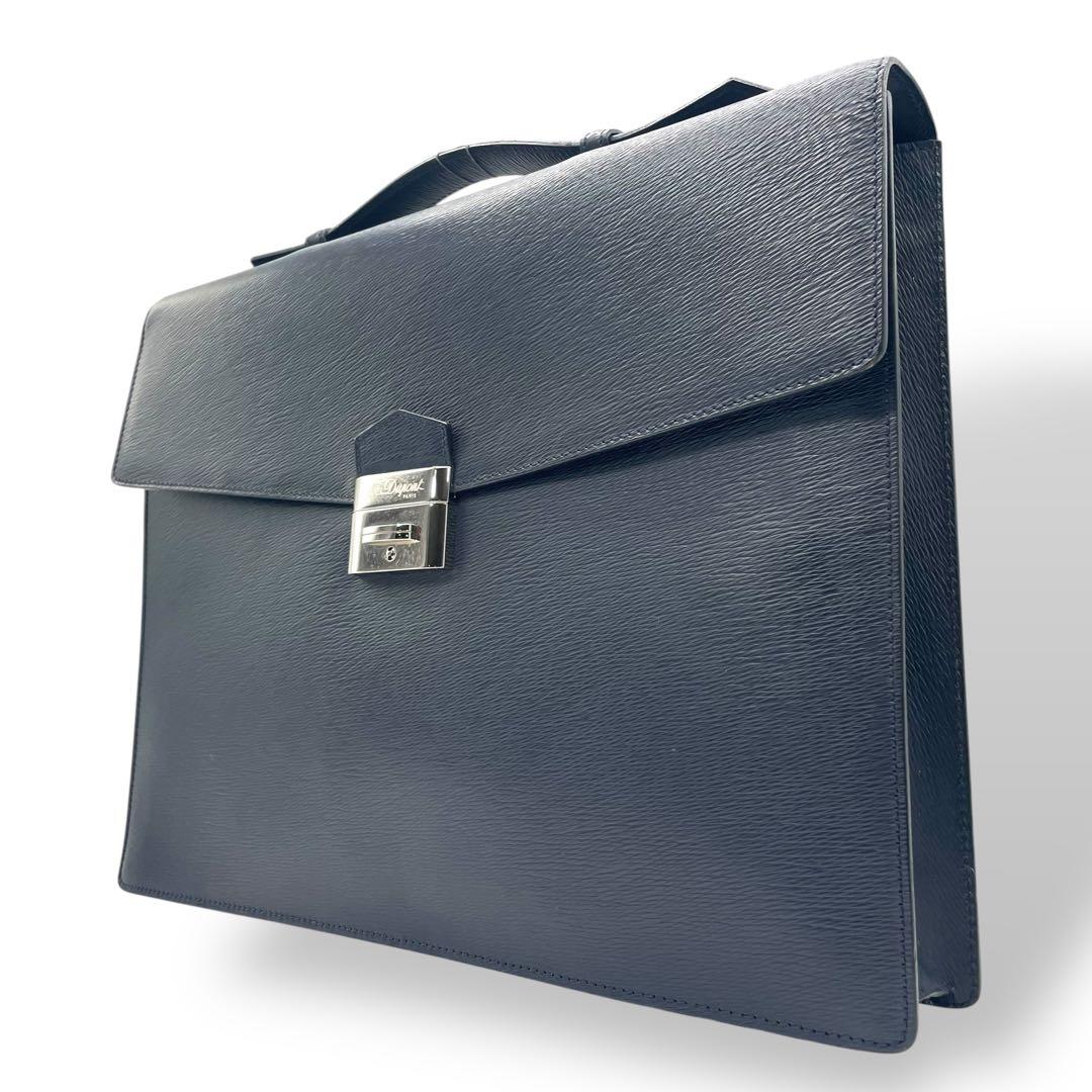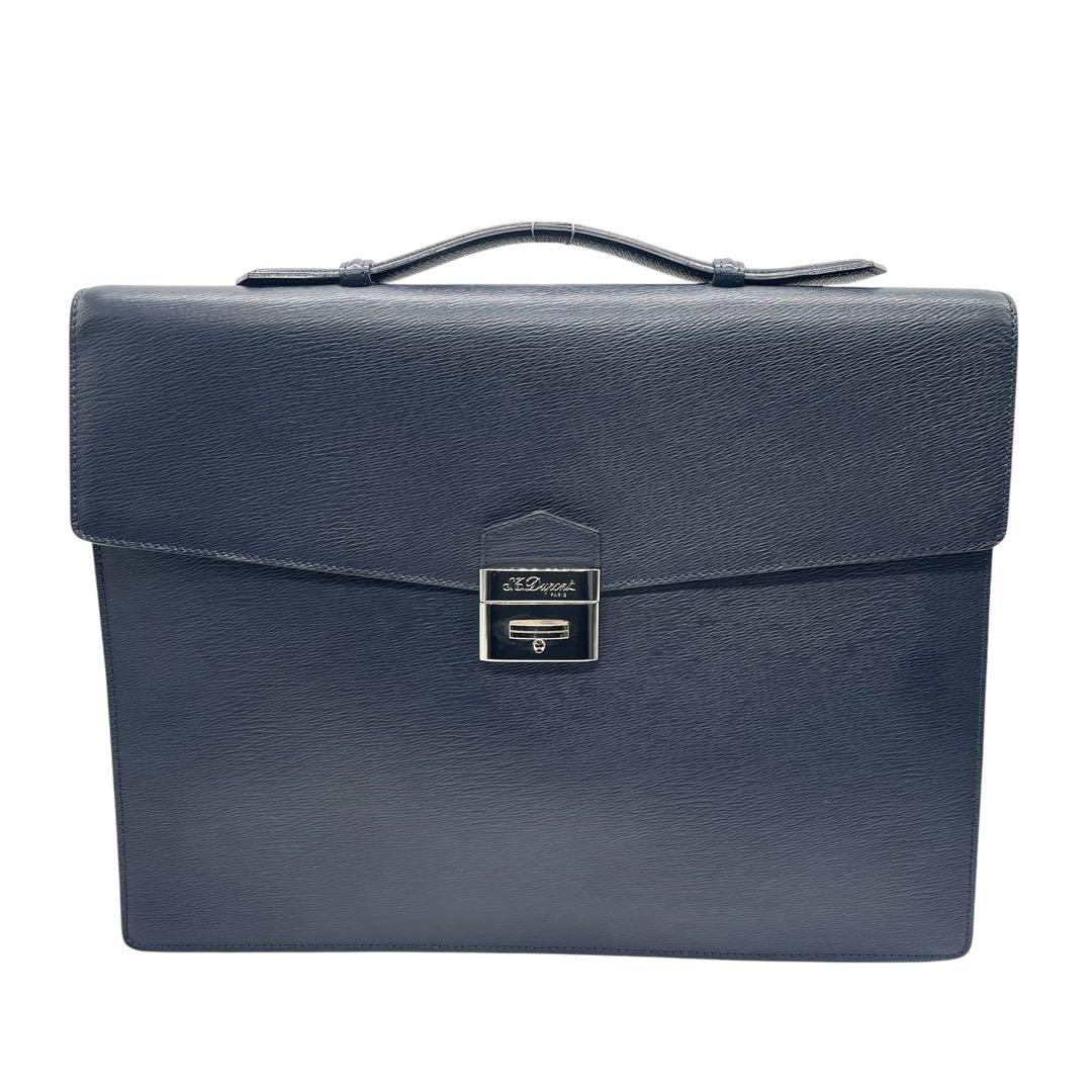 デュポン ビジネスバッグ ネイビー レザー ブリーフケース フラップ シルバー金具 ロゴ刻印 A4収納可 大容量 通勤 出張 自立型 ハンドバッグ メンズ