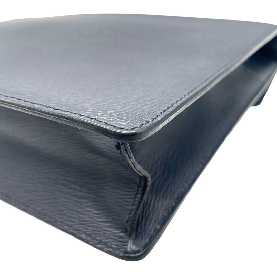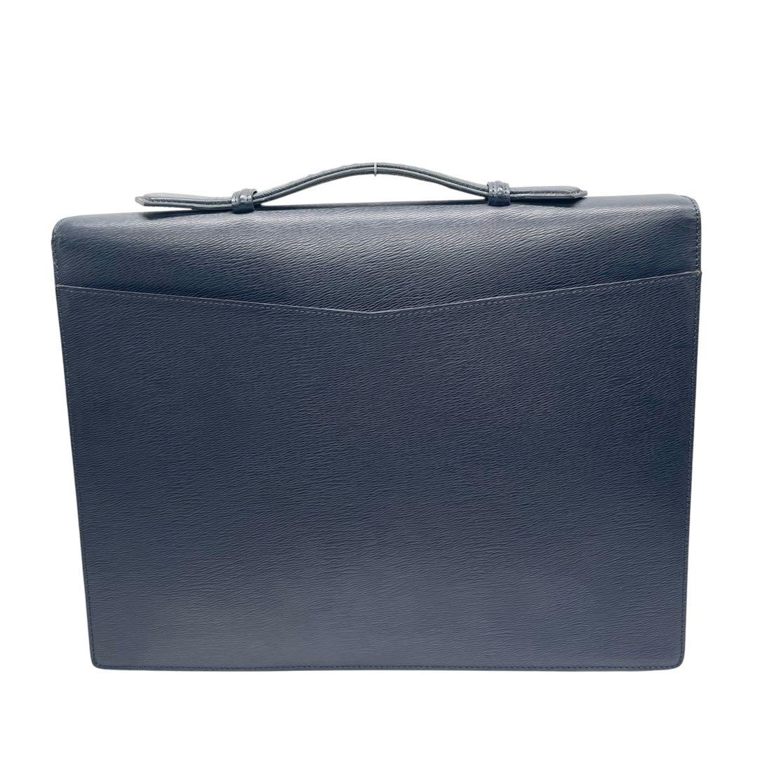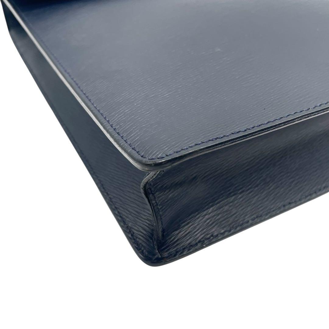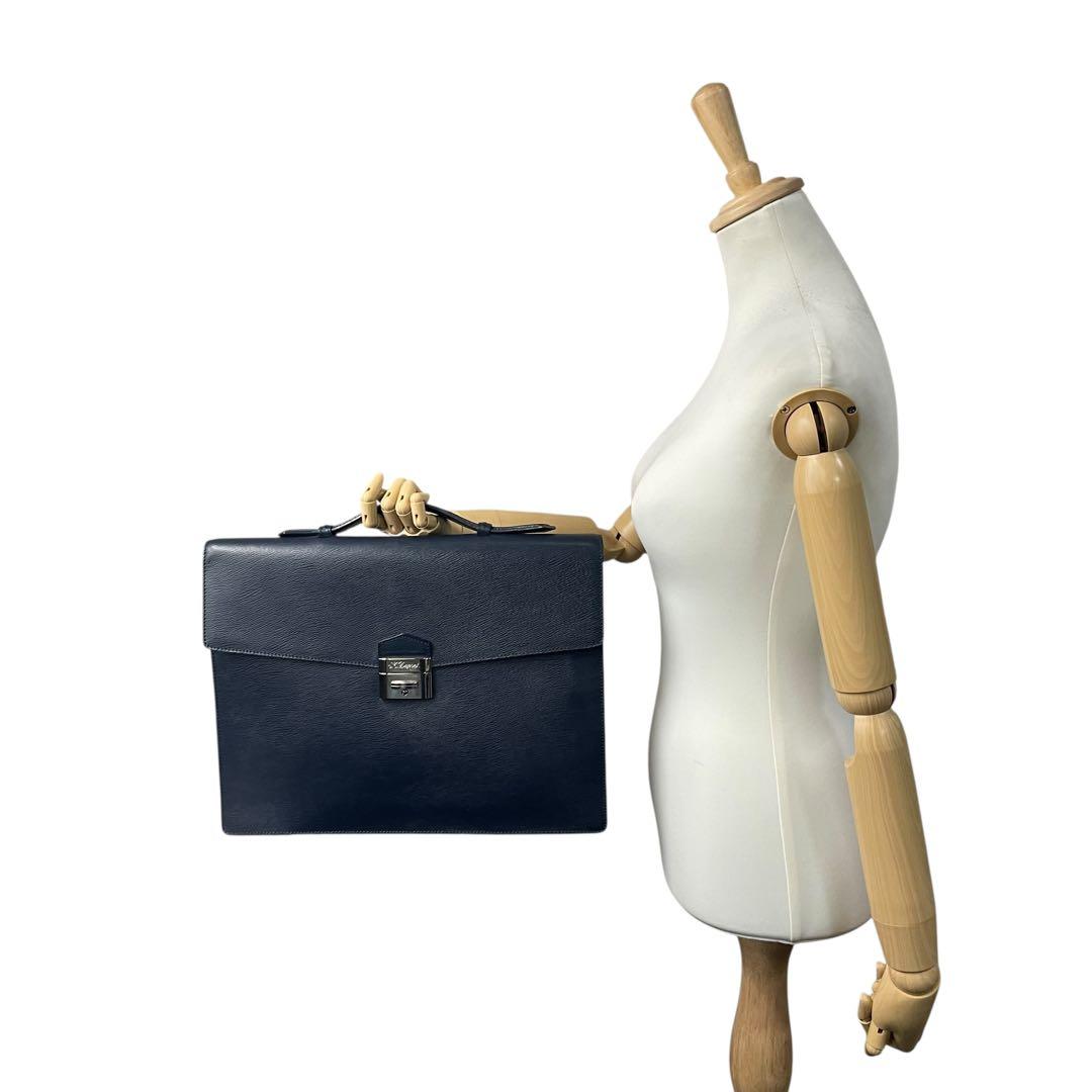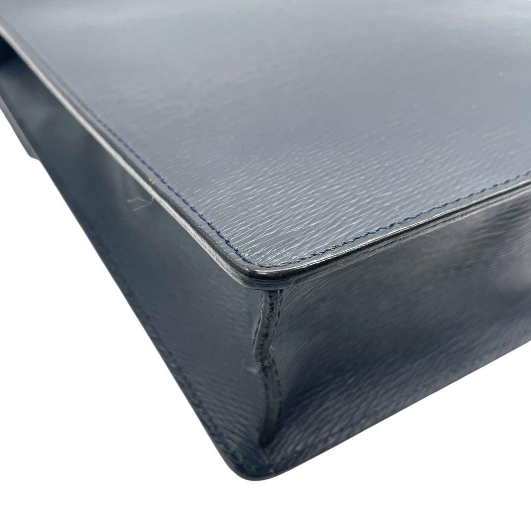 デュポン ビジネスバッグ ネイビー レザー ブリーフケース フラップ シルバー金具 ロゴ刻印 A4収納可 大容量 通勤 出張 自立型 ハンドバッグ メンズ