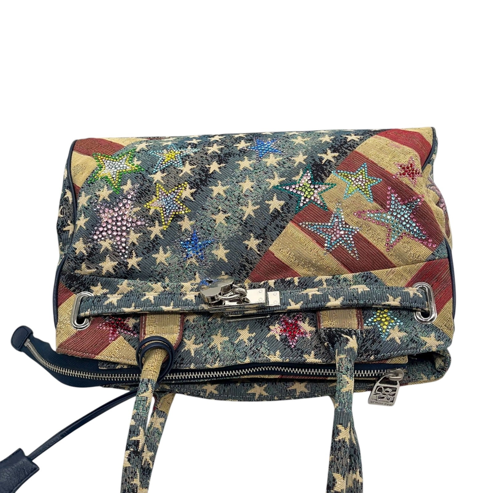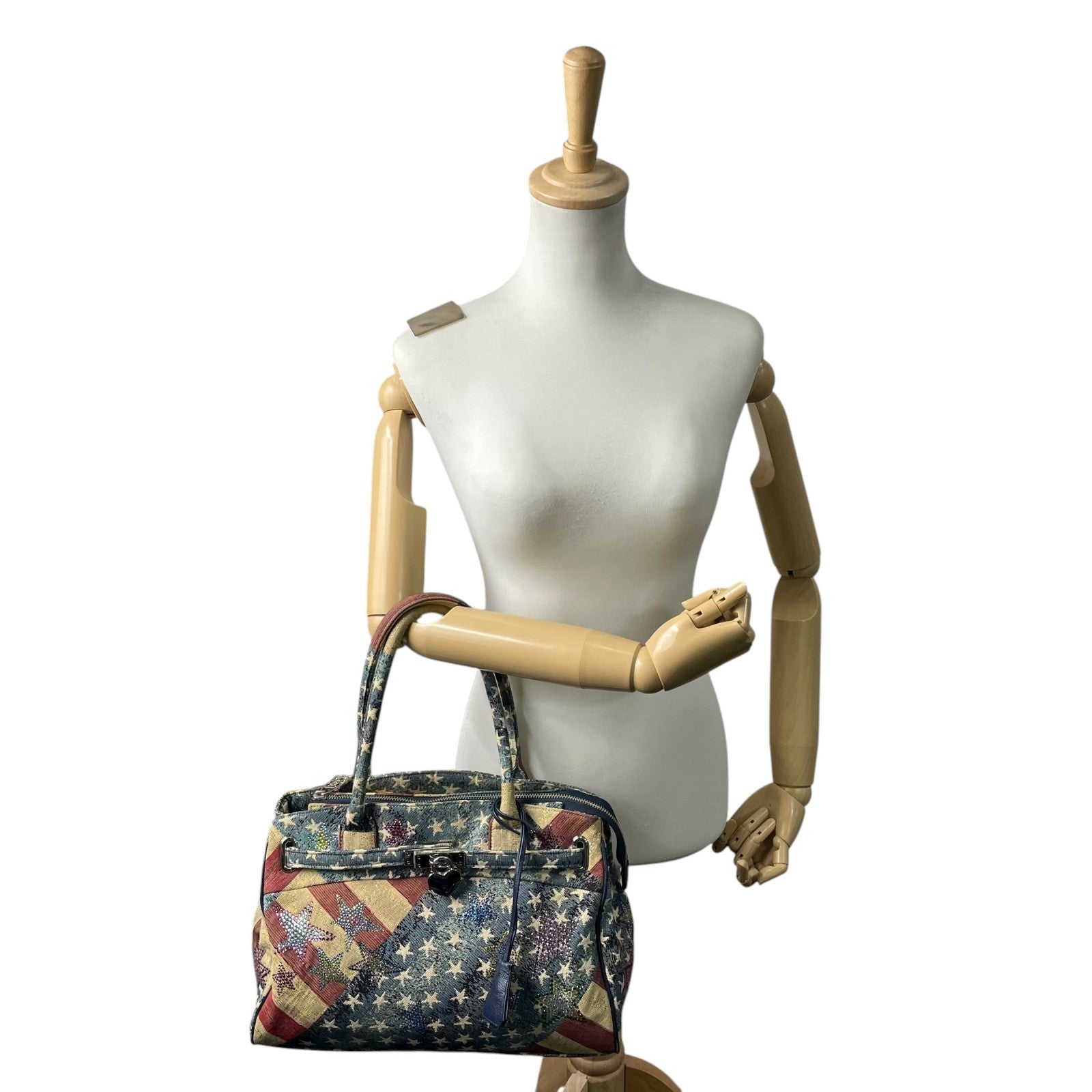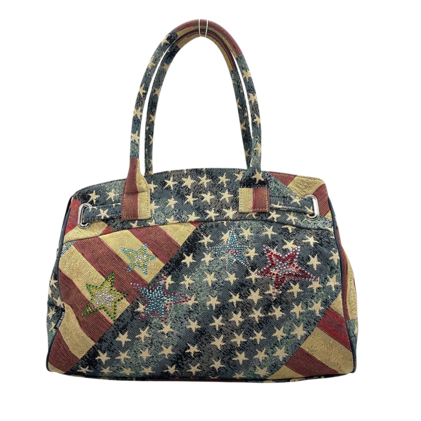 シンクビー Think Bee! ハンドバッグ トートバッグ アメリカ国旗 星柄 ラインストーン スパンコール マルチカラー デニム S90