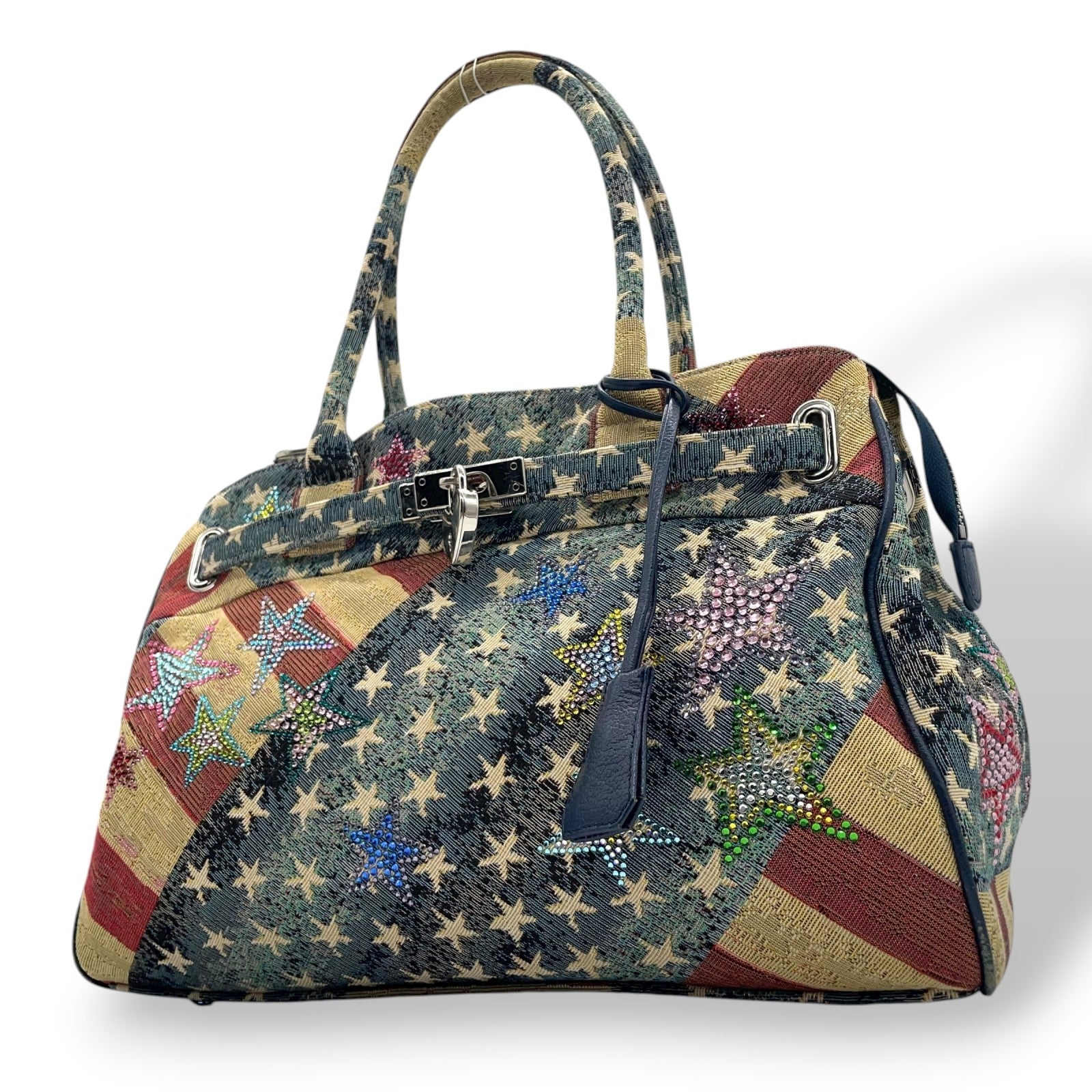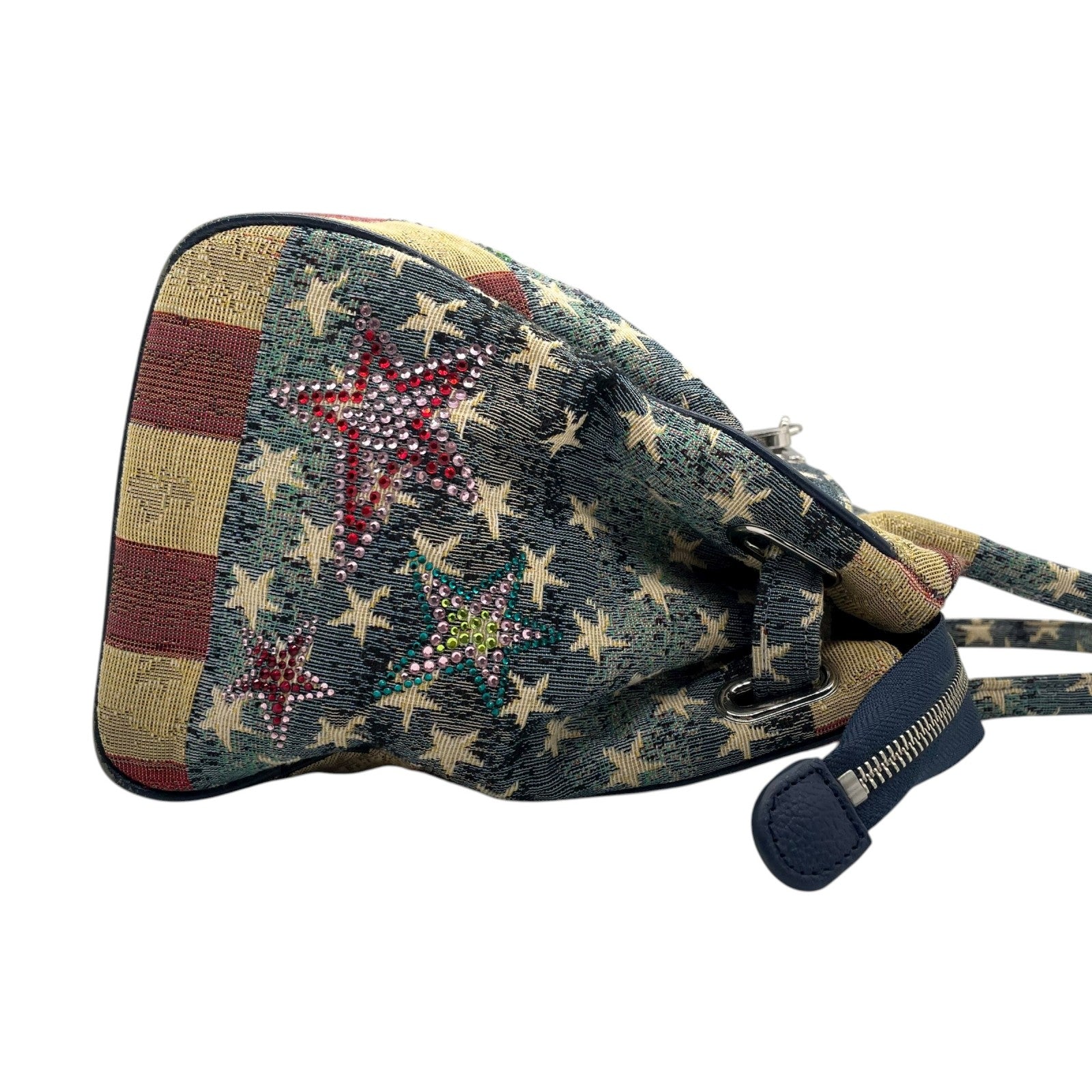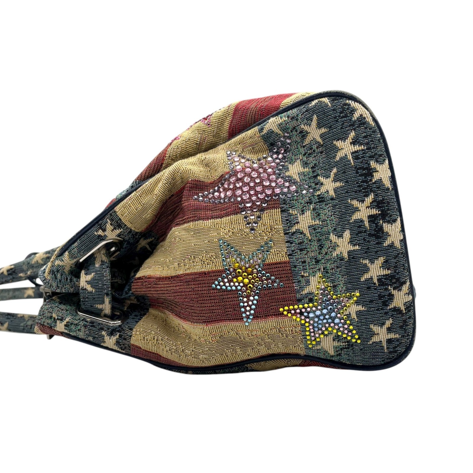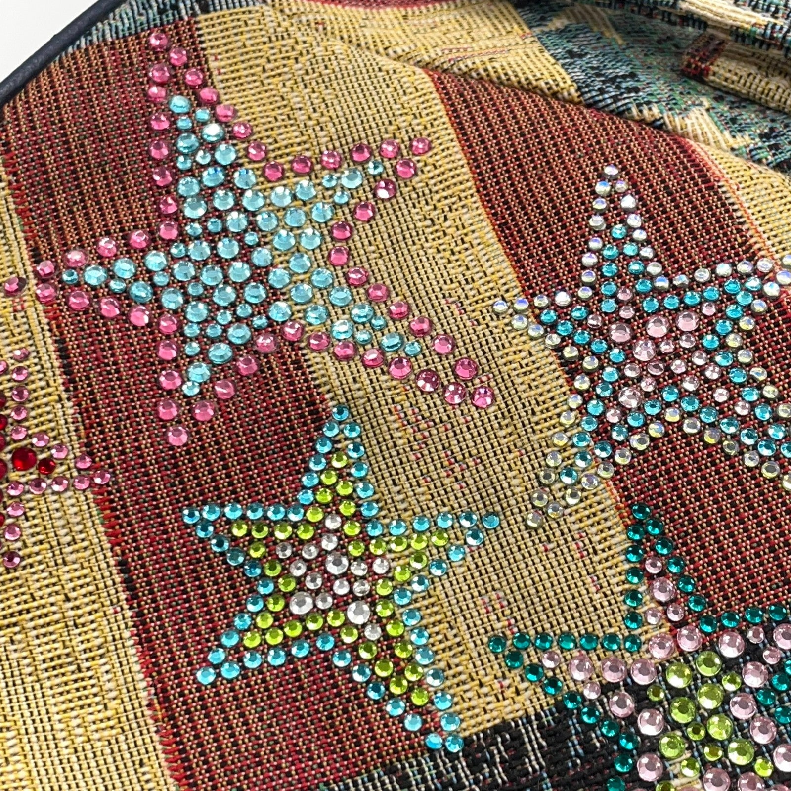 シンクビー Think Bee! ハンドバッグ トートバッグ アメリカ国旗 星柄 ラインストーン スパンコール マルチカラー デニム S90