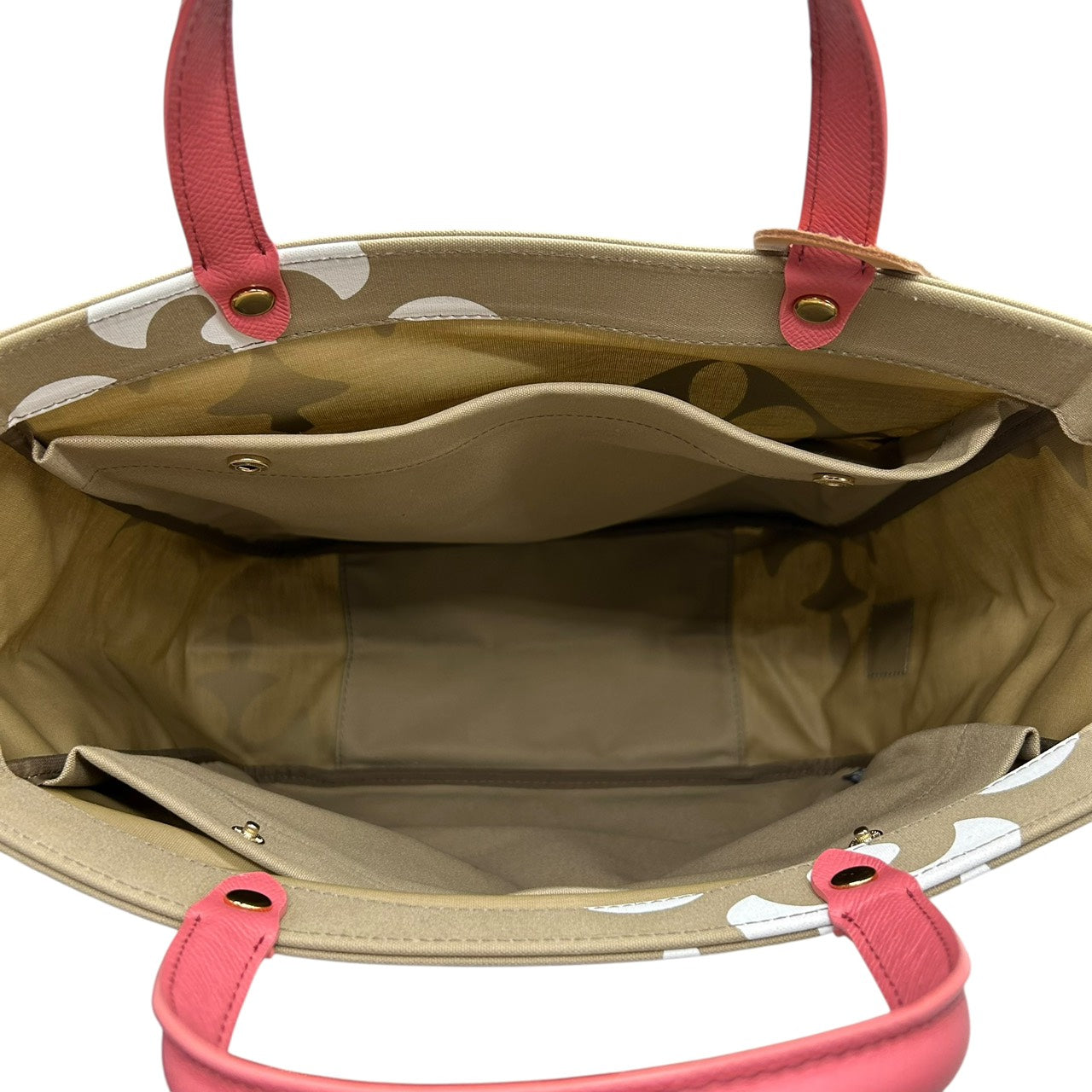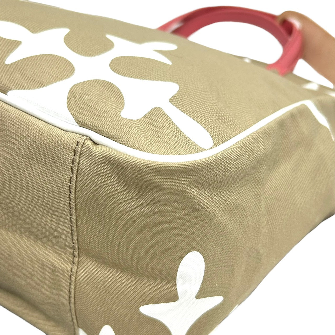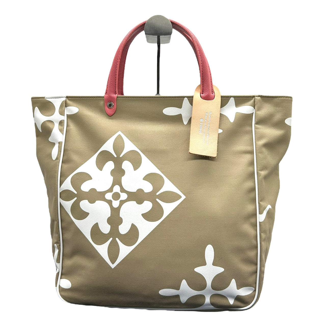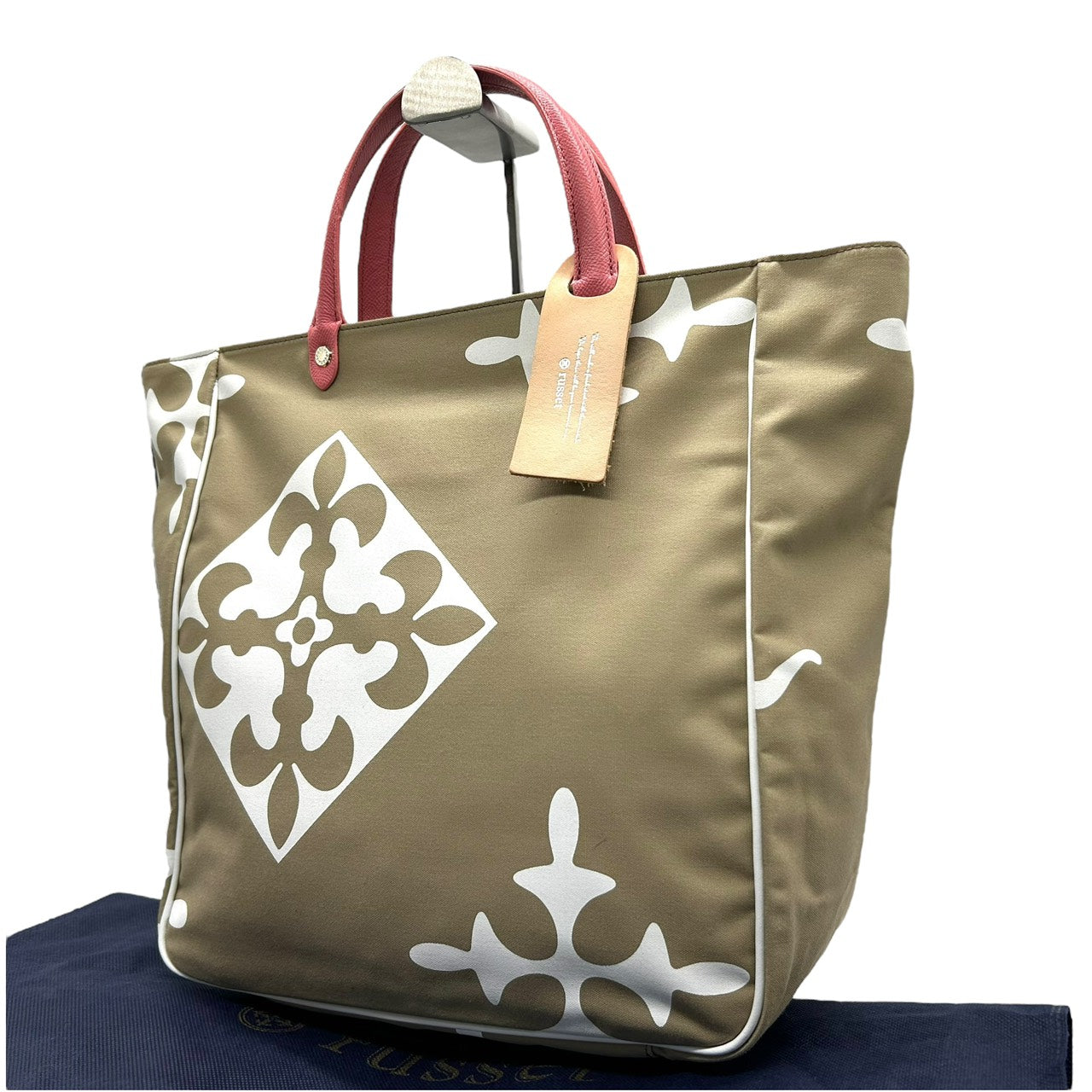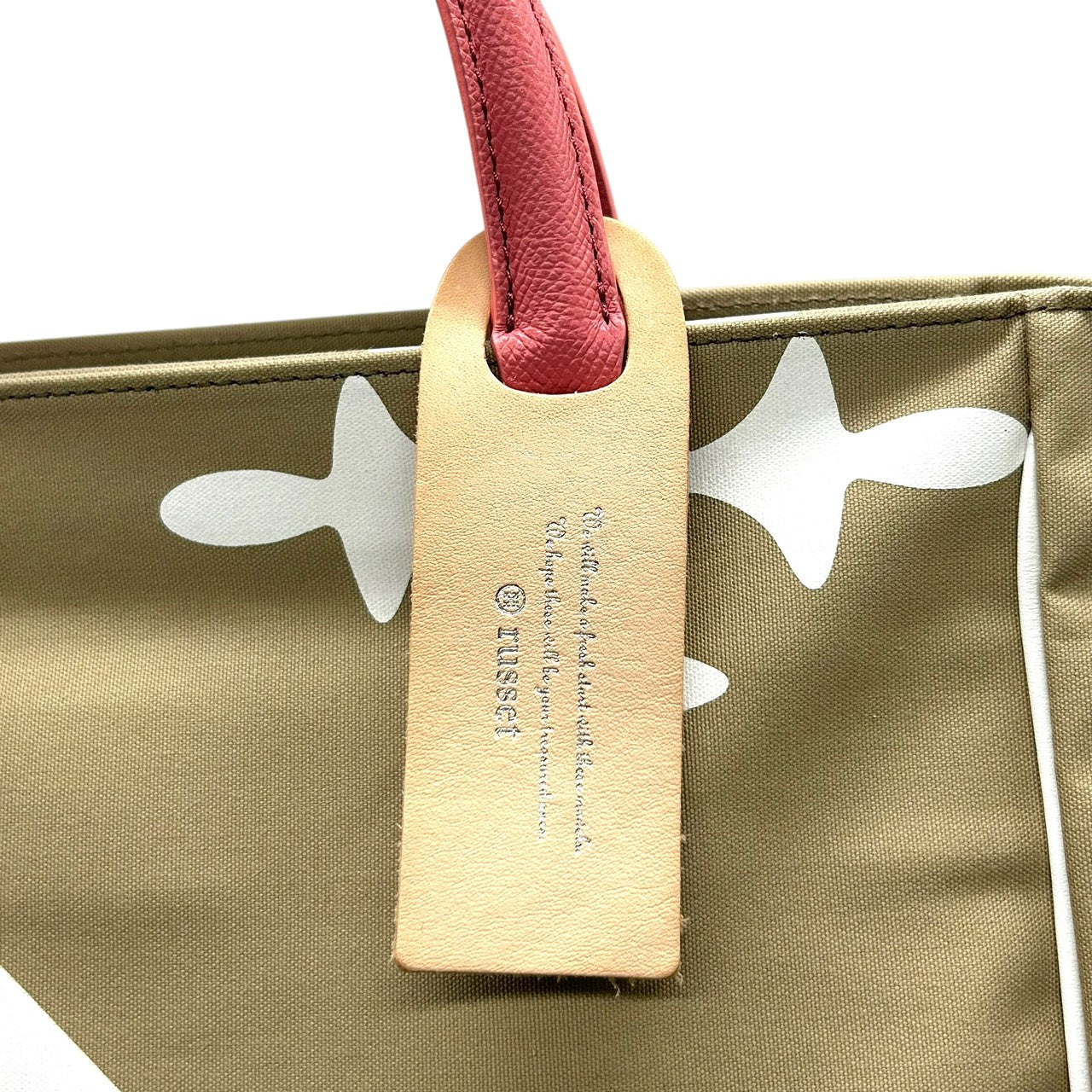 新品同様 ラシット russet トートバッグ ハンドバッグ ナイロン×レザー 白 ホワイト ベージュ ピンクハンドル A4収納可 軽量 上品 S26