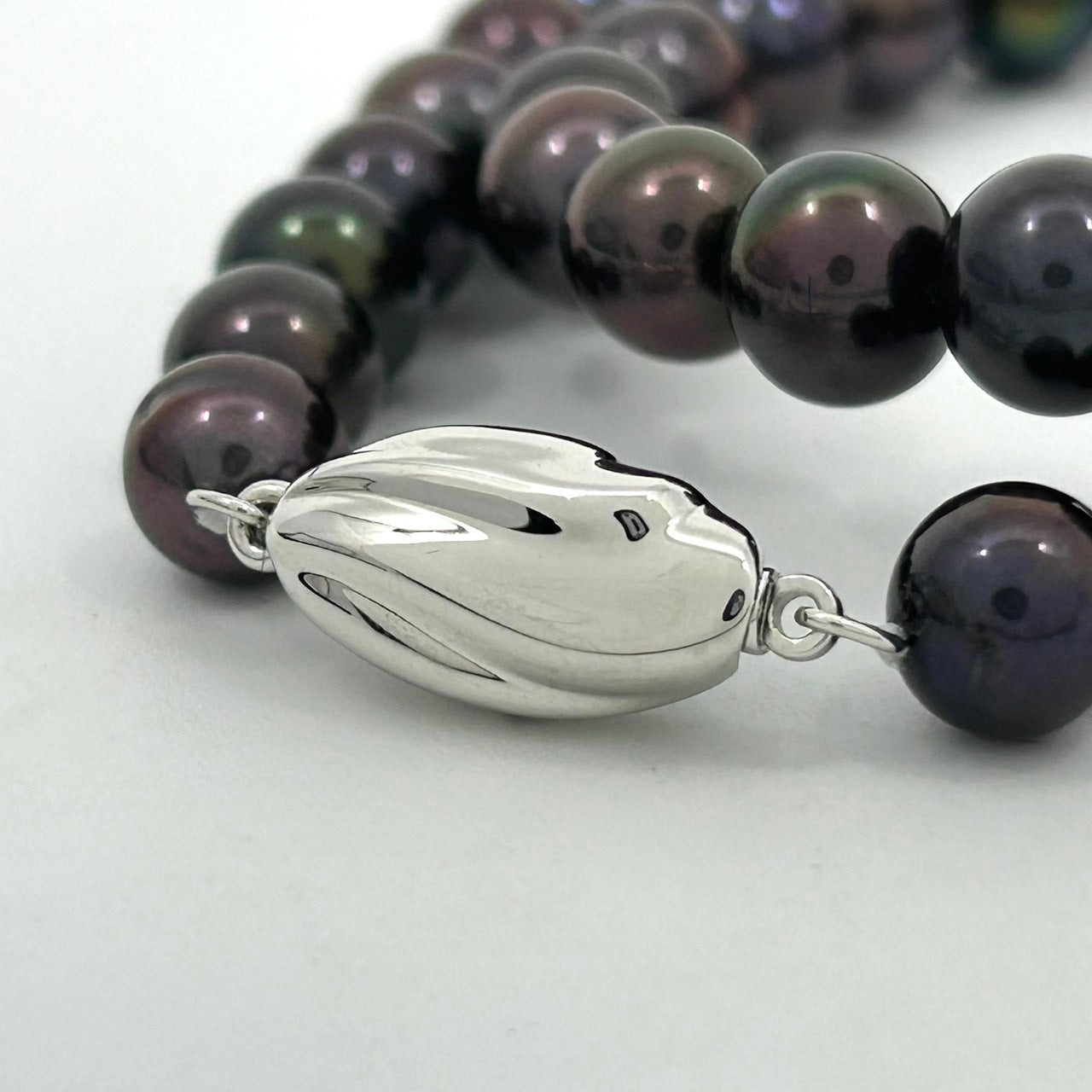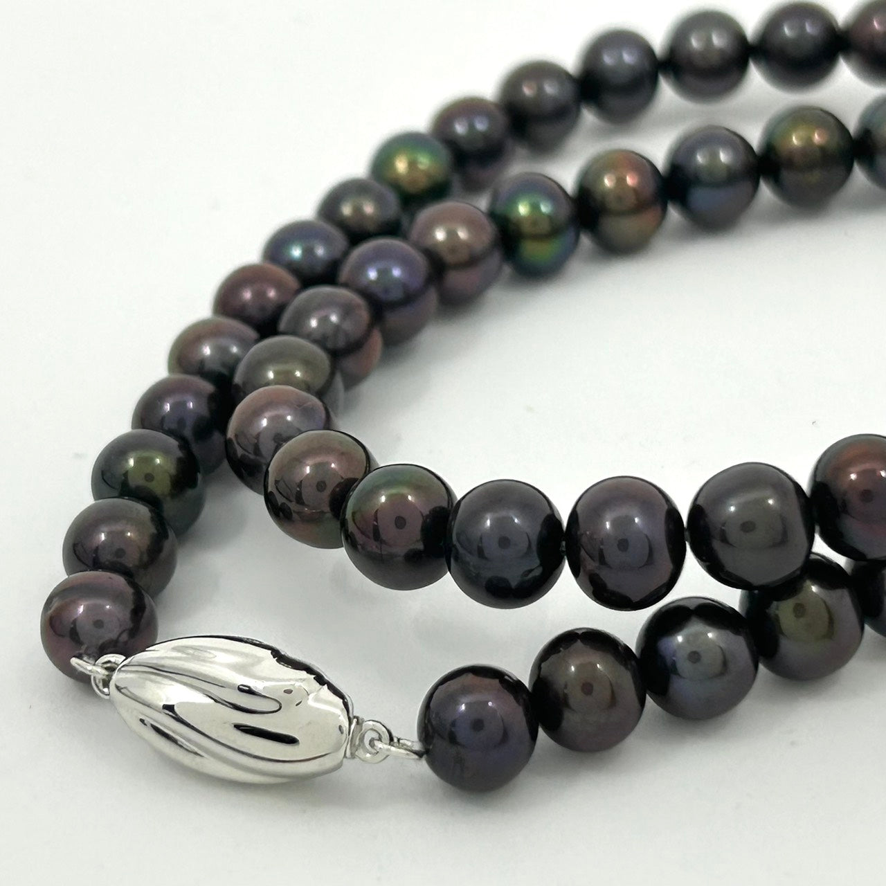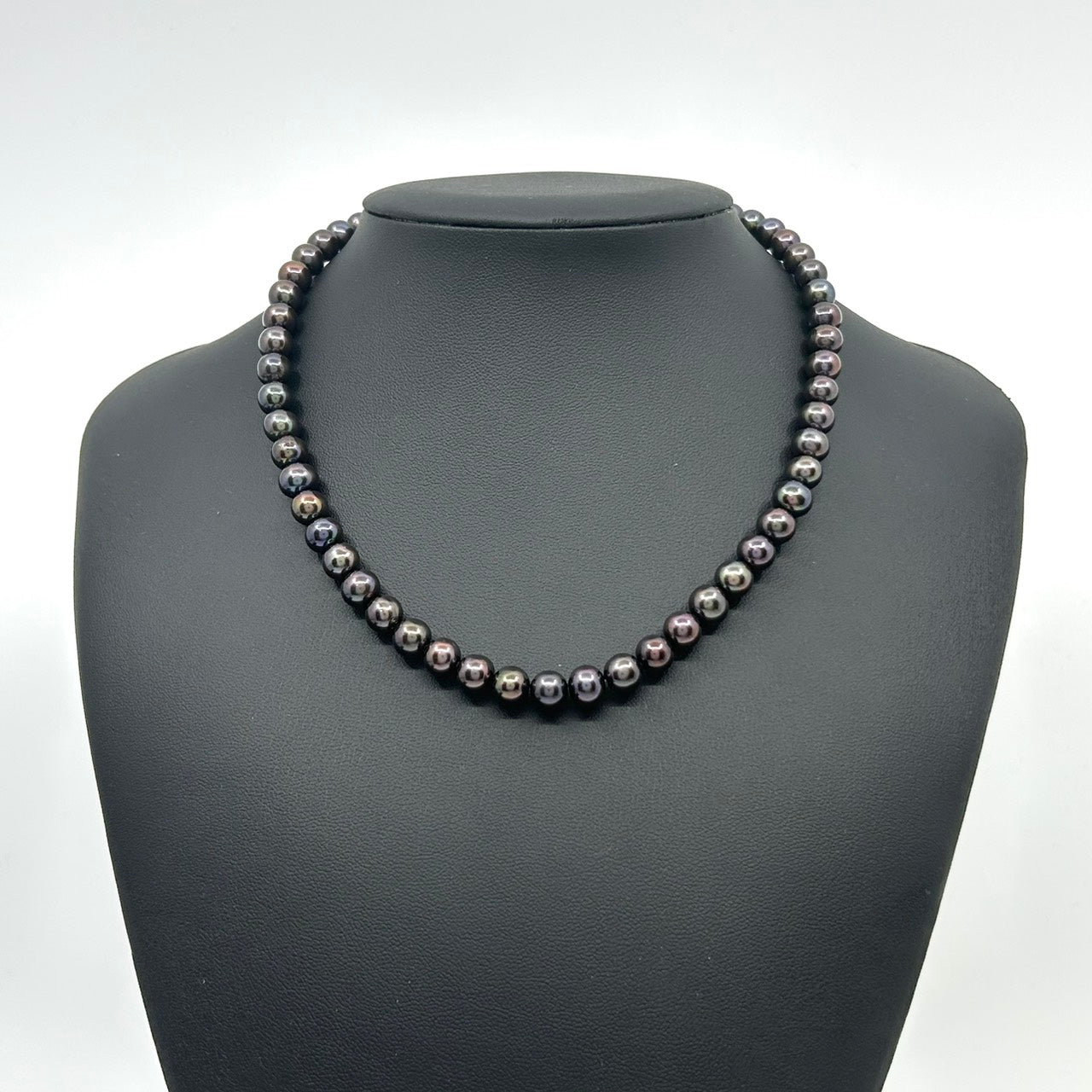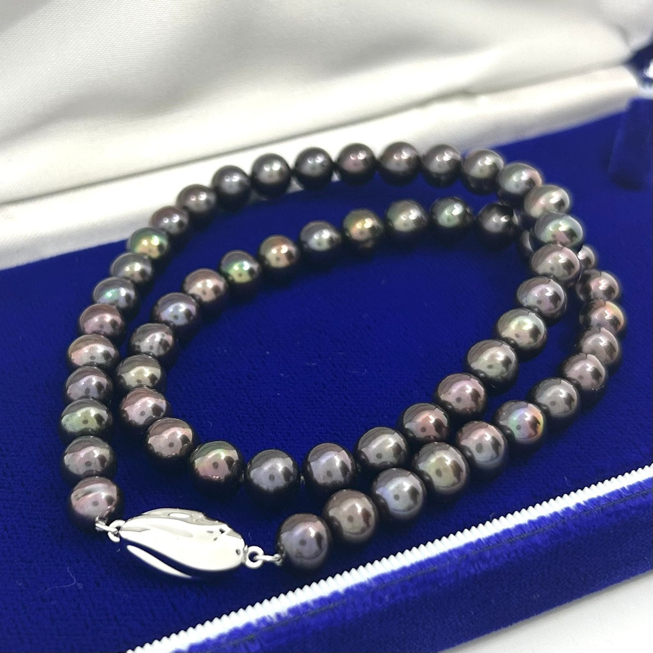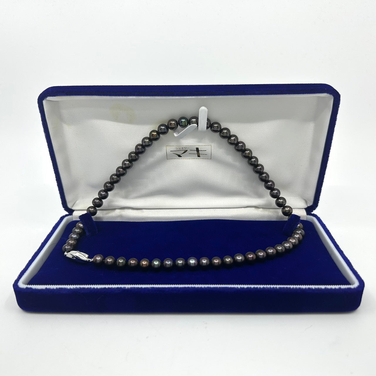 新品同様 ジュエリーマキ 黒蝶真珠 パール ネックレス シルバー金具 ブラック系 7mm珠 高級 本真珠 I10