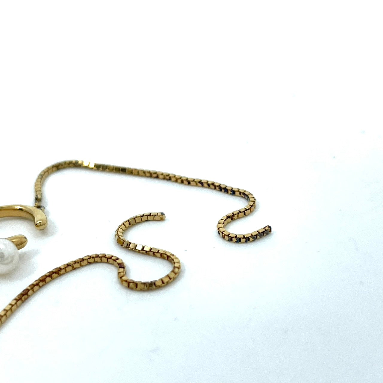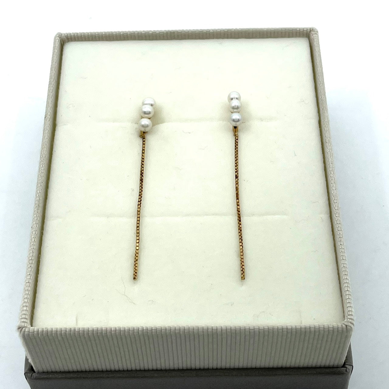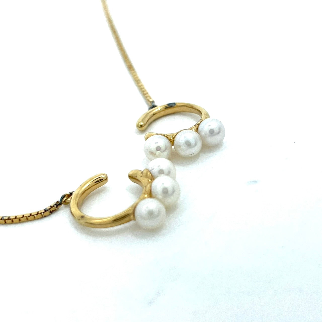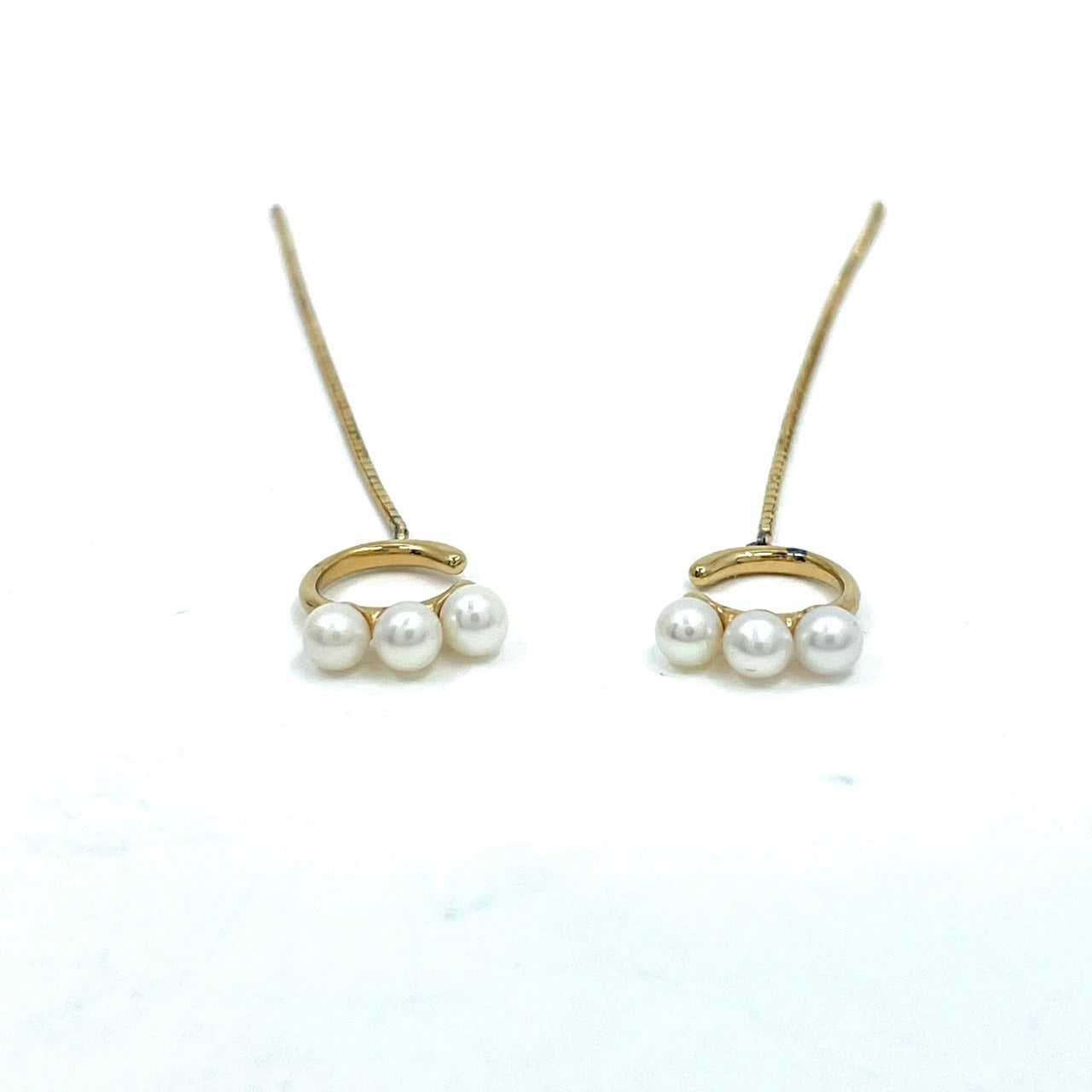 ete エテ イヤリング パール×ゴールドチェーン ロング パール 3連 上品 シンプル W6