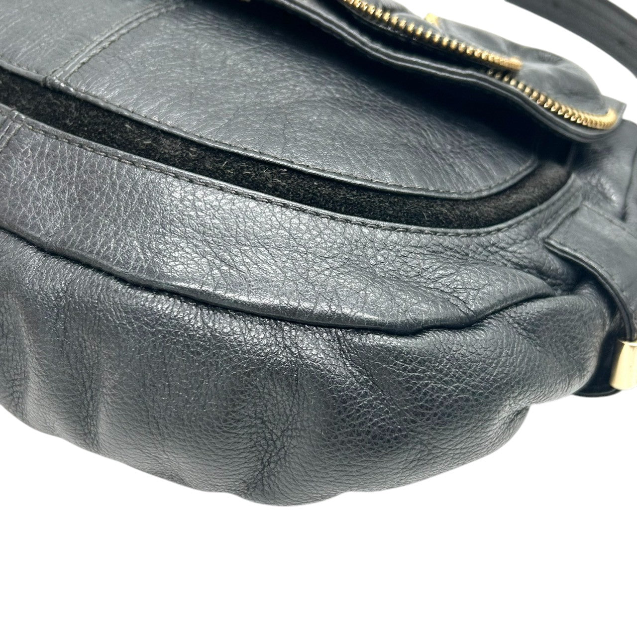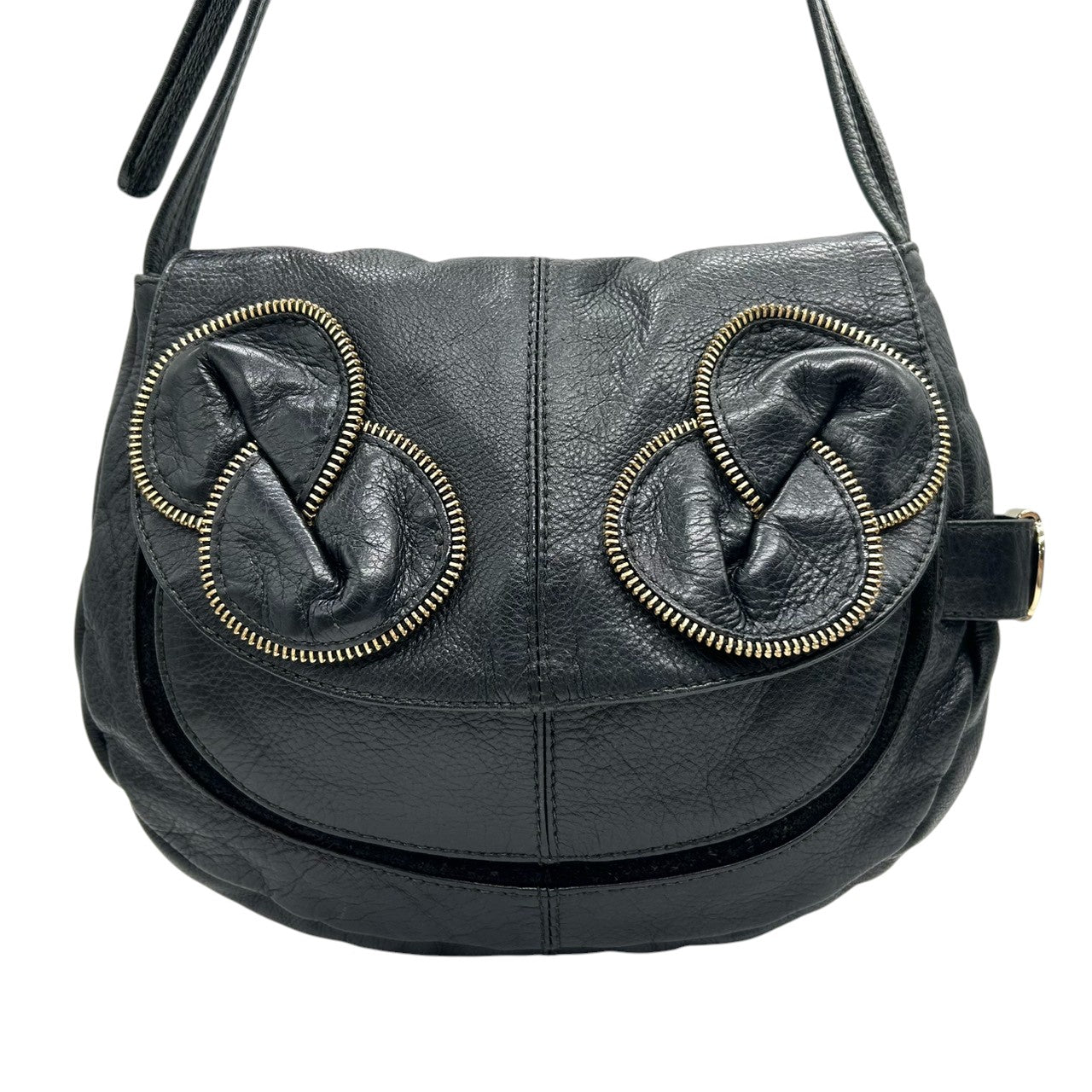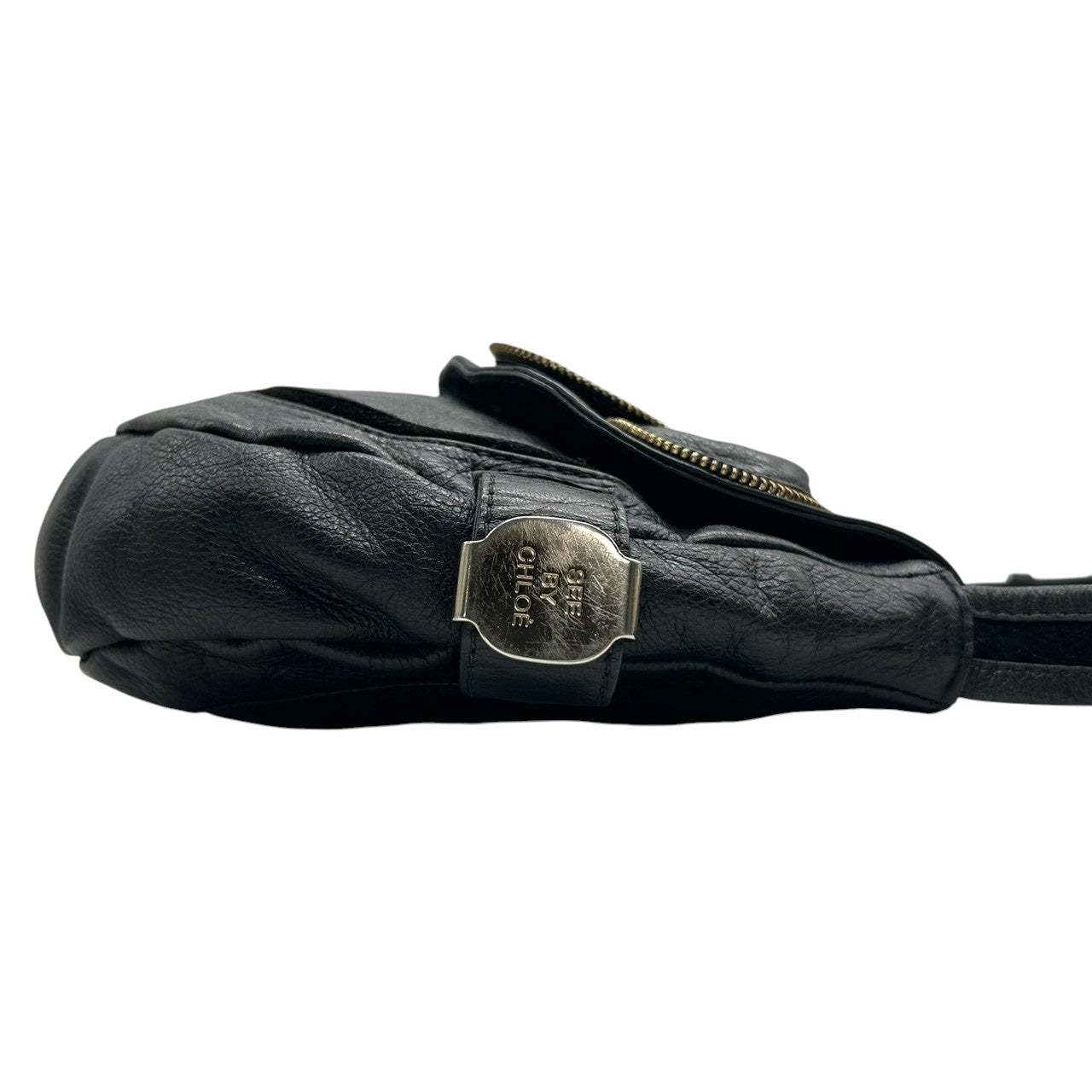 【SEE BY CHLOE】シーバイクロエ ショルダーバッグ クロスボディ 斜め掛け可 フラップ 本革 レザー ブラック 黒 ゴールドジッパーデザイン レディース カジュアル モード エレガント 人気モデル クリーニング済み s54