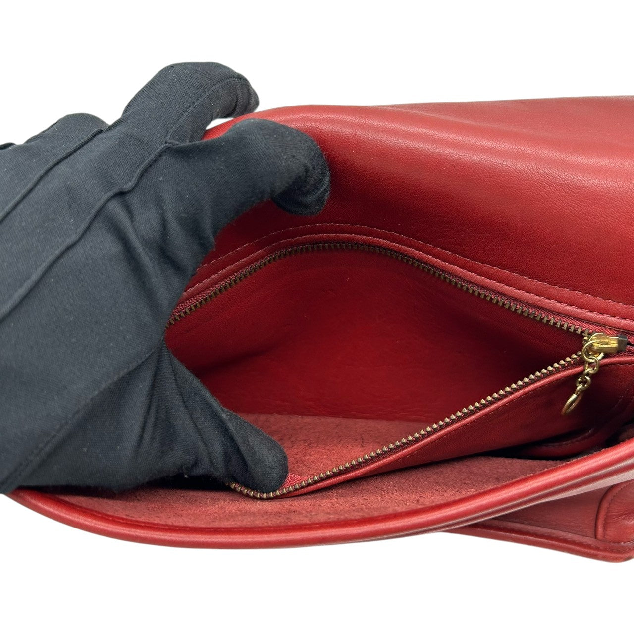 【希少/USA製】オールドコーチ COACH ショルダーバッグ クロスボディ 斜め掛け可 フラップ グラブタンレザー 本革 レッド 赤 レディース ヴィンテージ クラシックデザイン 人気モデル クリーニング済み s51