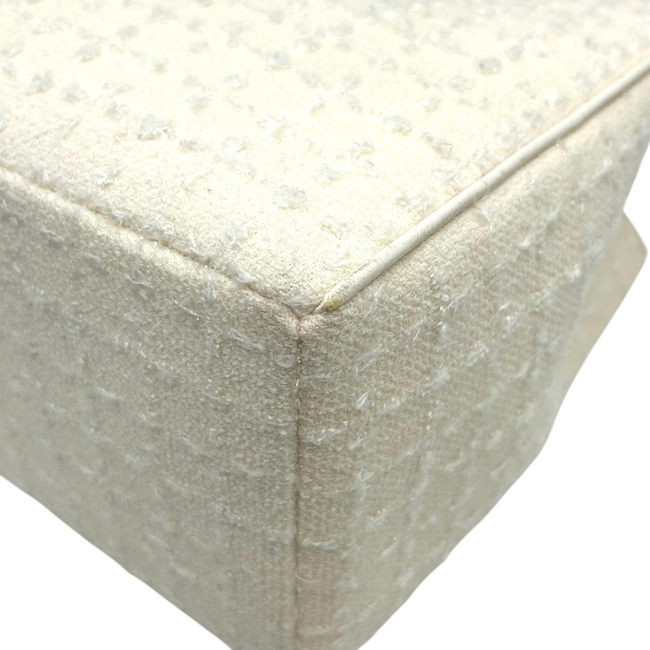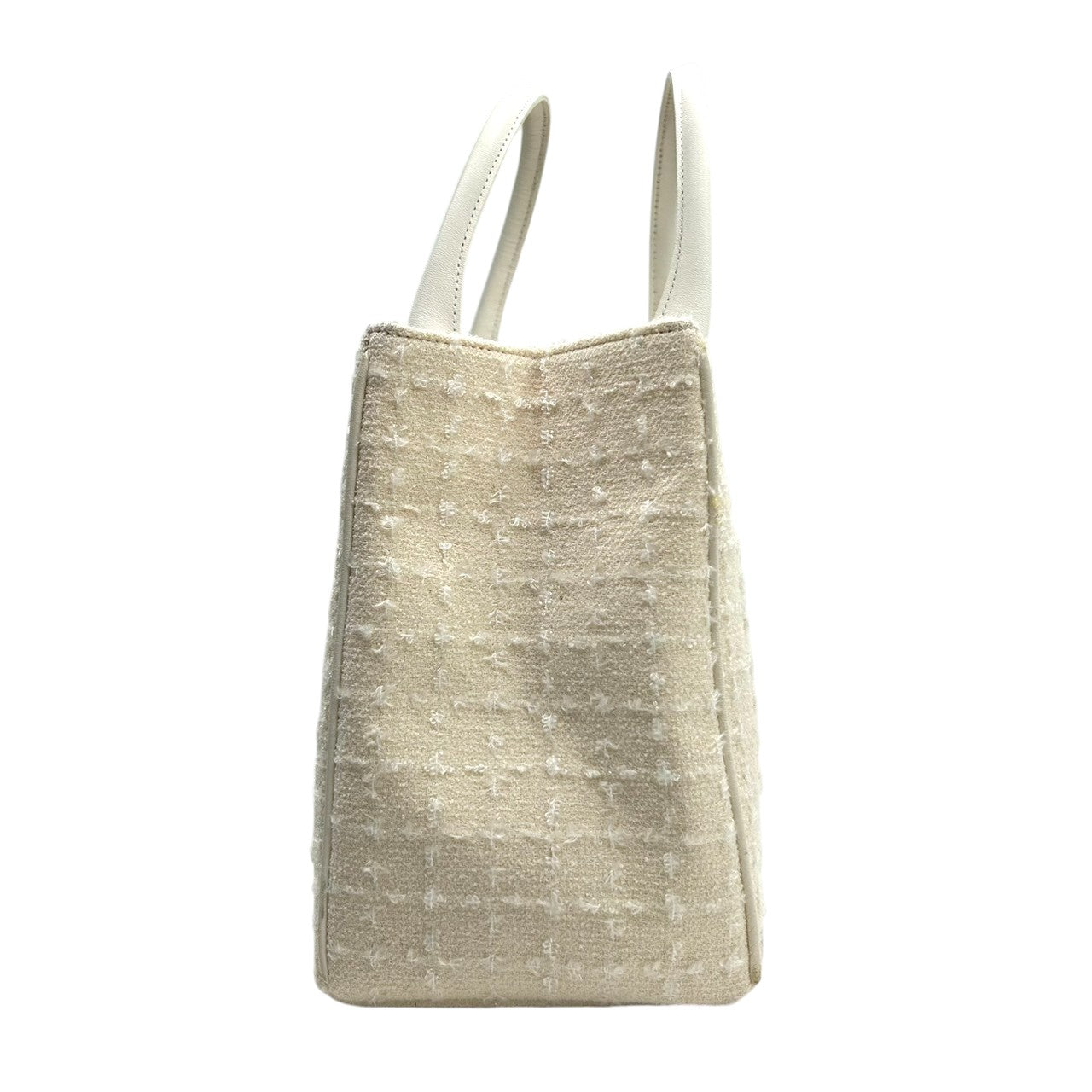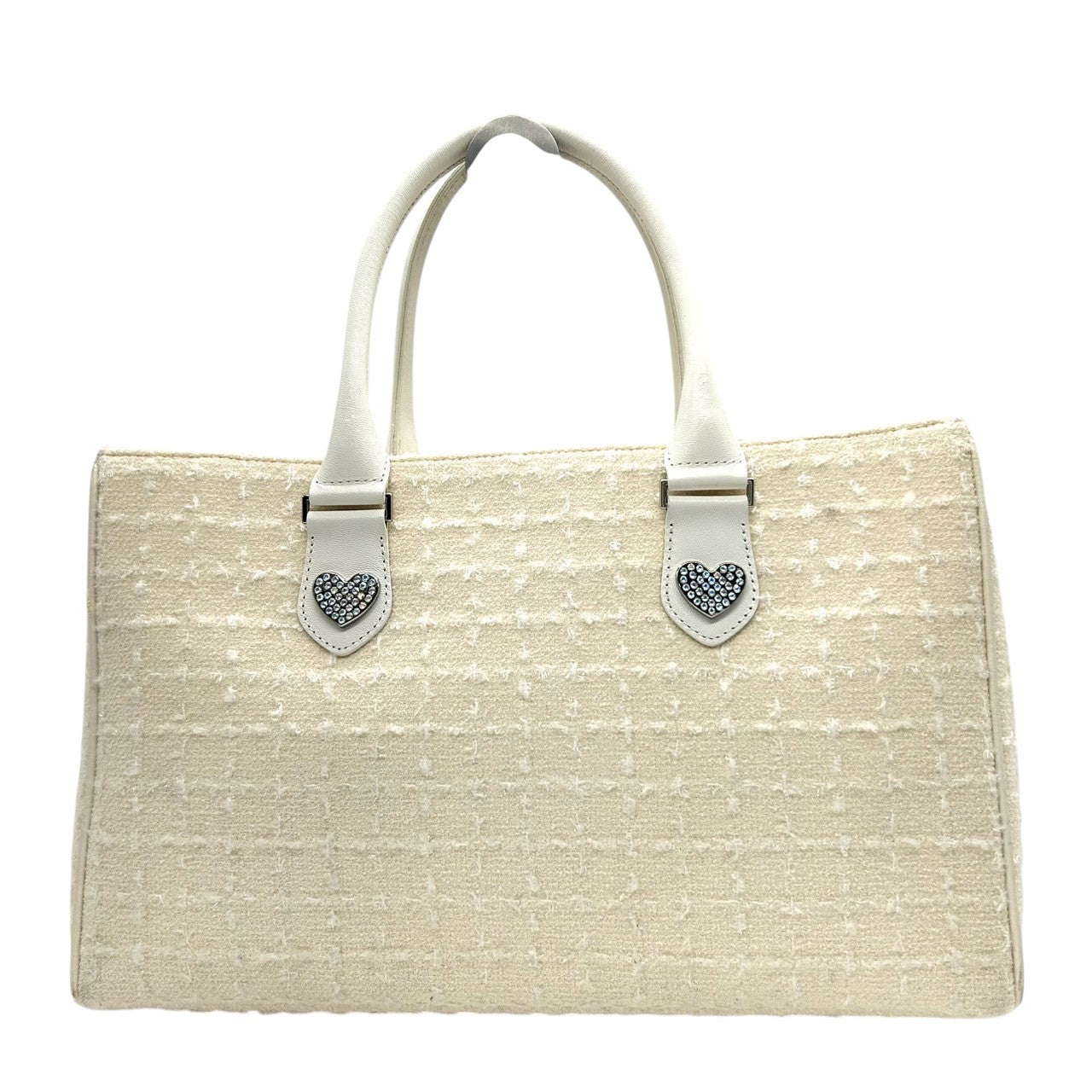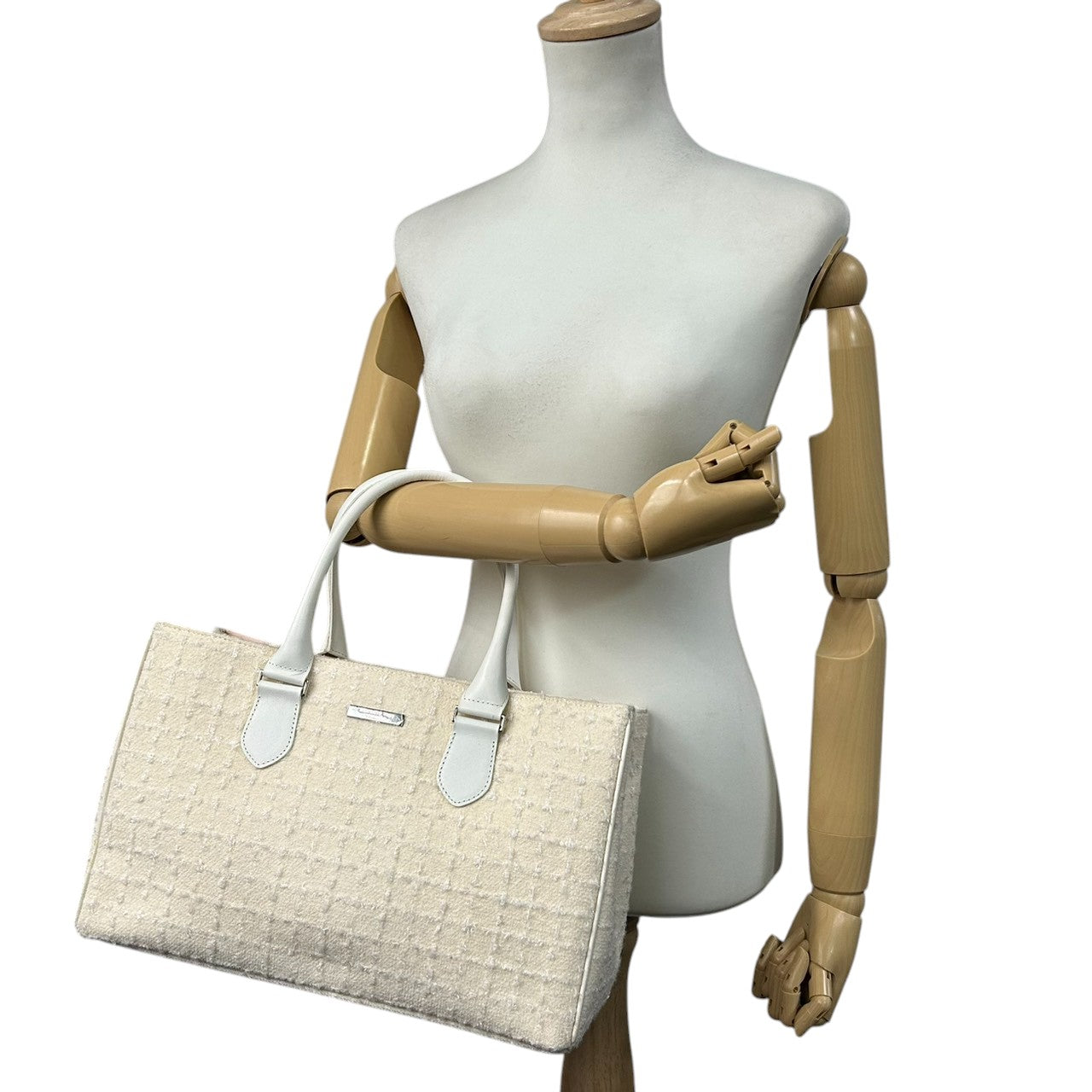 【美品】Samantha Vega サマンサベガ ハンドバッグ トートバッグ ワンショルダー 自立可 A4収納可 ツイード キャンバス レザー ホワイト アイボリー系 レディース フェミニン エレガント 上品 通勤通学 人気モデル クリーニング済み s33