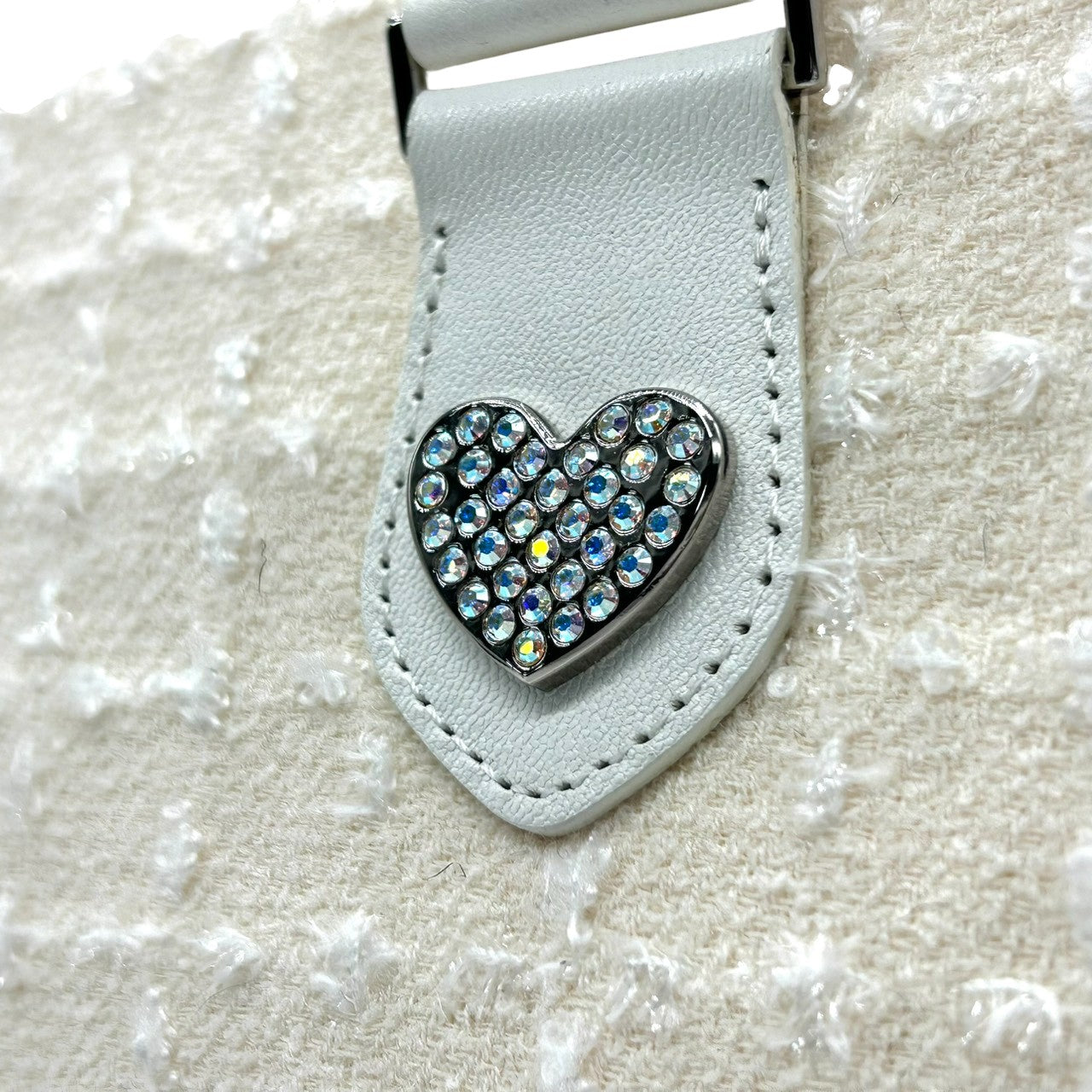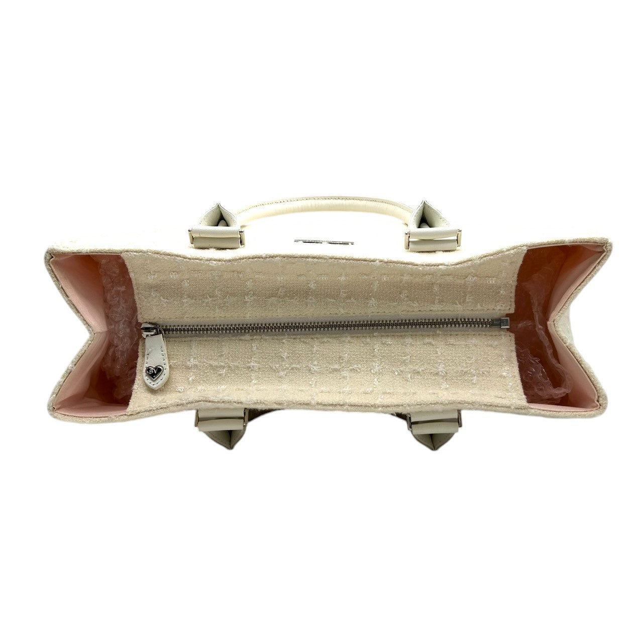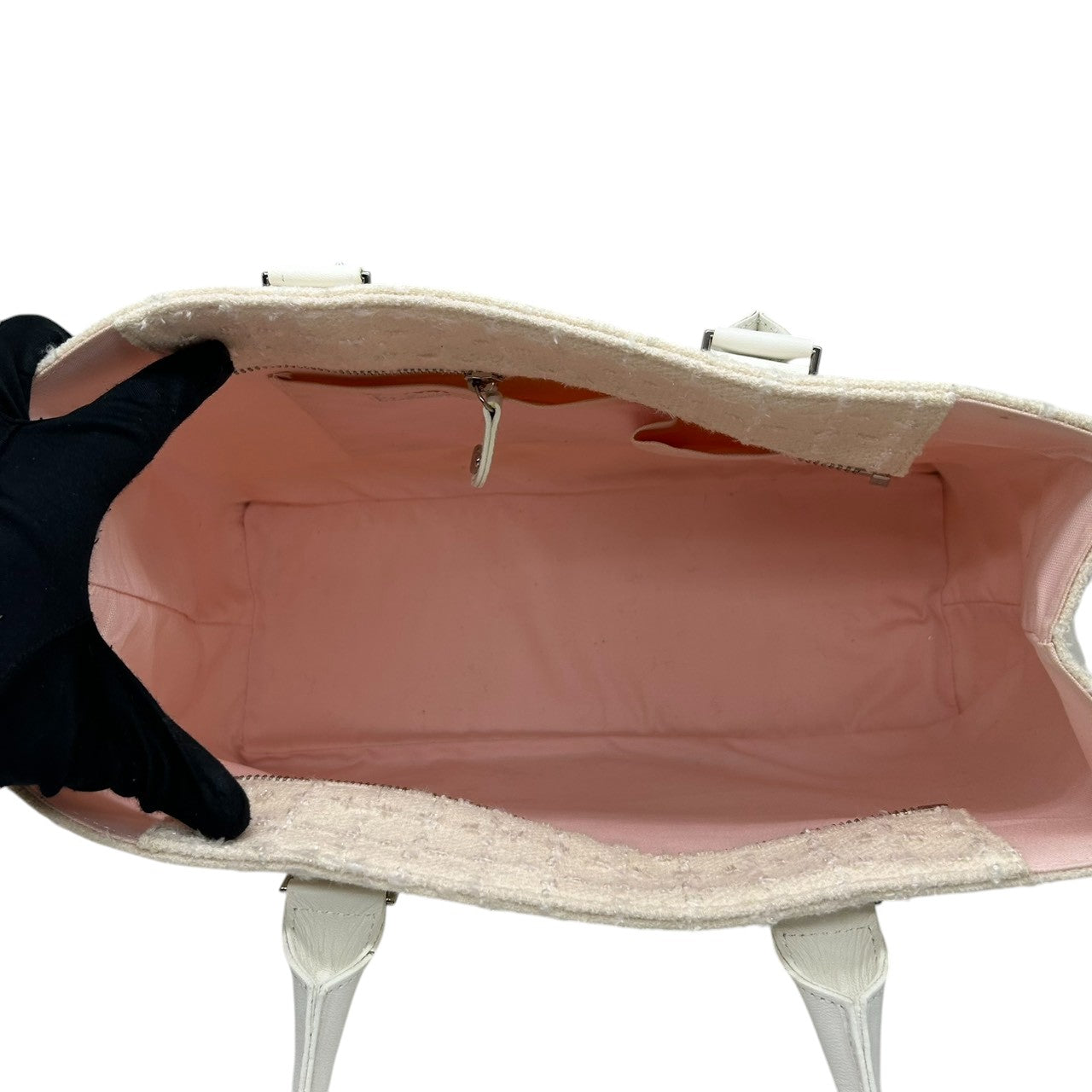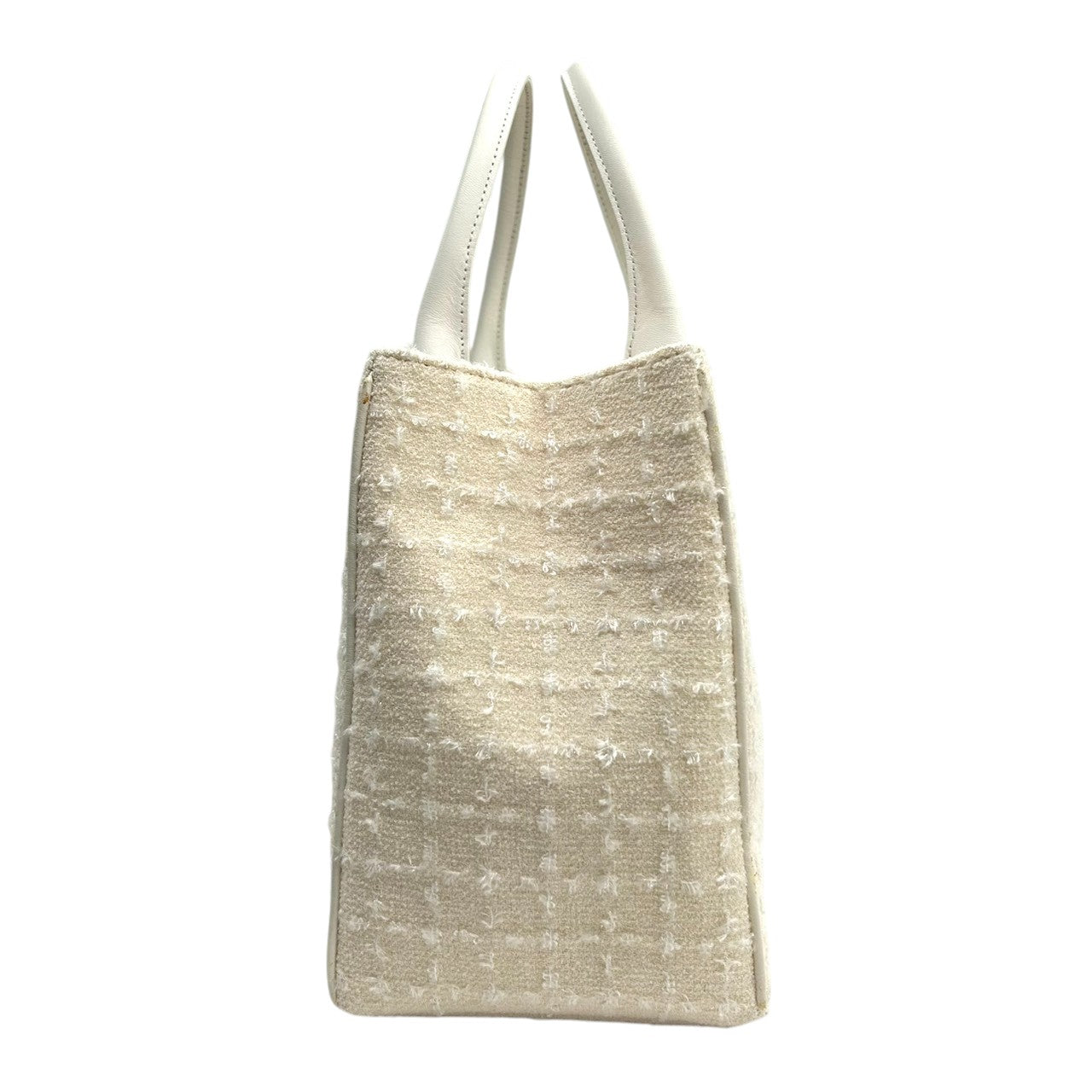 【美品】Samantha Vega サマンサベガ ハンドバッグ トートバッグ ワンショルダー 自立可 A4収納可 ツイード キャンバス レザー ホワイト アイボリー系 レディース フェミニン エレガント 上品 通勤通学 人気モデル クリーニング済み s33