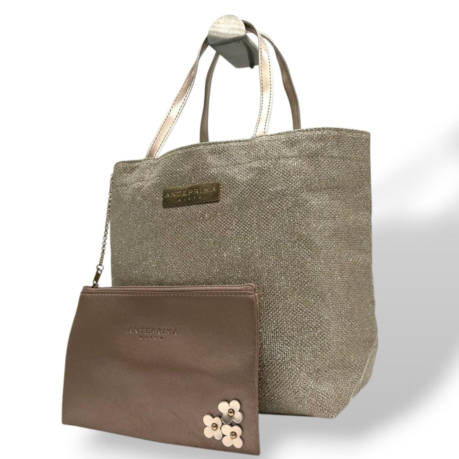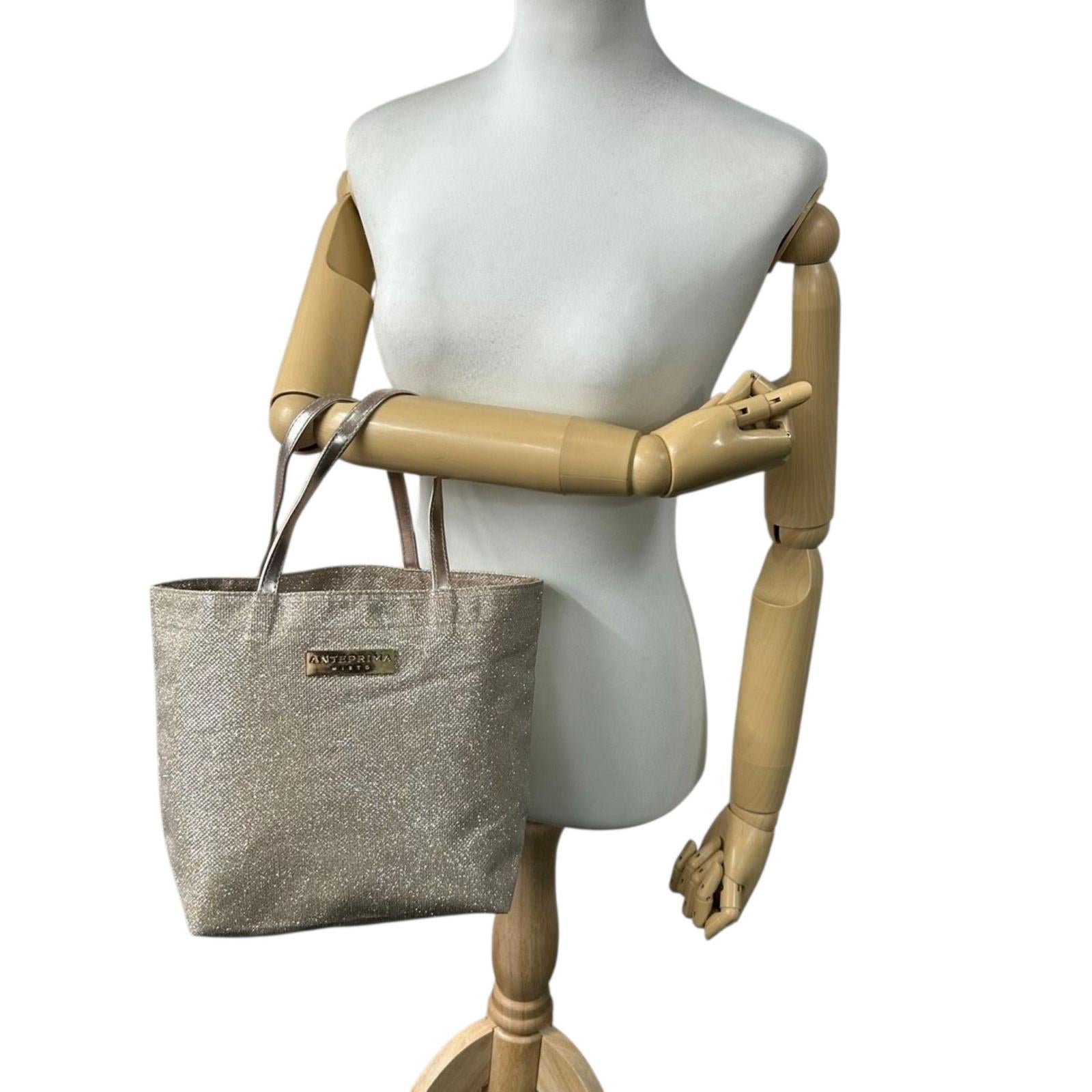 美品 アンテプリマミスト トートバッグ ハンドバッグ ラメ グリッター ロゴプレート キャンバス ゴールド シャンパンゴールド ポーチ付き レディース エレガント フェミニン お出かけ おしゃれ クリーニング済み U9
