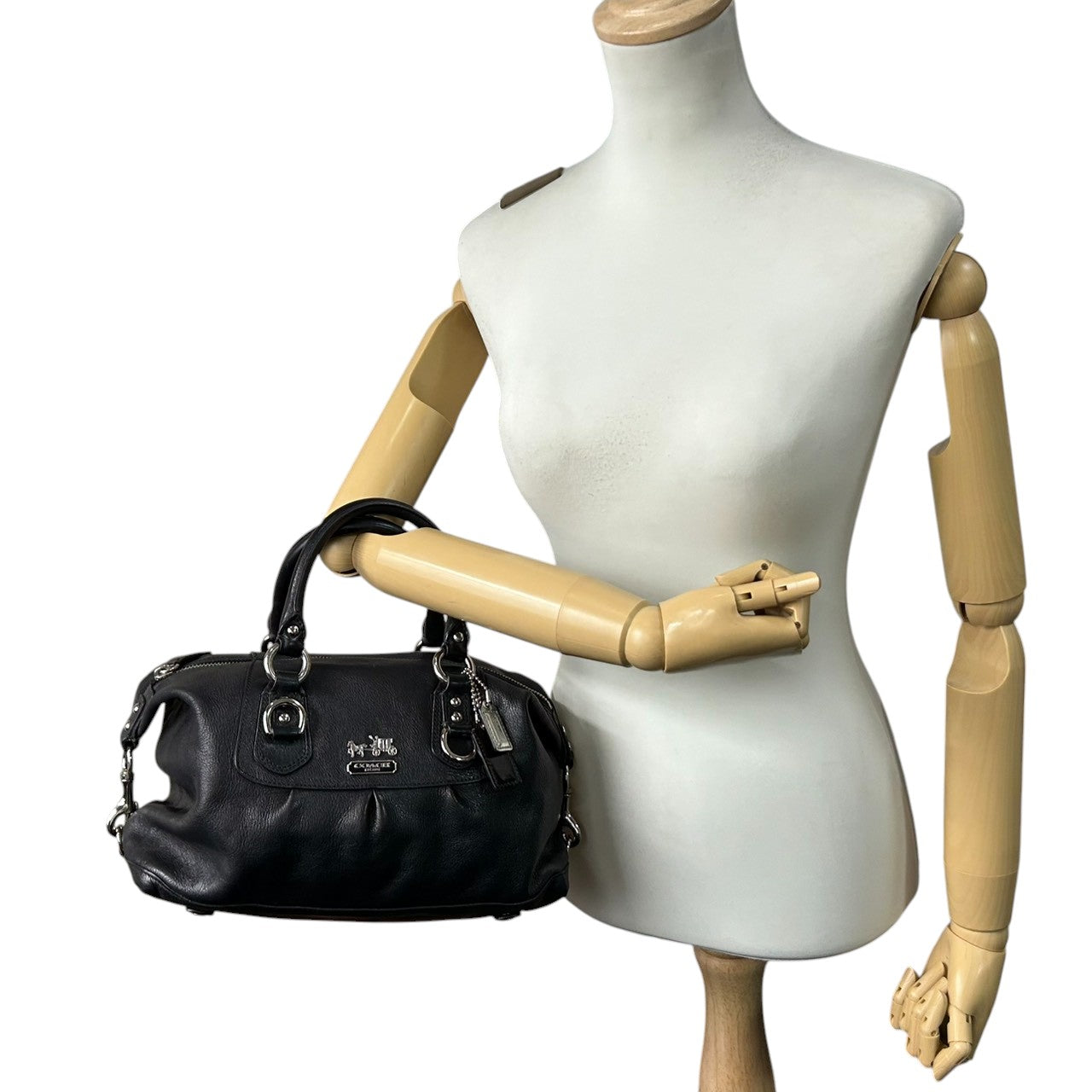 【美品/保存袋付き】COACH コーチ マディソン 2WAY ハンドバッグ ショルダーバッグ 12937 サッチェルバッグ 自立可 本革 ペブルドレザー ブラック 黒 ギャザー ホースアンドキャリッジロゴ レディース エレガント クリーニング済み s86