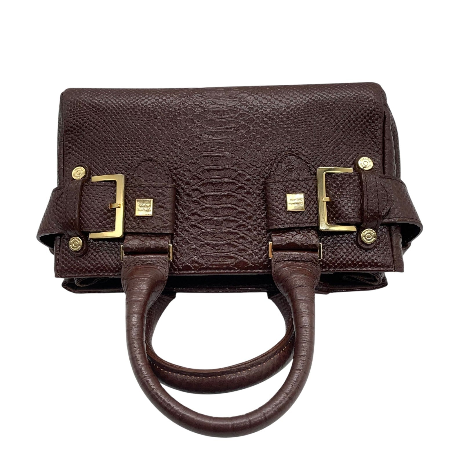 サマンサタバサ Samantha Thavasa 型押し レザー ハンドバッグ ブラウン 茶色 金金具 ゴールド金具 S51