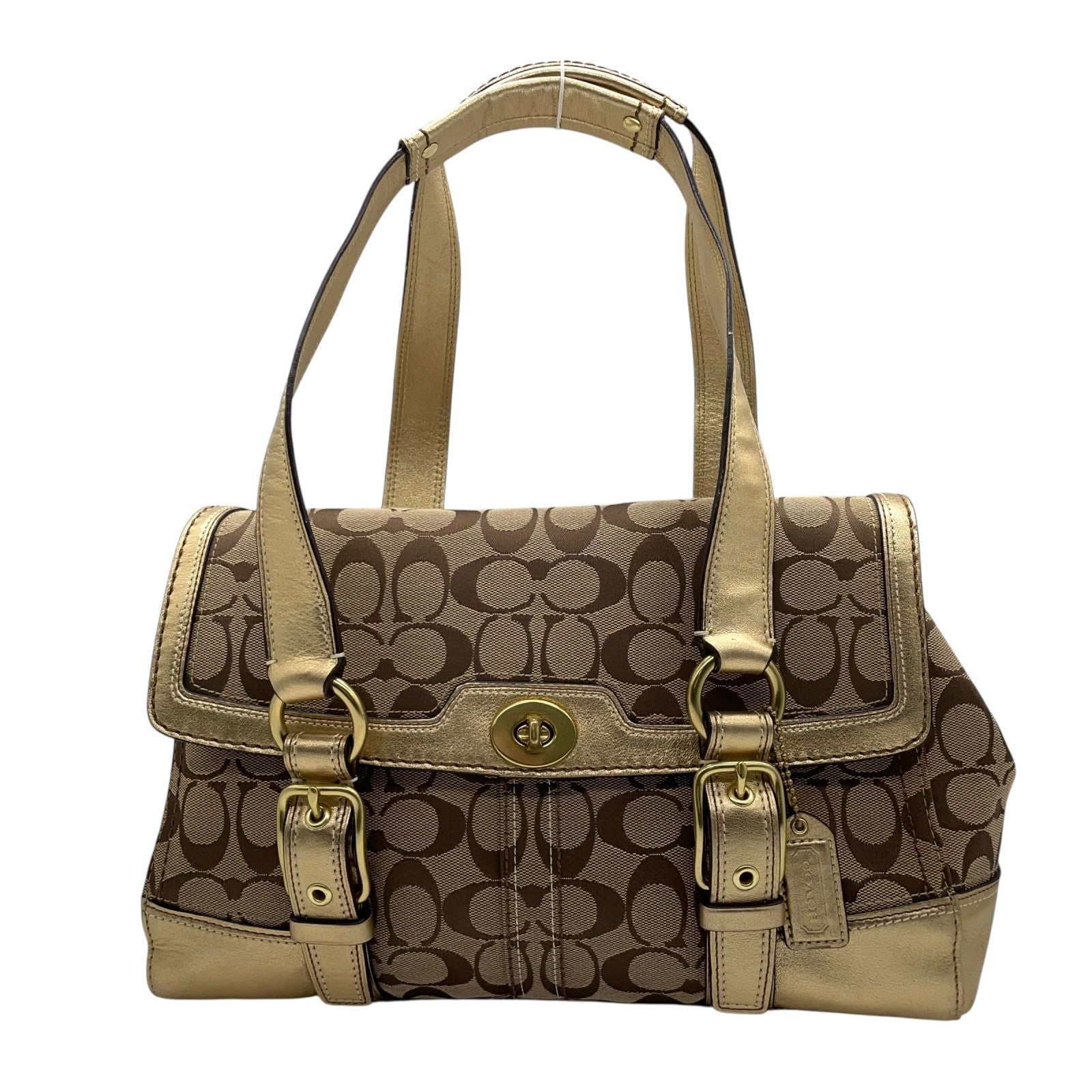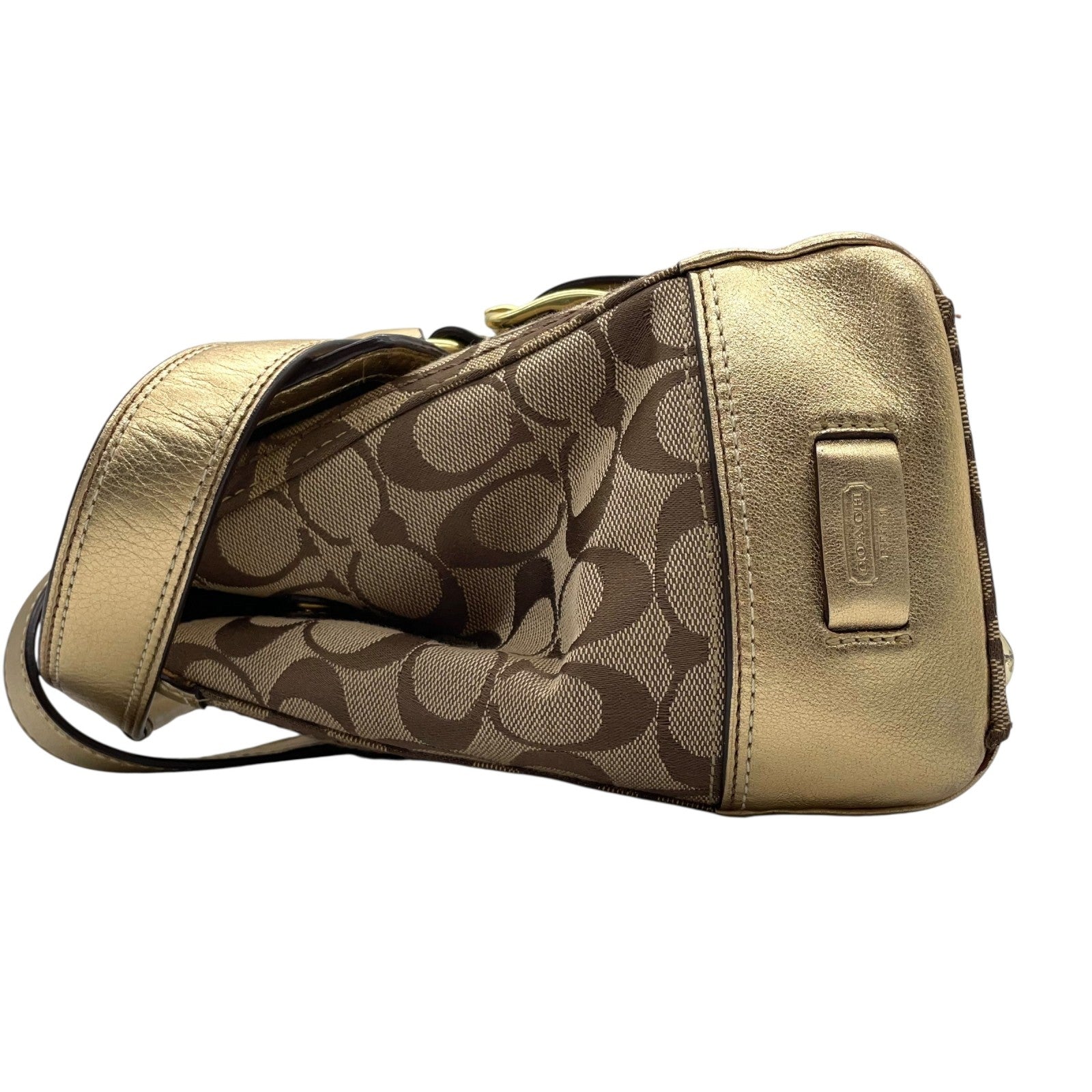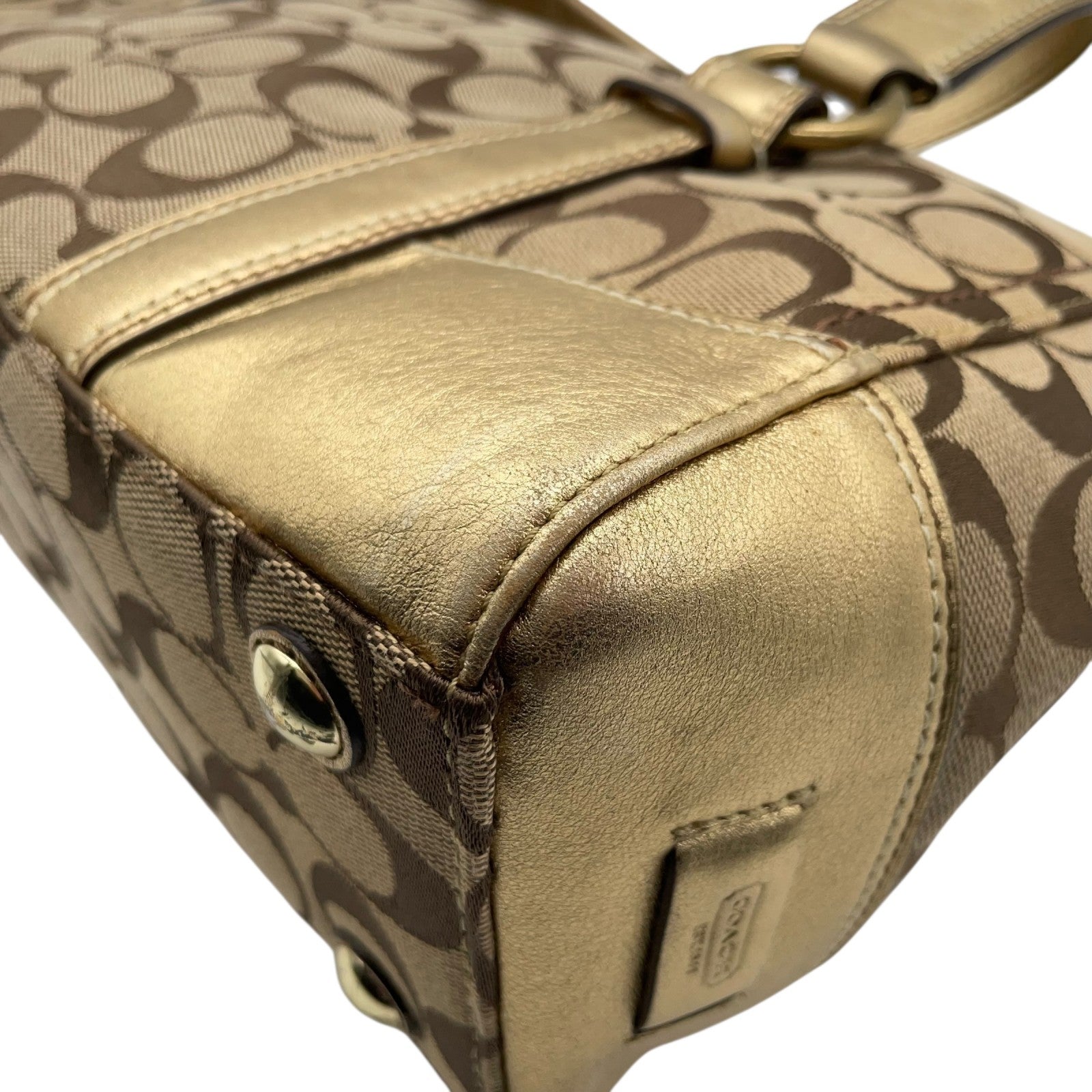 コーチ COACH シグネチャー キャンバス×レザー ハンドバッグ 金金具 ゴールド金具 トートバッグ 美品 S51