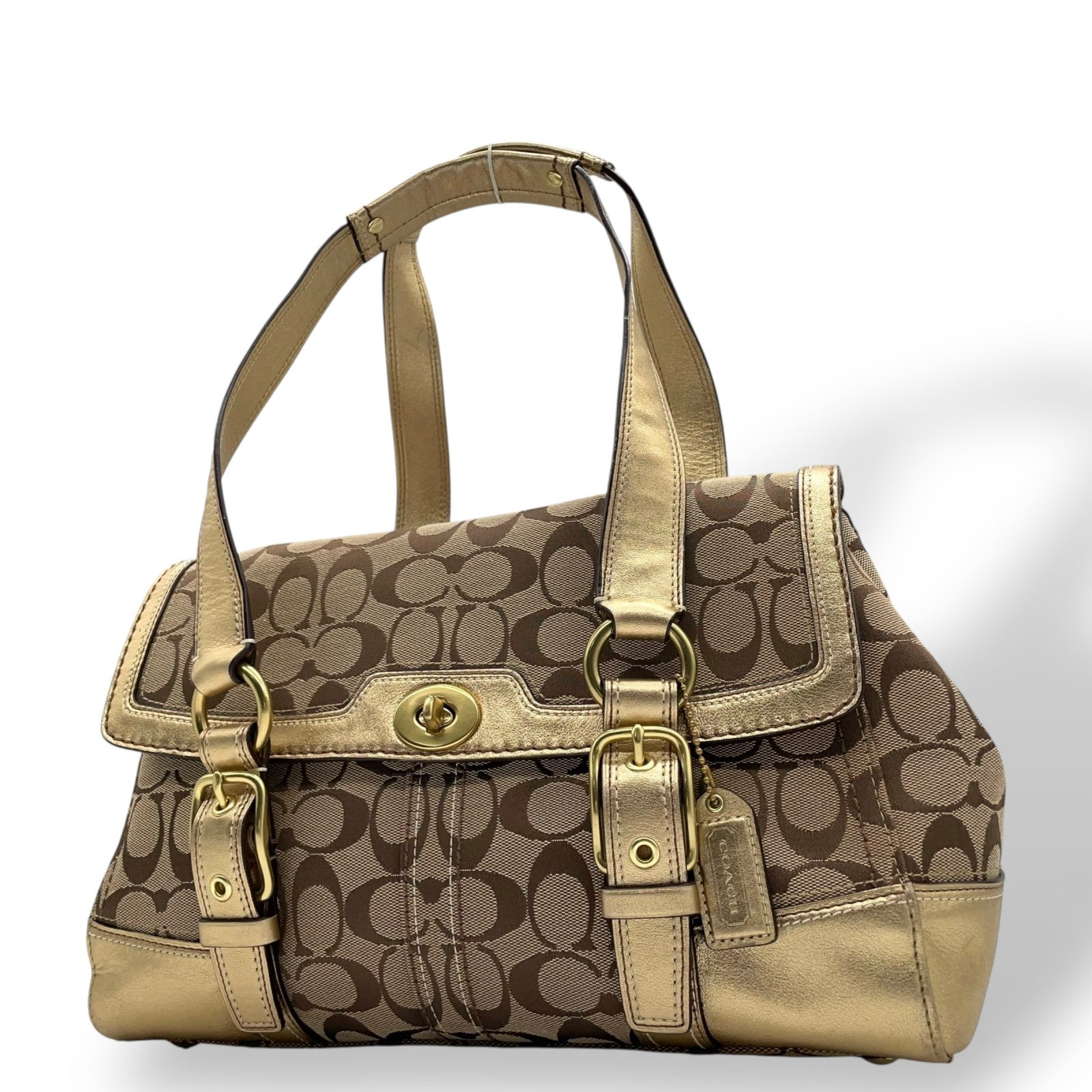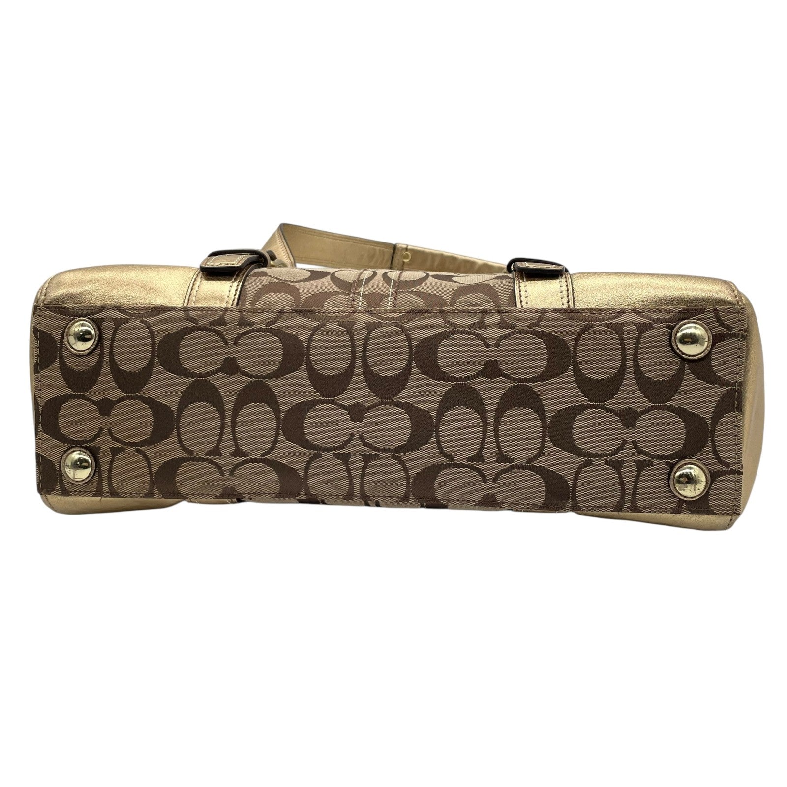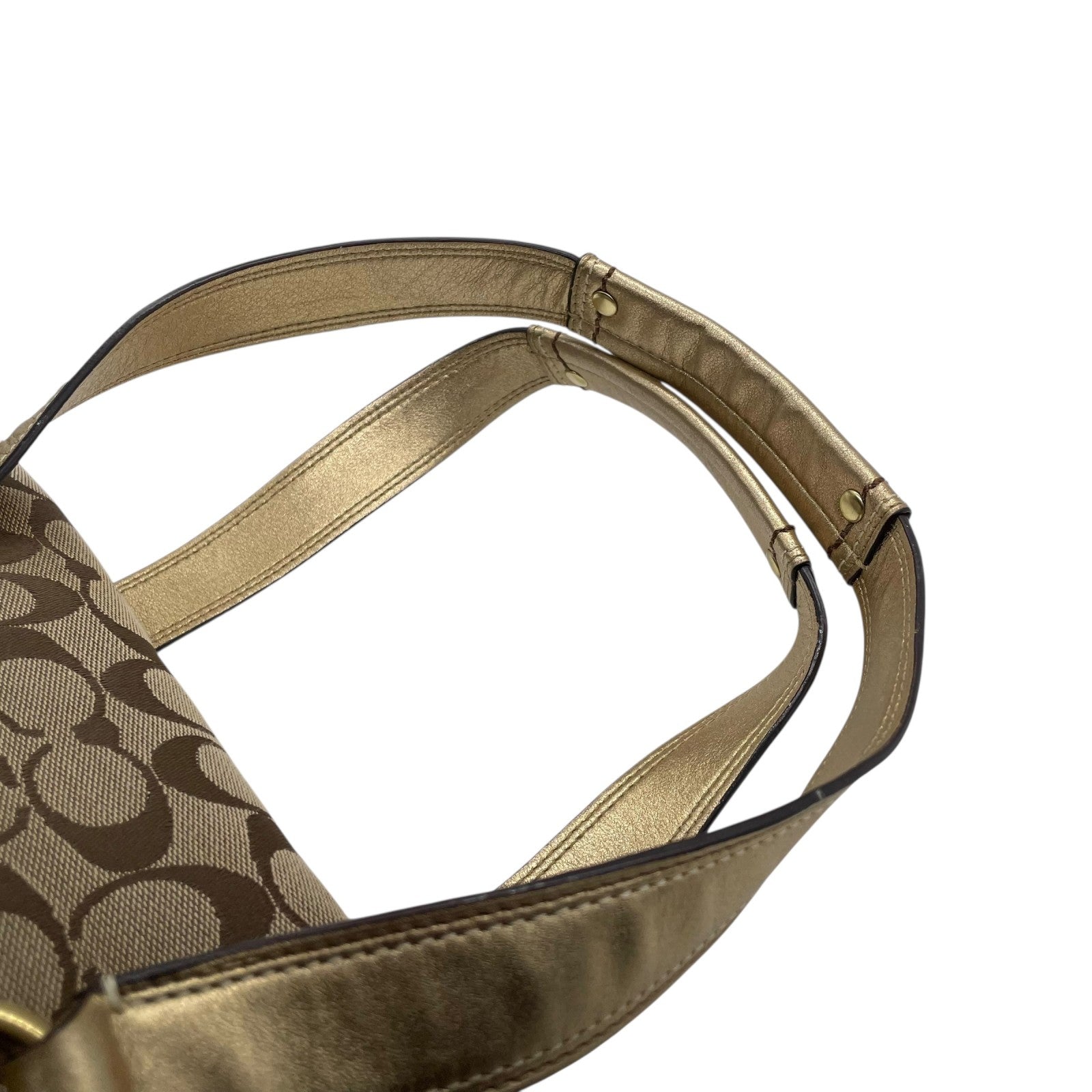 コーチ COACH シグネチャー キャンバス×レザー ハンドバッグ 金金具 ゴールド金具 トートバッグ 美品 S51