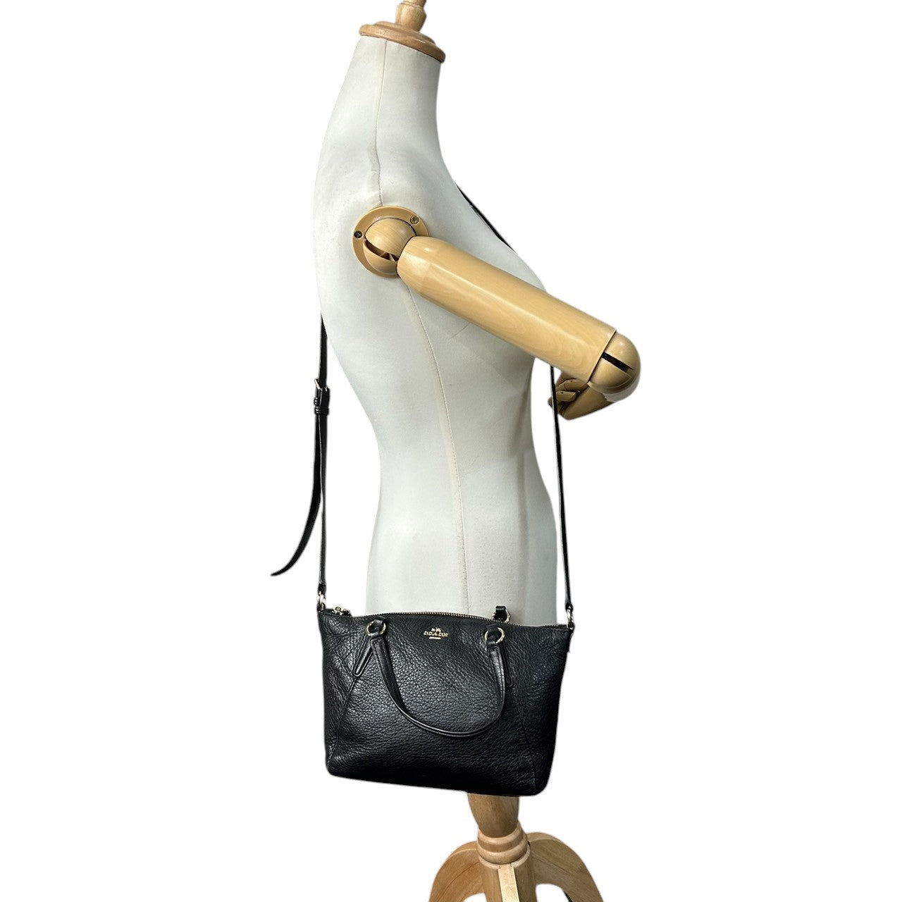 【COACH】コーチ 2WAY ハンドバッグ ショルダーバッグ プレーリーサッチェル 斜め掛け可 クロスボディ 本革 ペブルドレザー ブラック 黒 ゴールド金具 ホースアンドキャリッジロゴ レディース エレガント ビジネス 人気モデル クリーニング済み s45