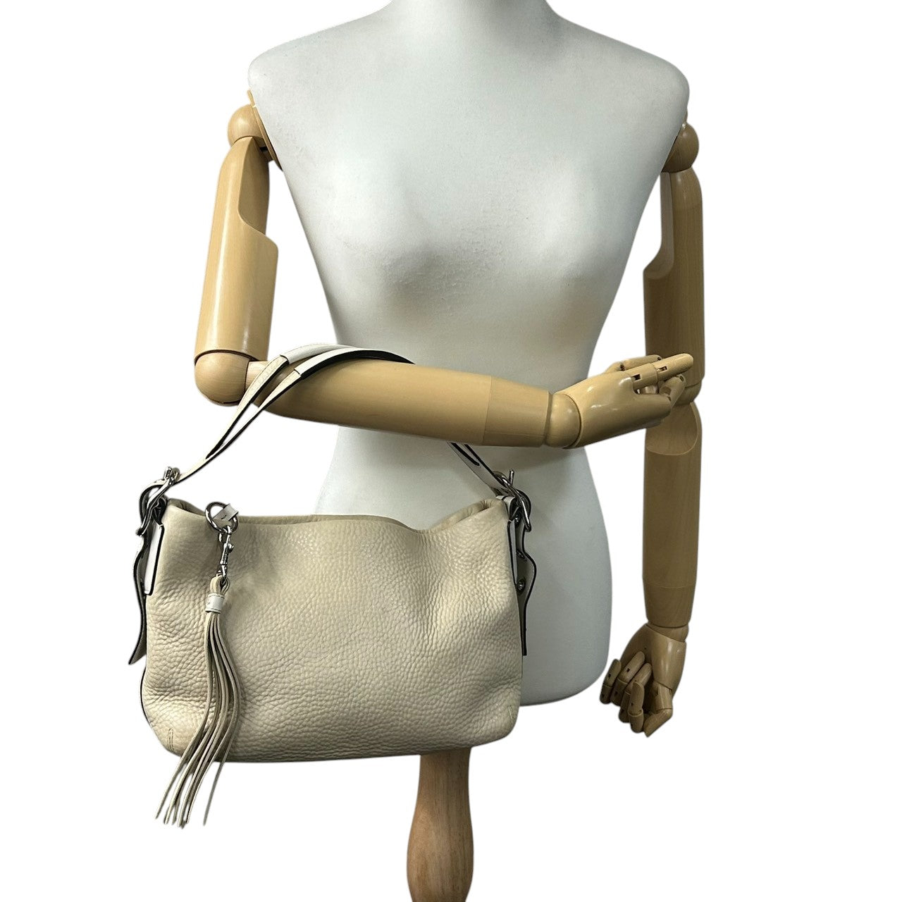 COACH コーチ ショルダーバッグ ワンショルダー ホーボーバッグ 1429 本革 ペブルドレザー アイボリー オフホワイト系 シルバー金具 タッセルチャーム付き レディース エレガント カジュアル 人気モデル クリーニング済み s45
