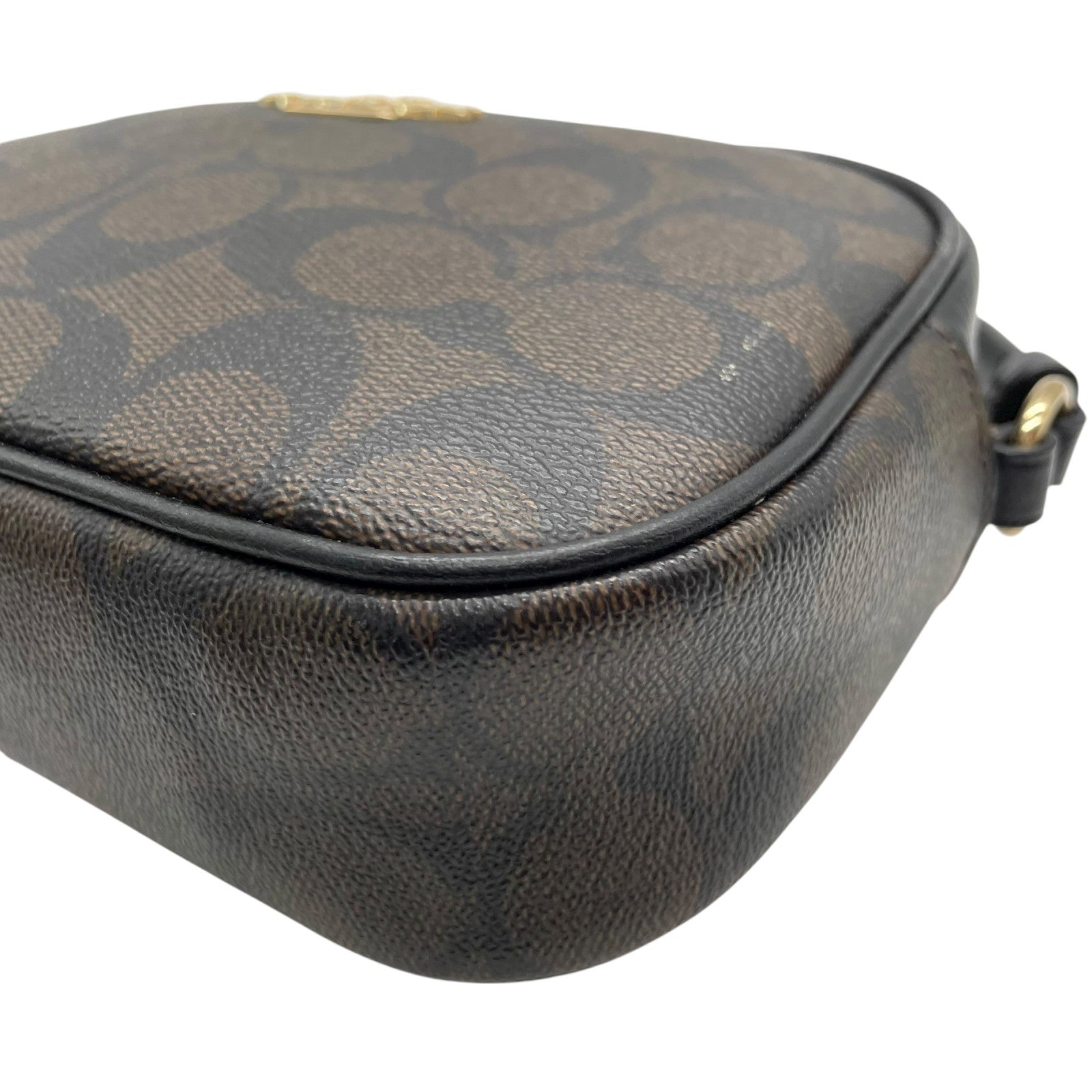 美品 コーチ COACH シグネチャー PVC レザー クロスボディ カメラバッグ ショルダーバッグ C9926 茶色 ブラウン 黒 ブラック ゴールド金具 金金具 ミニバッグ 1