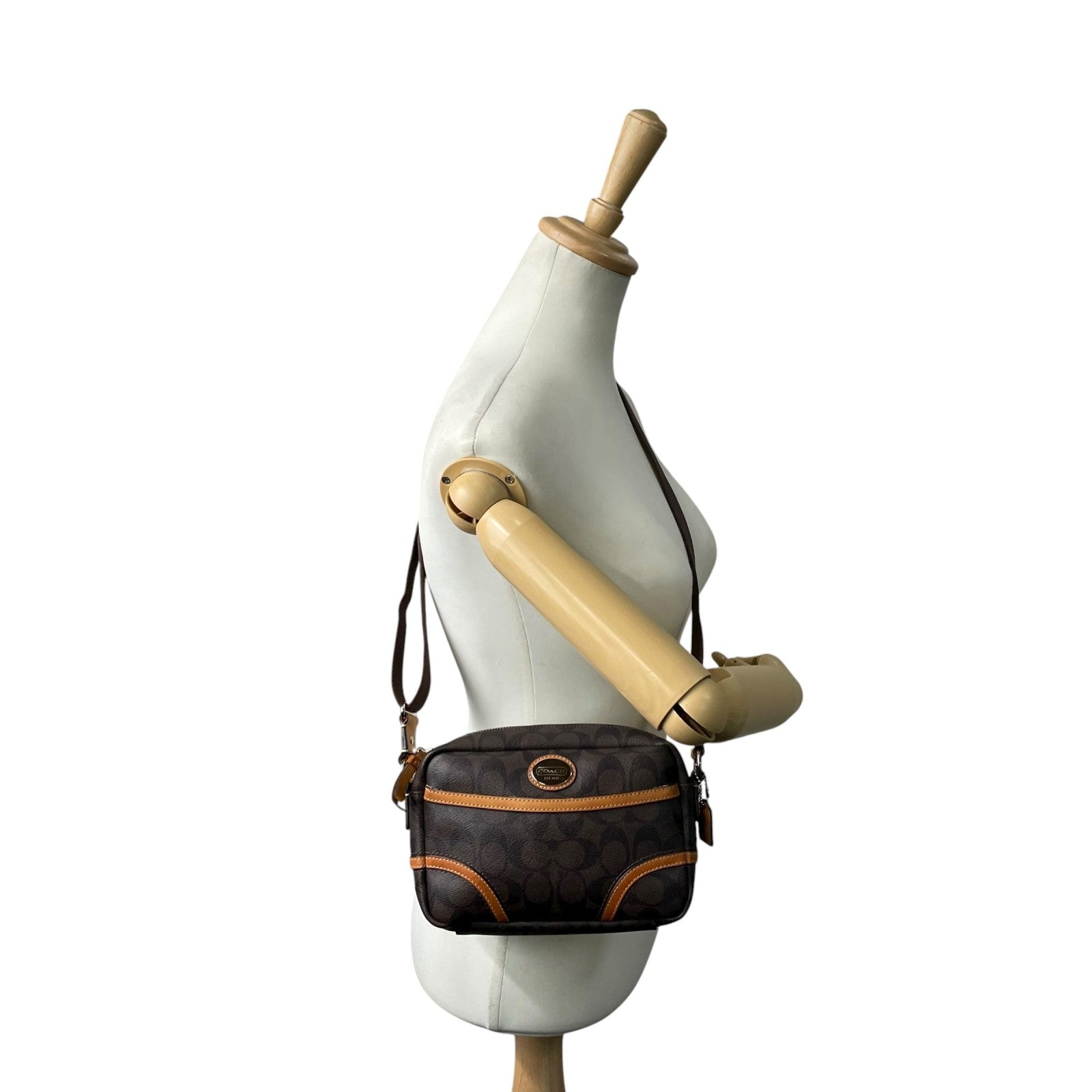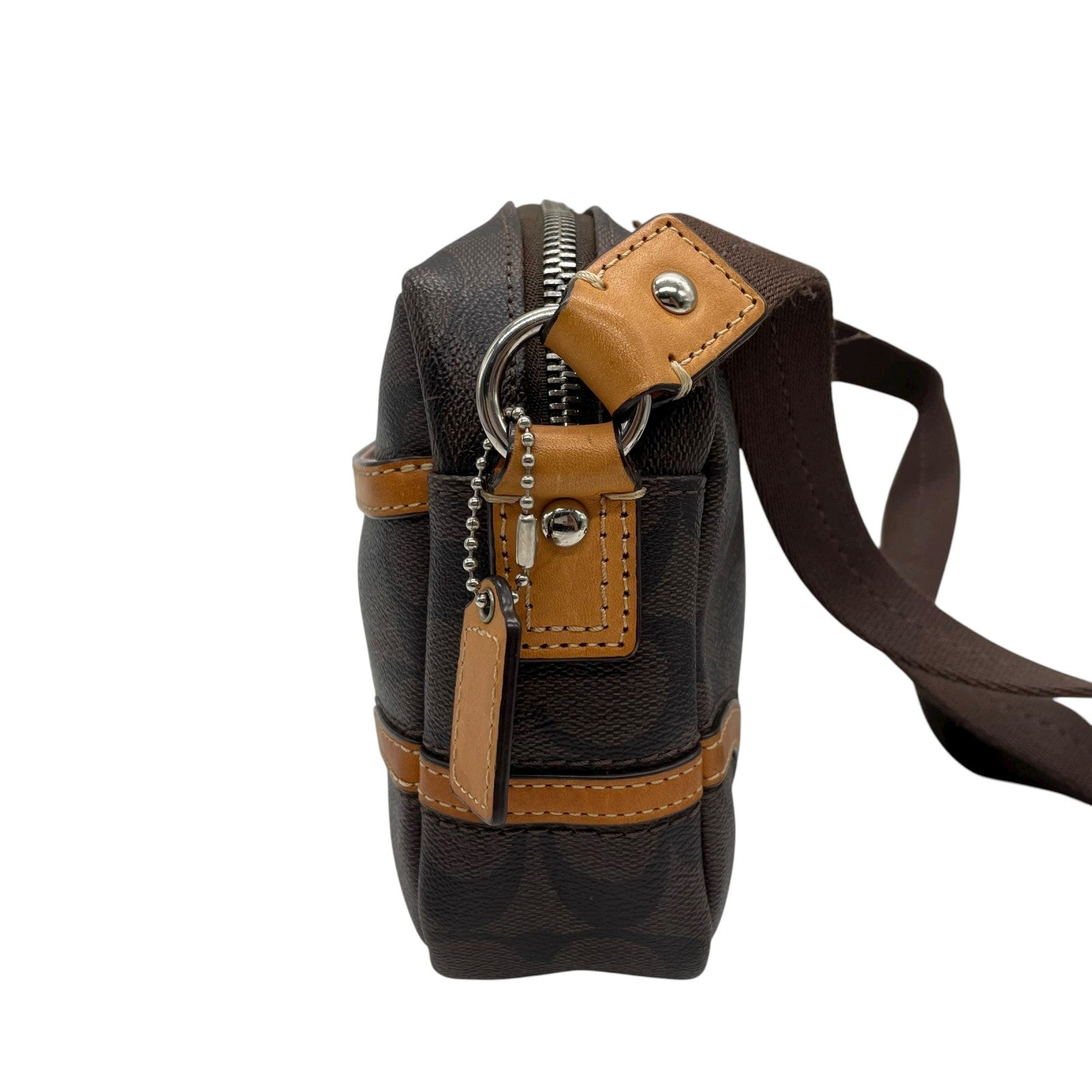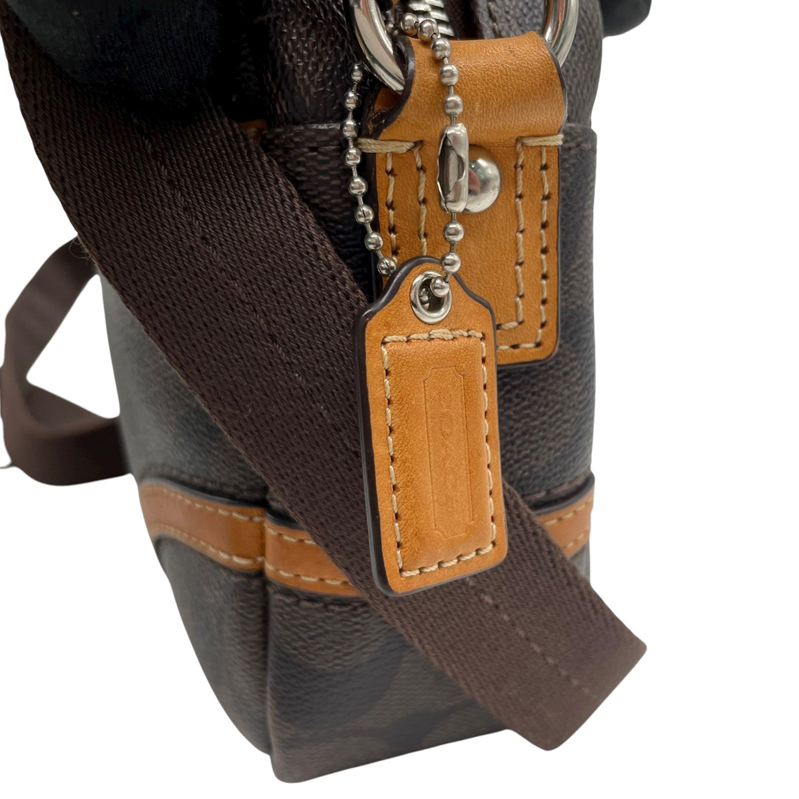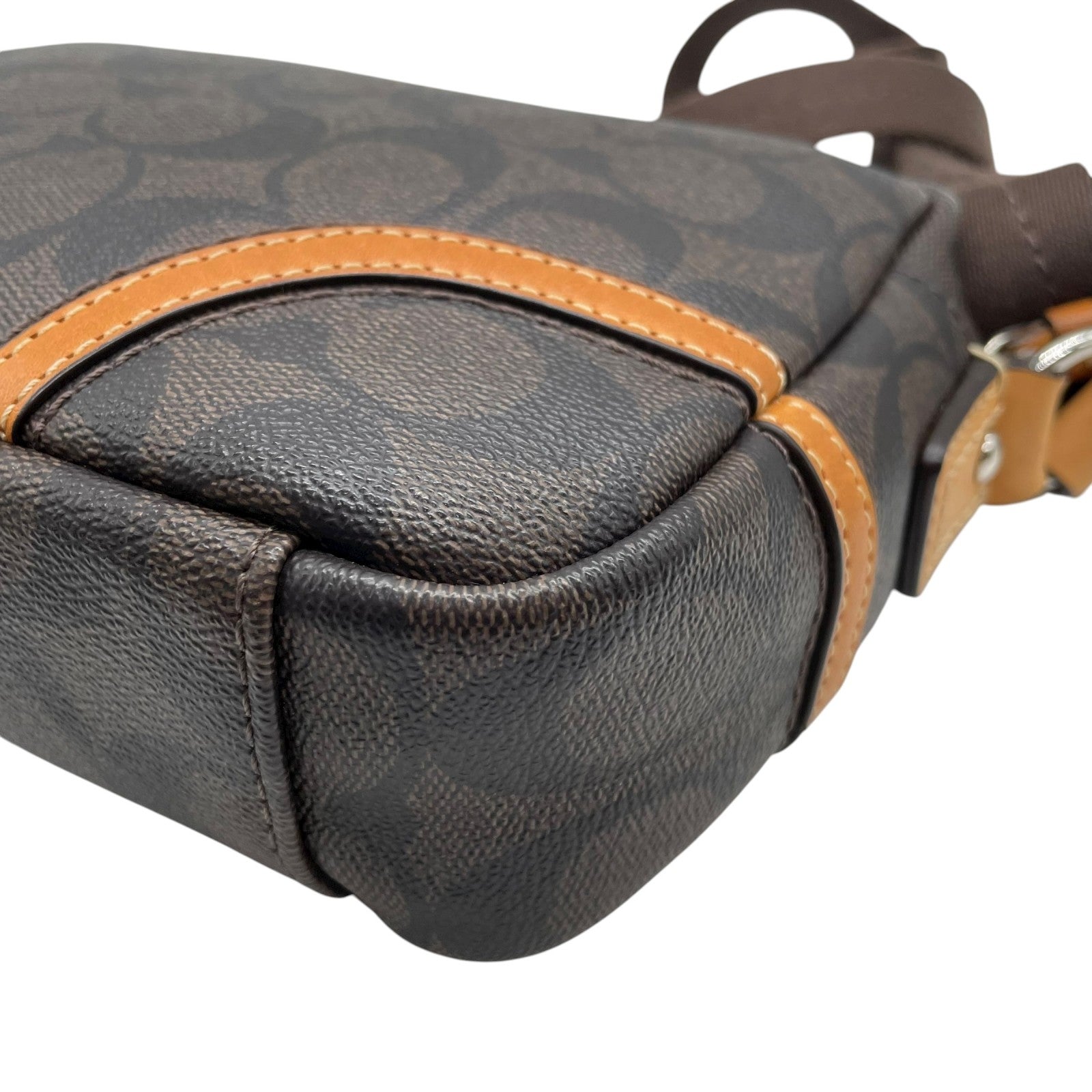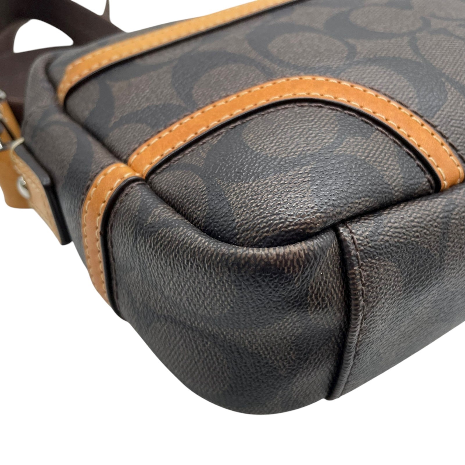 コーチ COACH シグネチャー PVC レザー ショルダーバッグ クロスボディ 茶色 ブラウン キャメル シルバー 3