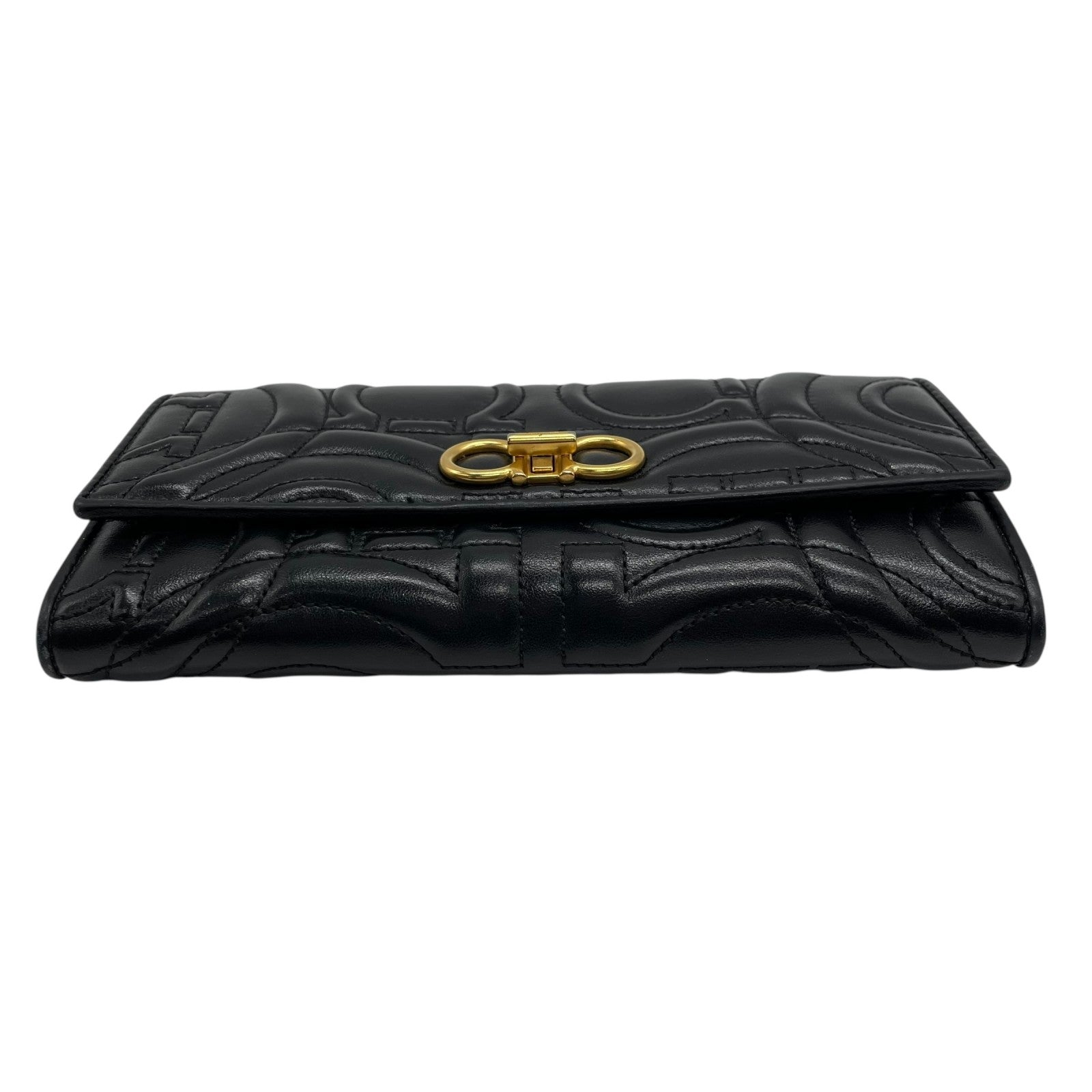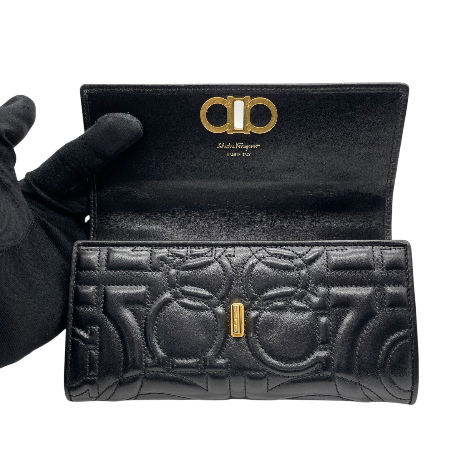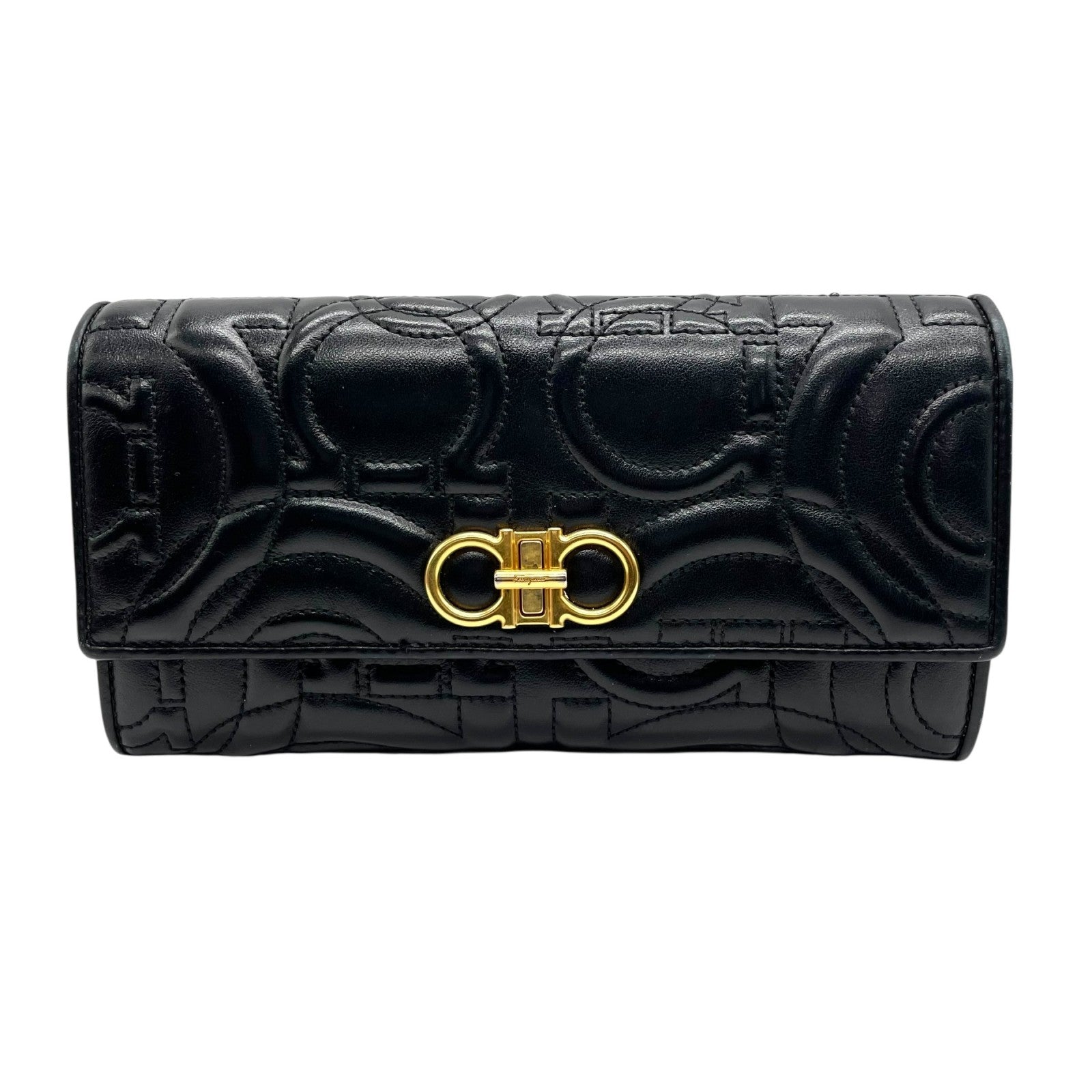 Salvatore Ferragamo フェラガモ 長財布 ガンチーニ ダブルガンチーニ エンボス ターンロック 黒 ブラック レザー 本革 ゴールド金具 ロングウォレット レディース W5