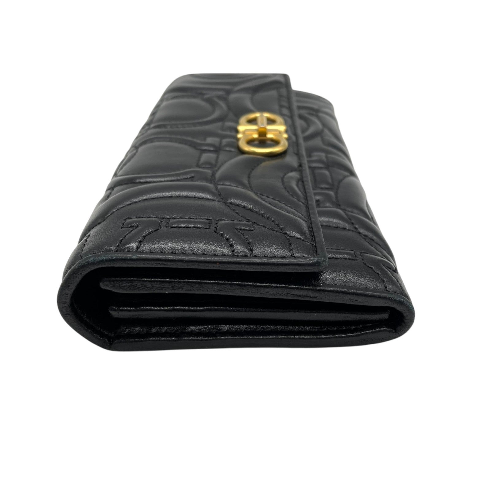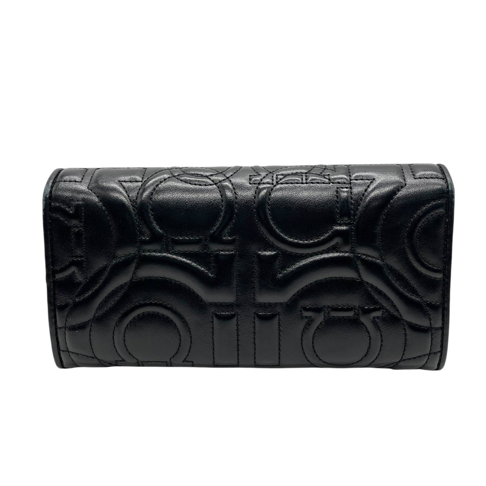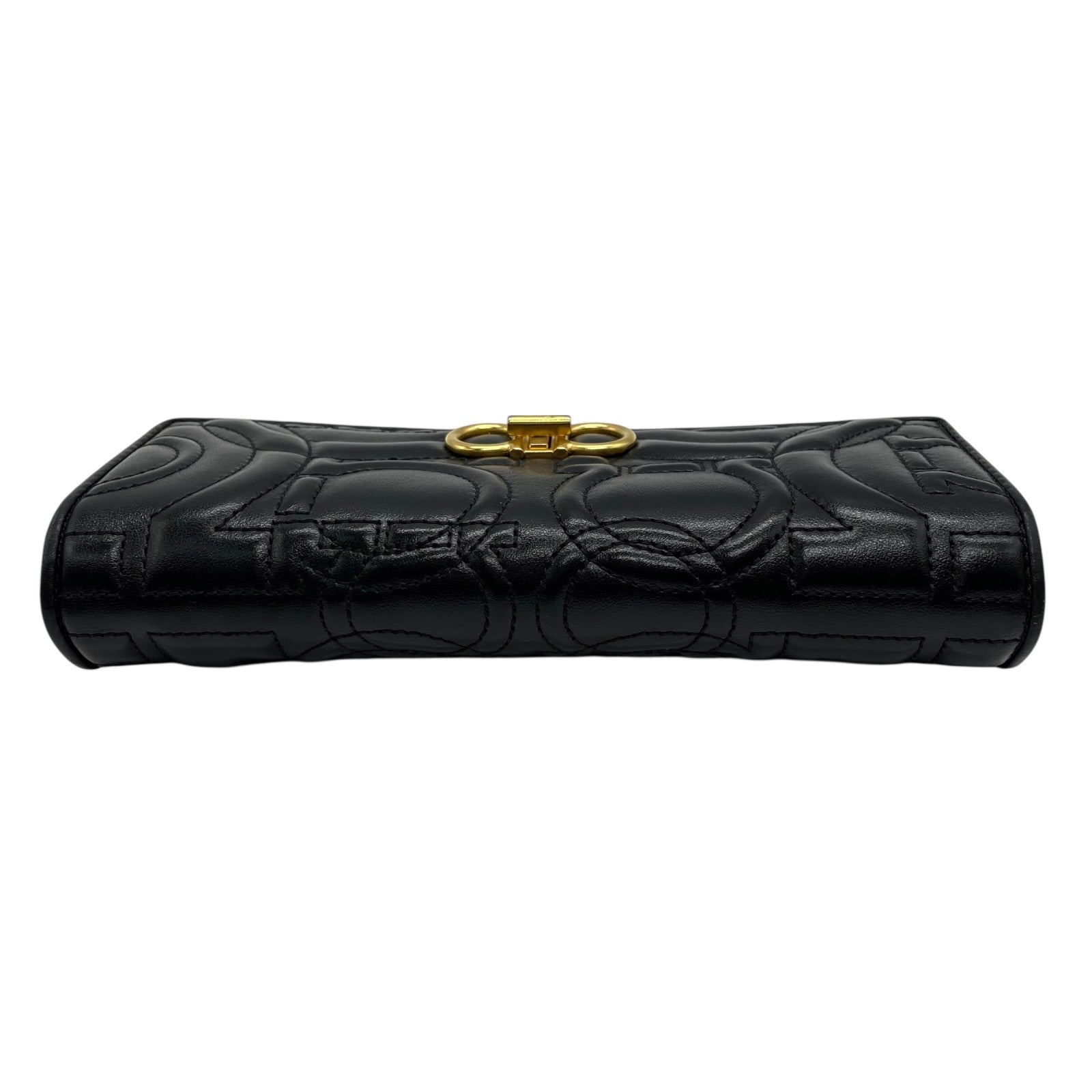 Salvatore Ferragamo フェラガモ 長財布 ガンチーニ ダブルガンチーニ エンボス ターンロック 黒 ブラック レザー 本革 ゴールド金具 ロングウォレット レディース W5